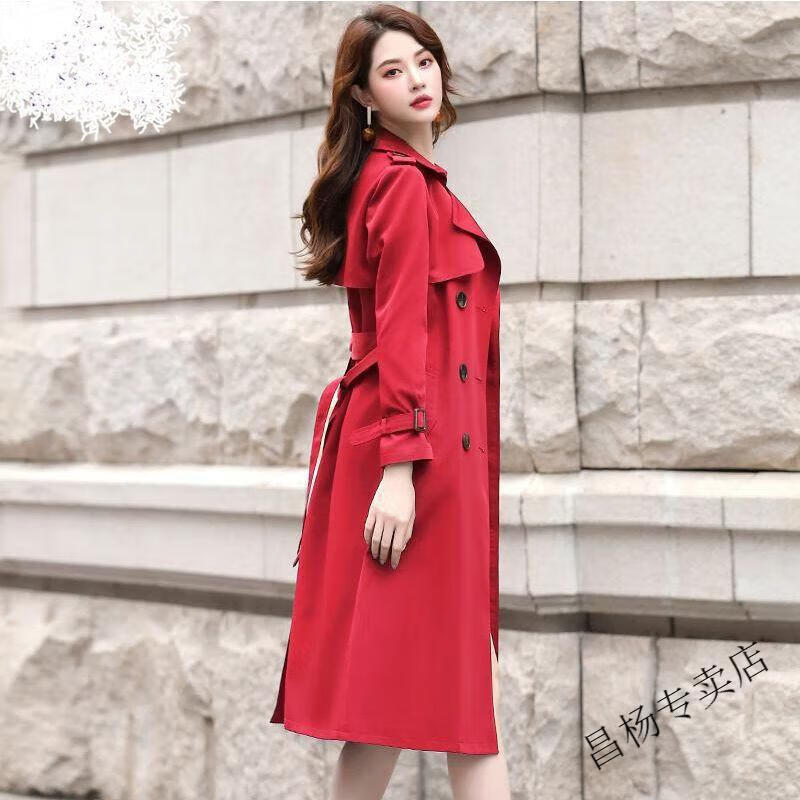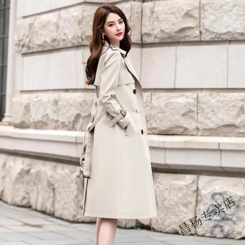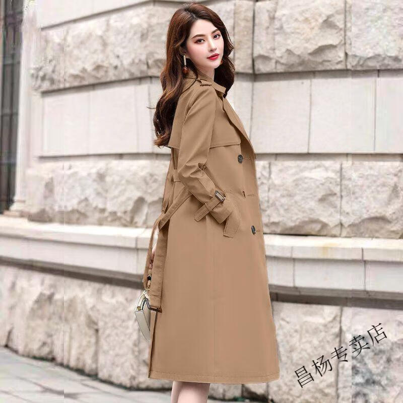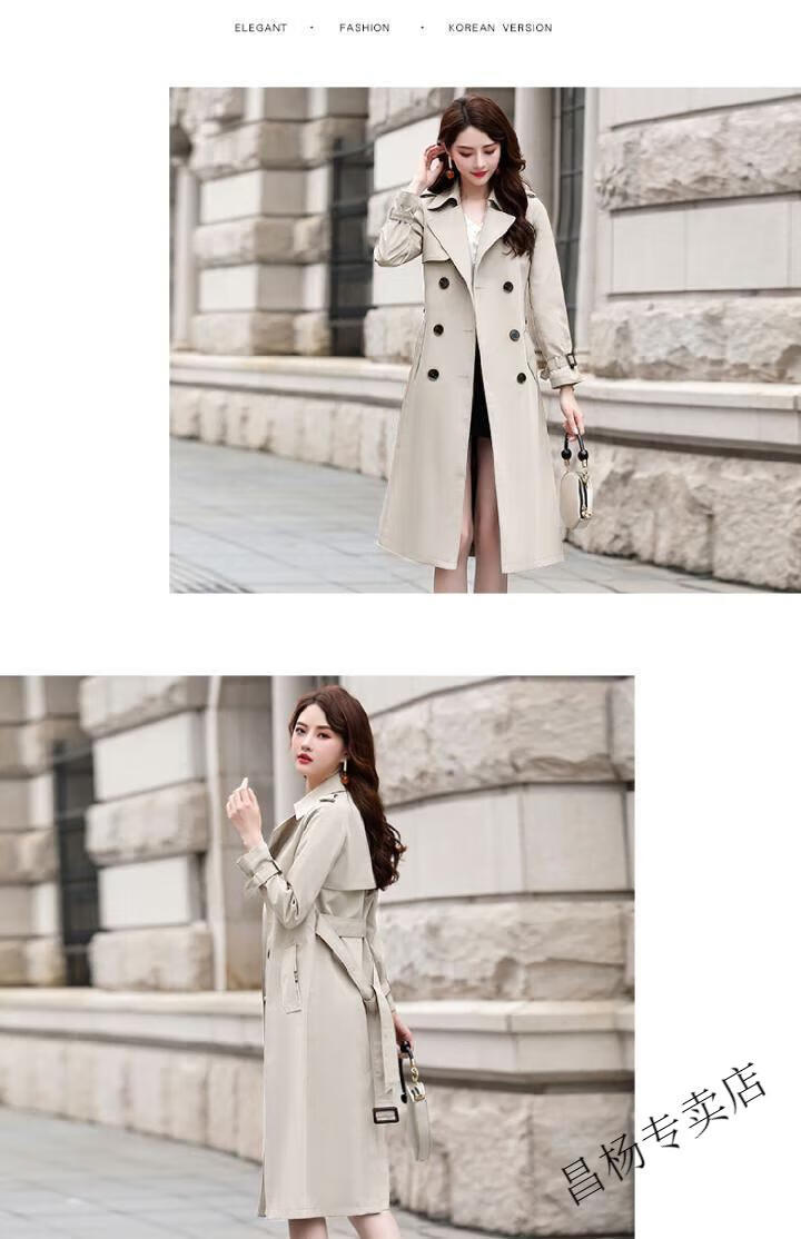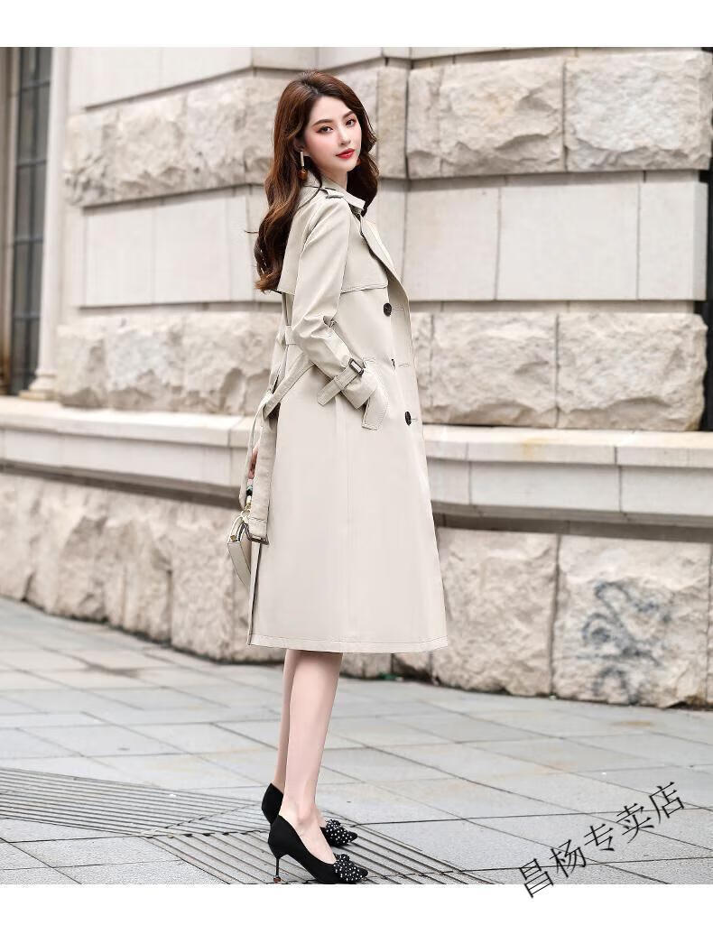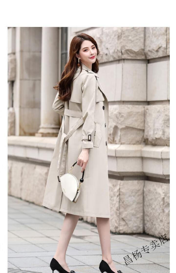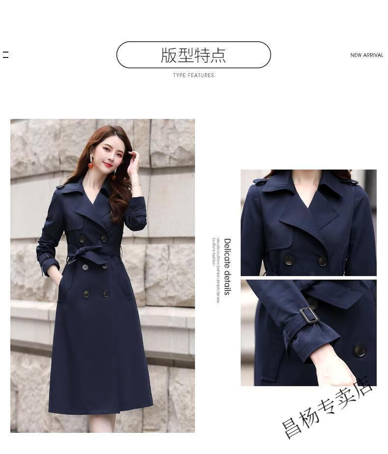 ROMON Lined Windbreaker Women's Mid-Length 2025 Autumn New Korean Style High-Quality Coat Women's Versatile Over-the-Knee Jacket Navy Lined L Recommended 116-130 Jin Jin equals 0.5 kg