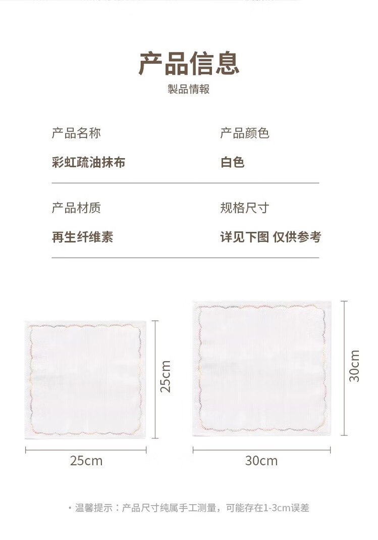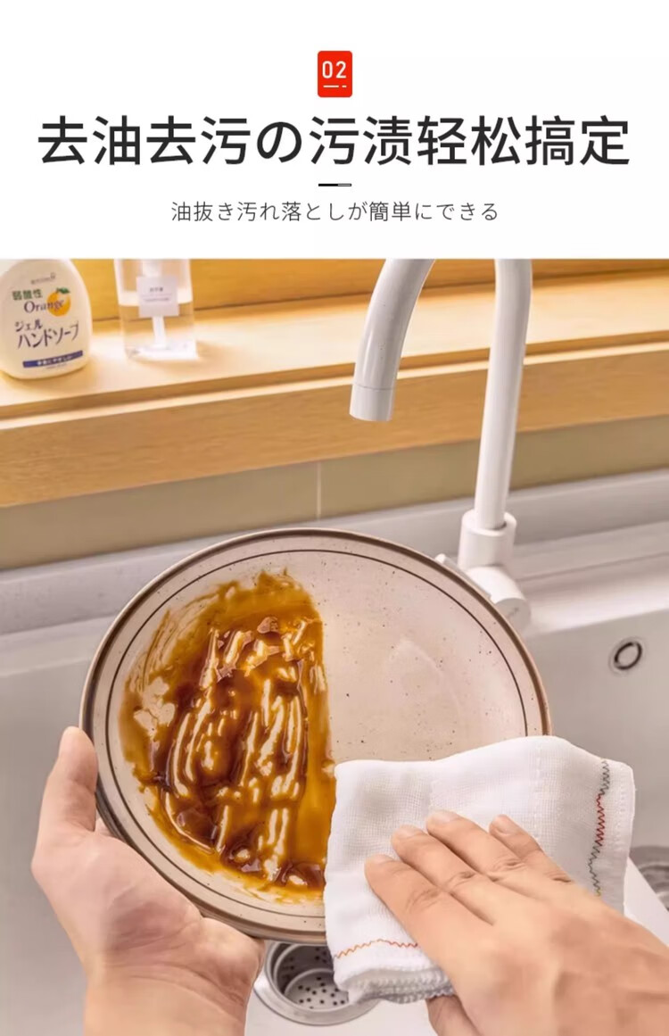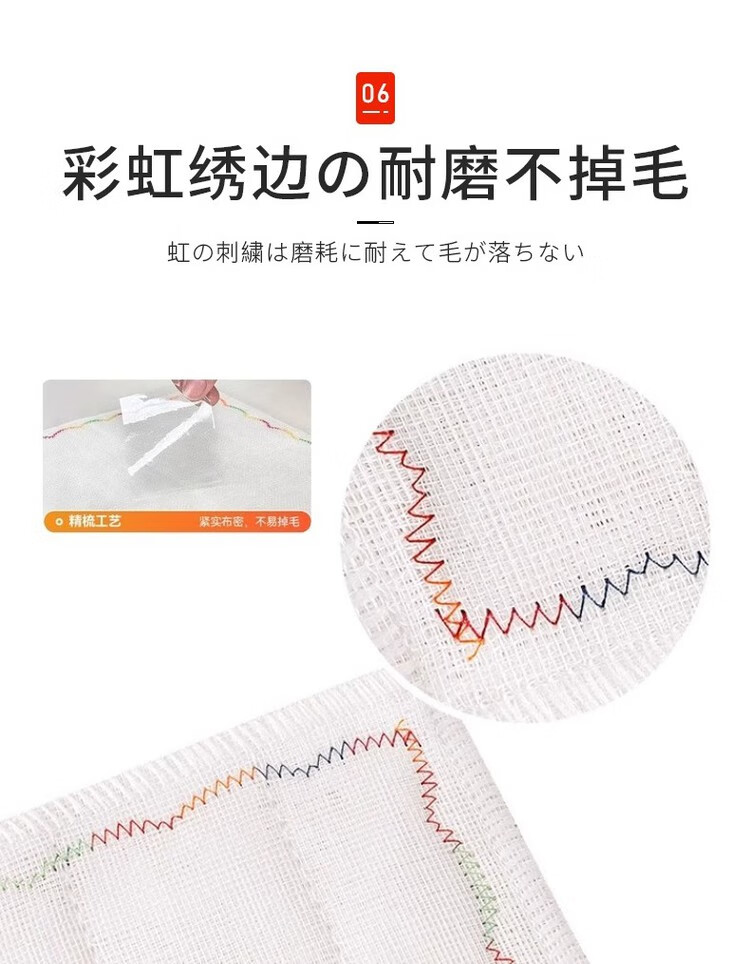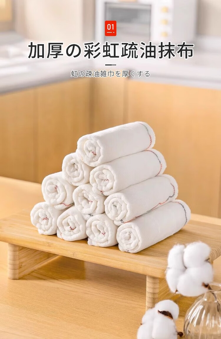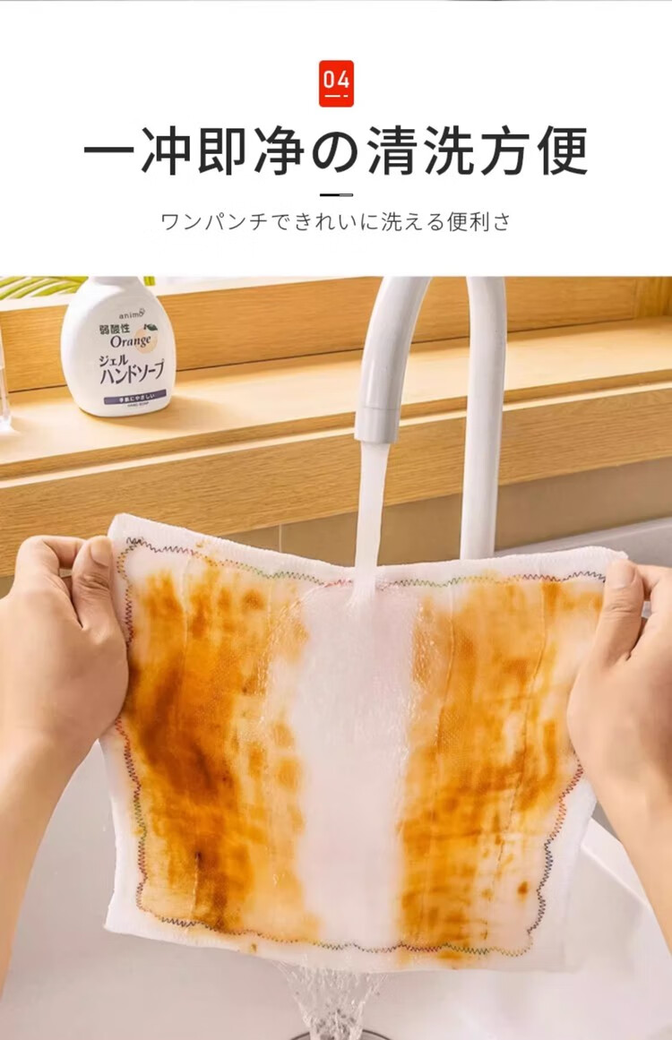Jing'anmei dishwashing cloth, rainbow oleophobic rag, non-stick, easy to clean, kitchen special dishwashing towel, pure cotton yarn, no lint, 8 layers thickened 25*25cm, 10 pieces