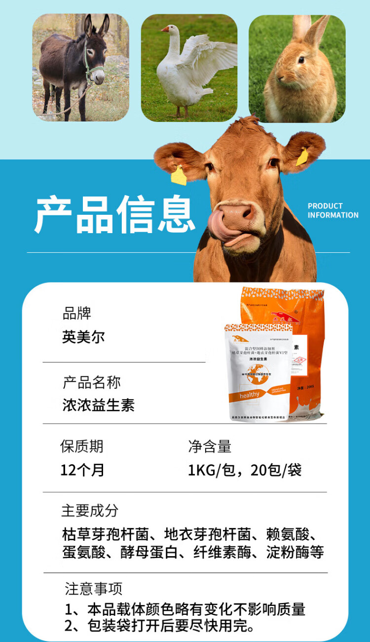 Yingmeier Veterinary Enzyme Probiotics for Pigs, Cattle and Sheep with Probiotics to Condition the Intestine and Gastrointestinal Growth Promotion Feed Additive Wholesale Concentrated Probiotics*1 Pack Total 2Jin Jin equals 0.5kg