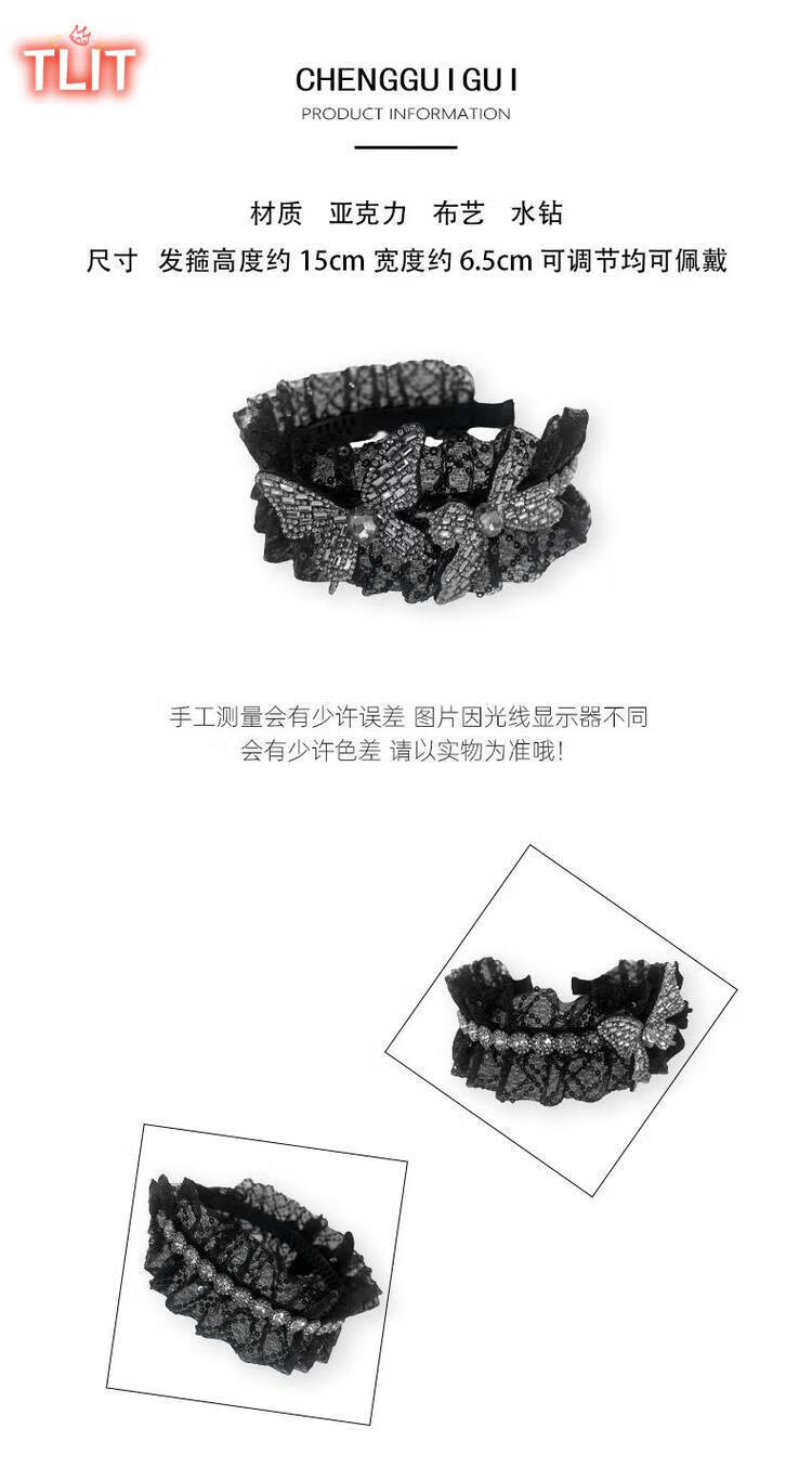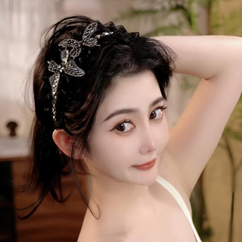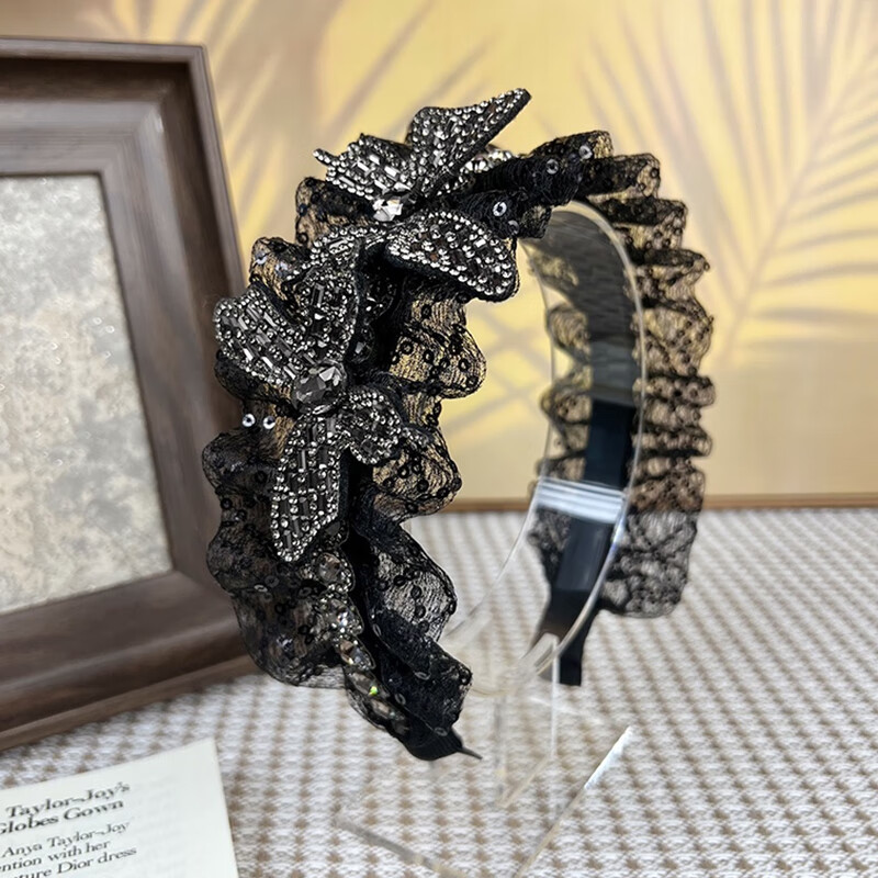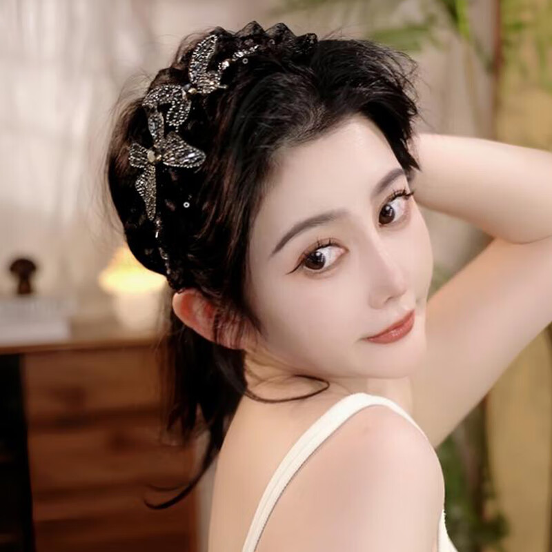 TLIT Lace Rhinestone Butterfly Headband Women's 2024 New High-ceiling Western Style Fashionable Versatile Wide-Brim Headband Hairpin Headwear Black Butterfly Headband