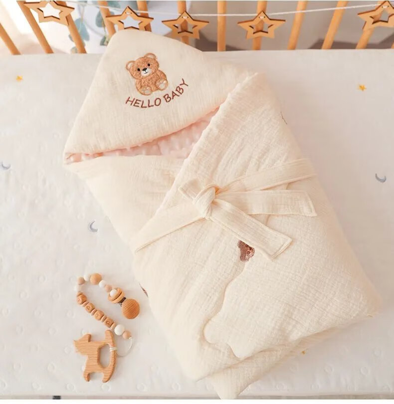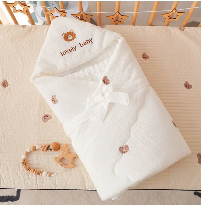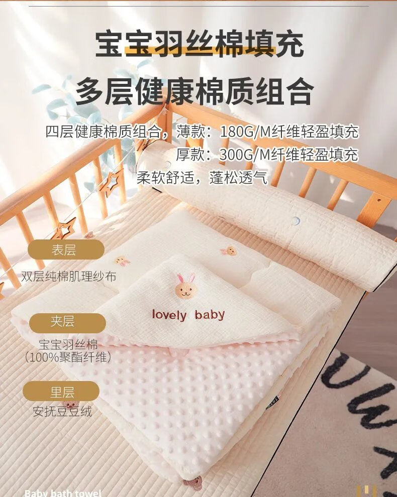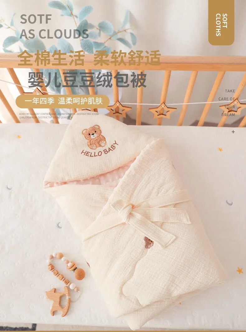 Disney (Disney) newborn baby blanket, spring and autumn style, pure cotton thin blanket, newborn anti-fright, maternity room swaddle, universal for all seasons, white sand cute bear bean blanket, spring and autumn style 100*100cm