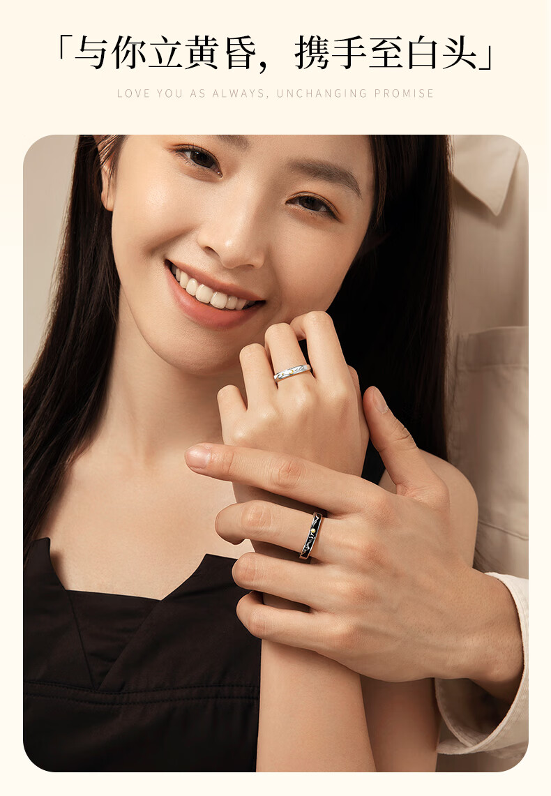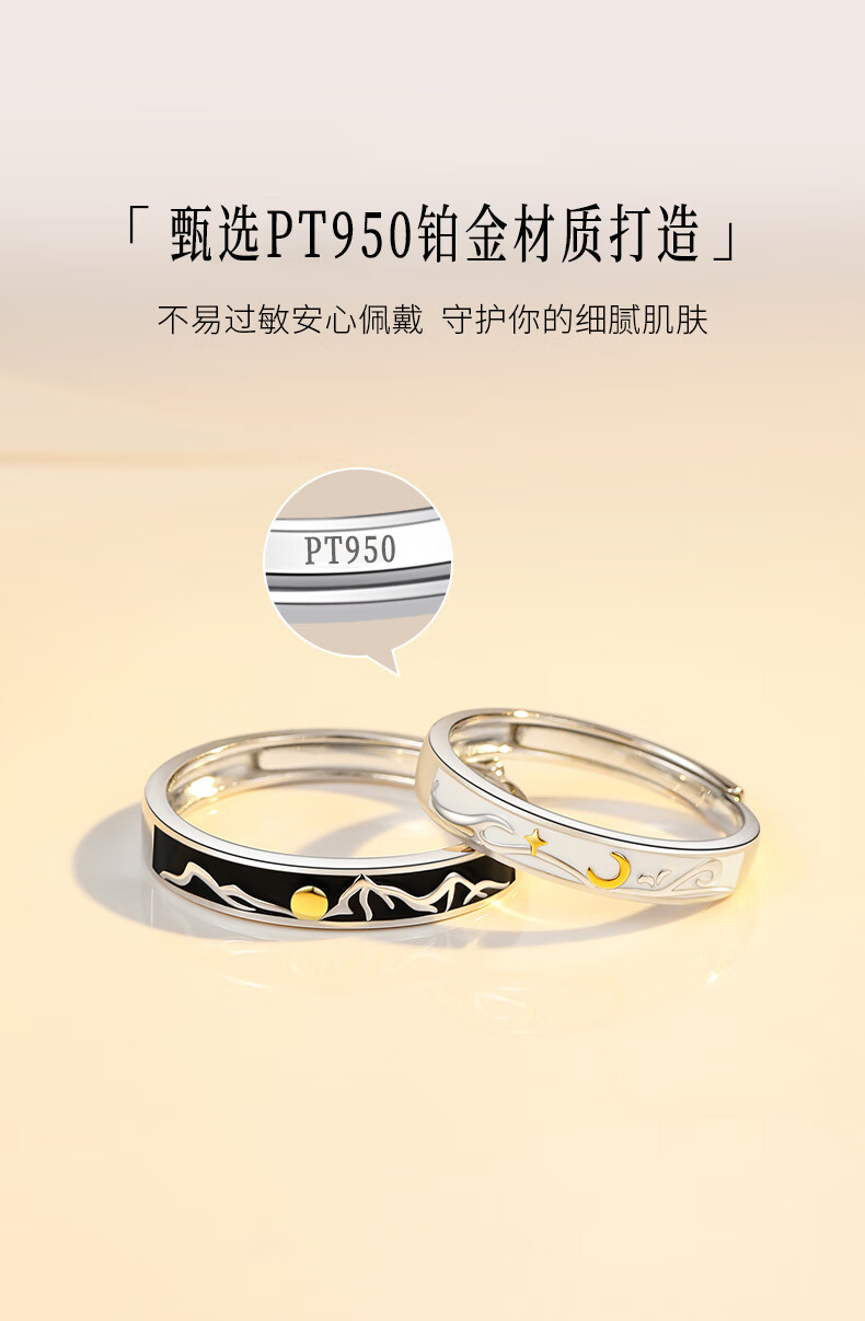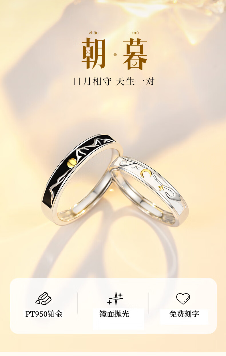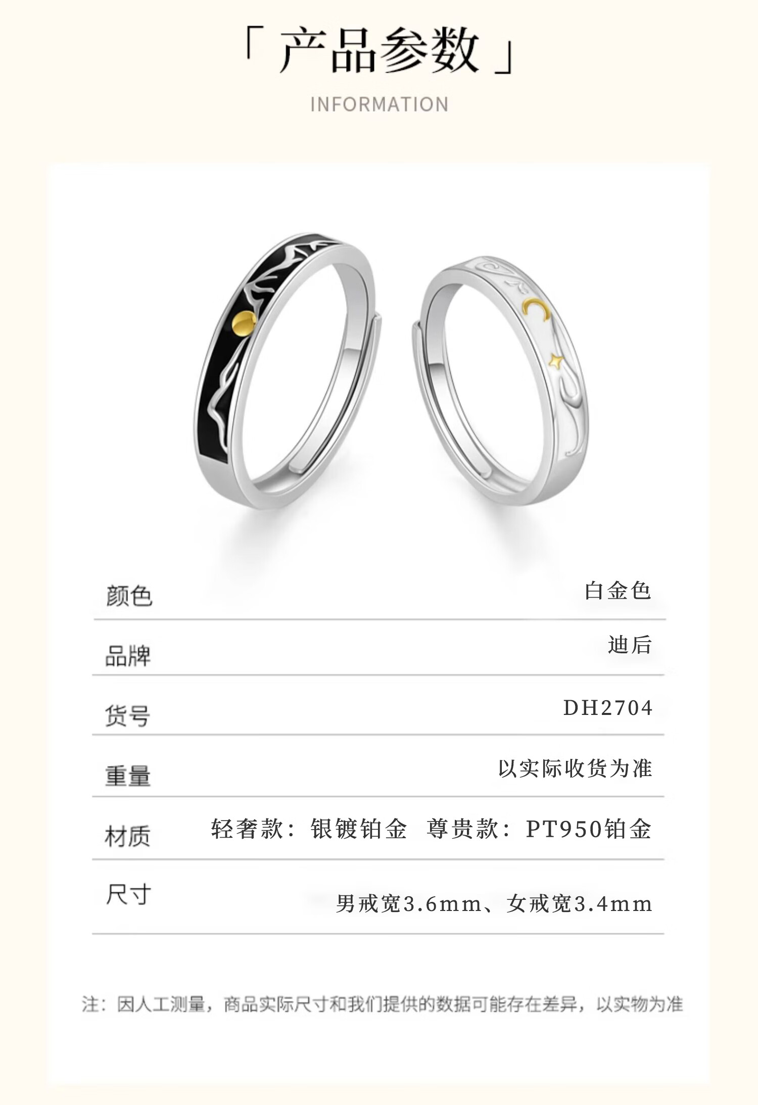 Dirholl (Dirholl) PT950 platinum morning and evening couple's ring, light luxury niche ring 520 Valentine's Day gift for girlfriend and wife, light luxury style - morning and evening ring, no engraving