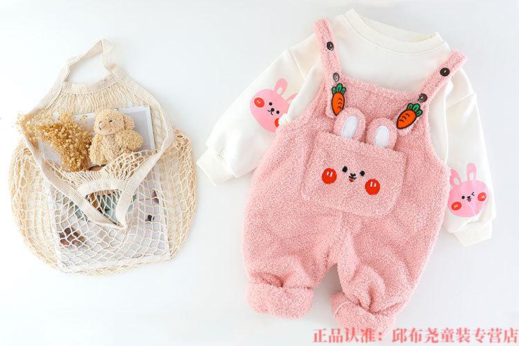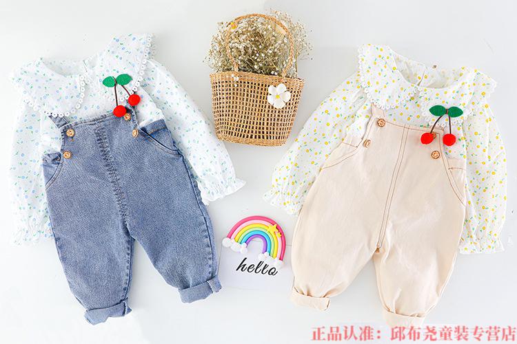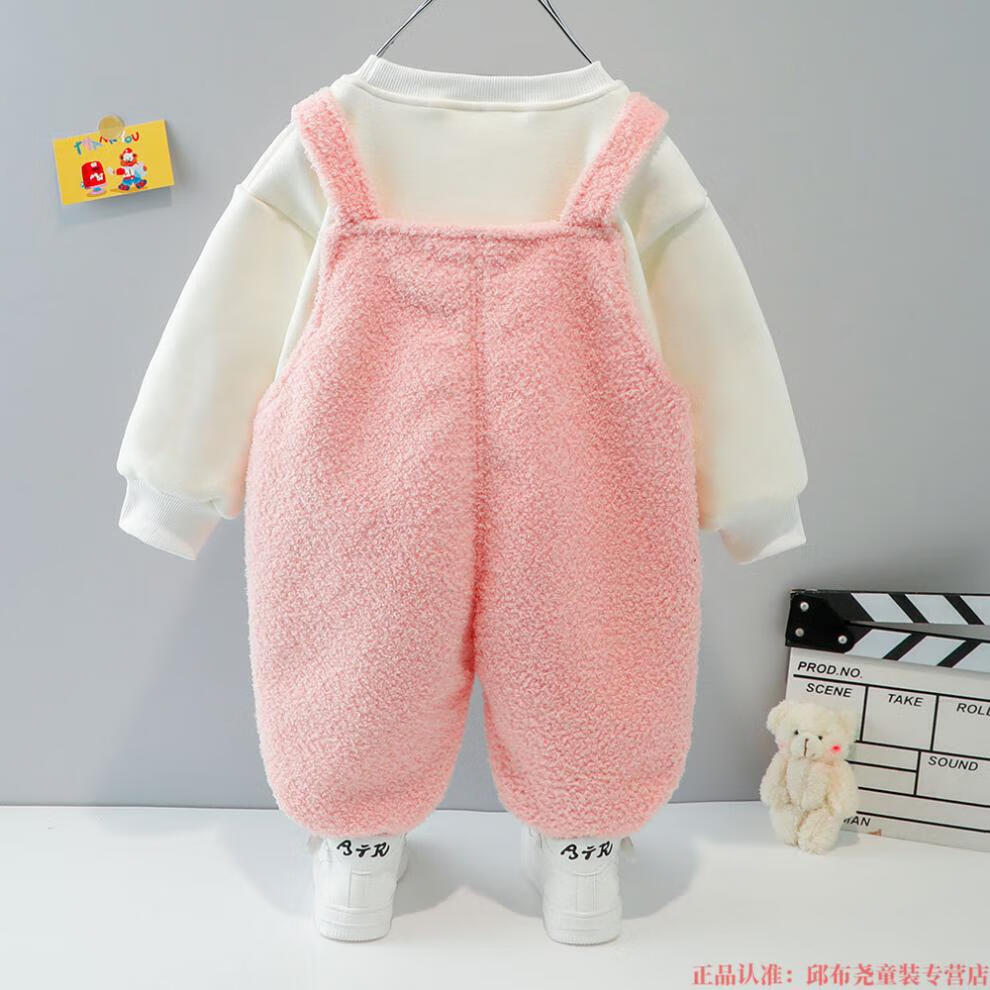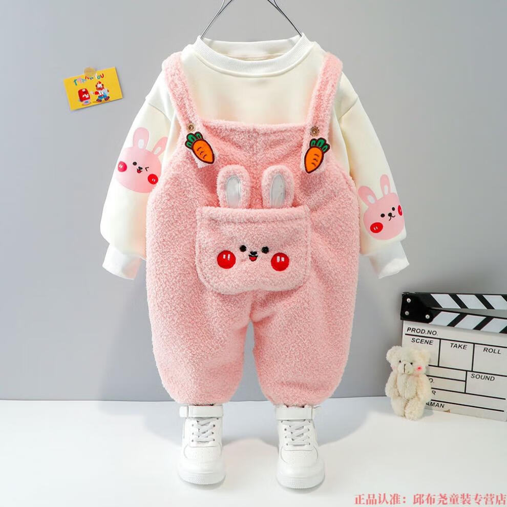 Disney (Disney) Baby Girl Autumn Outfit Set Pure Cotton Infant Princess Overalls Sweater Two-piece Set Spring and Autumn Internet Celebrity Fashion Pink Overalls Set (Spring and Autumn Style) 85cm