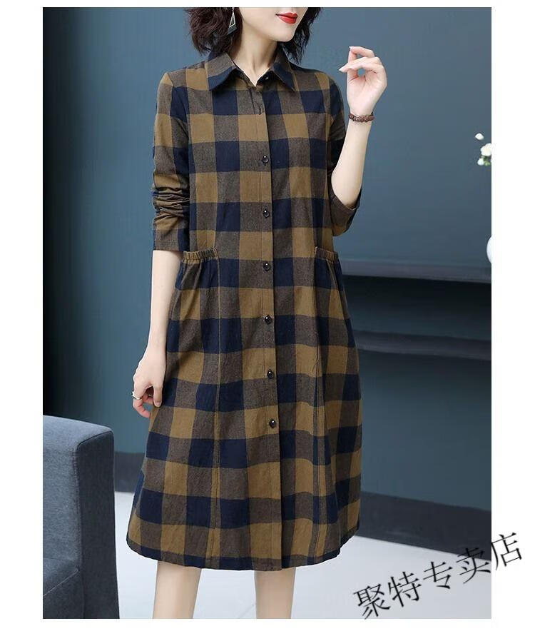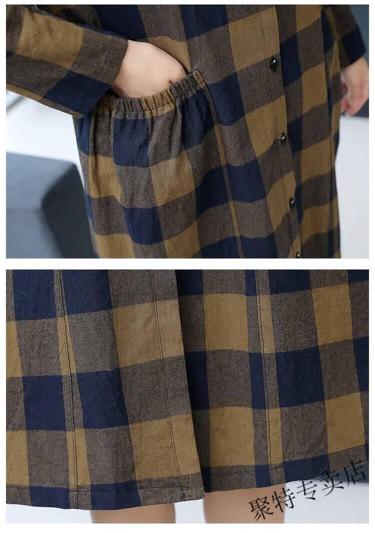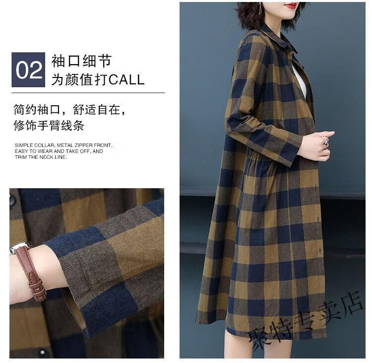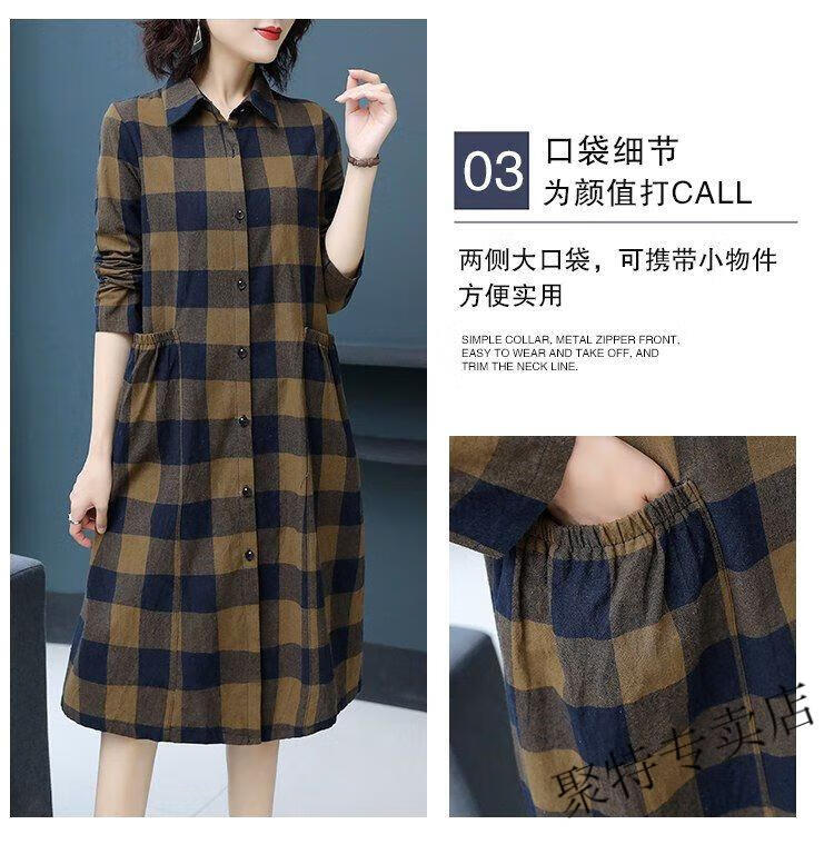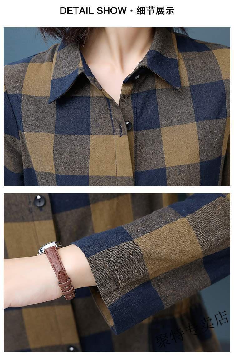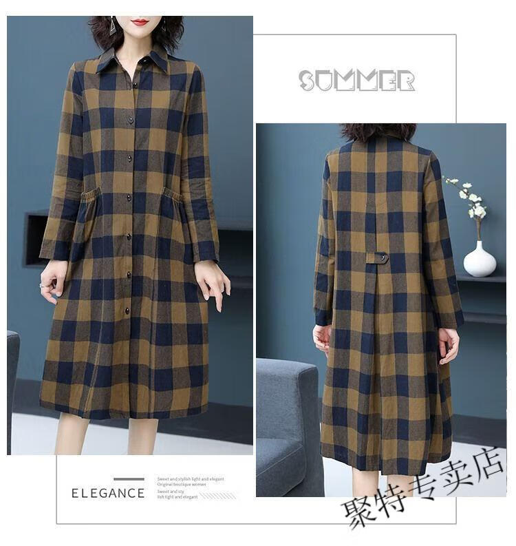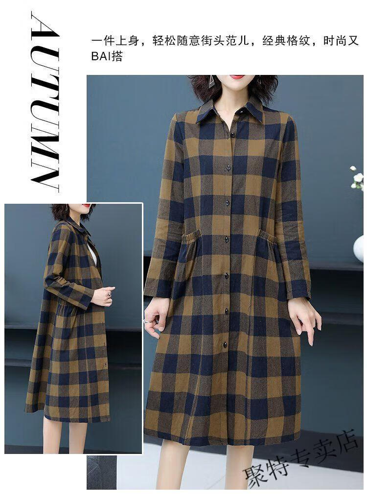 Pierre Cardin pure cotton plaid mid-length shirt for women spring and autumn new style large d size over-the-knee windbreaker loose long-sleeved shirt jacket plaid XL recommended 120-136 Jin Jin equals 0.5 kg
