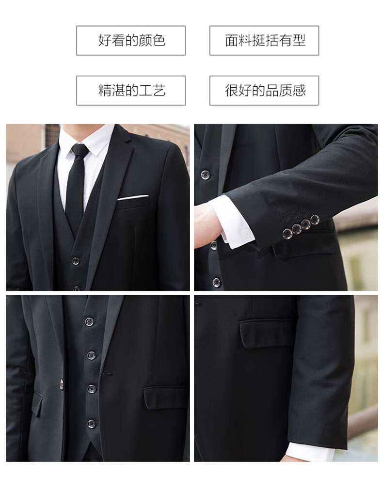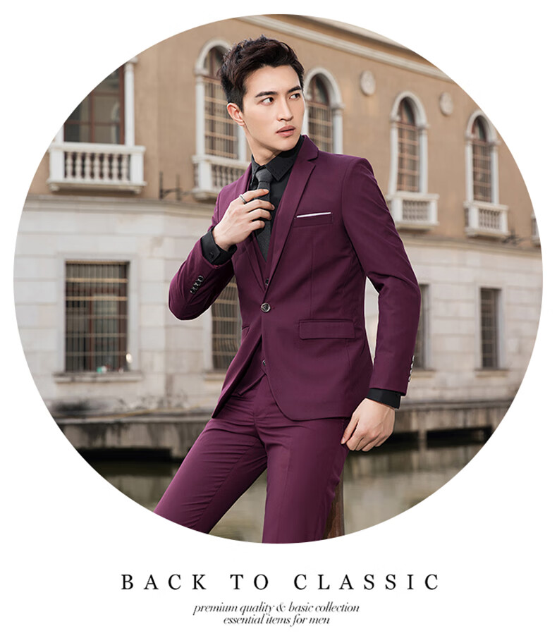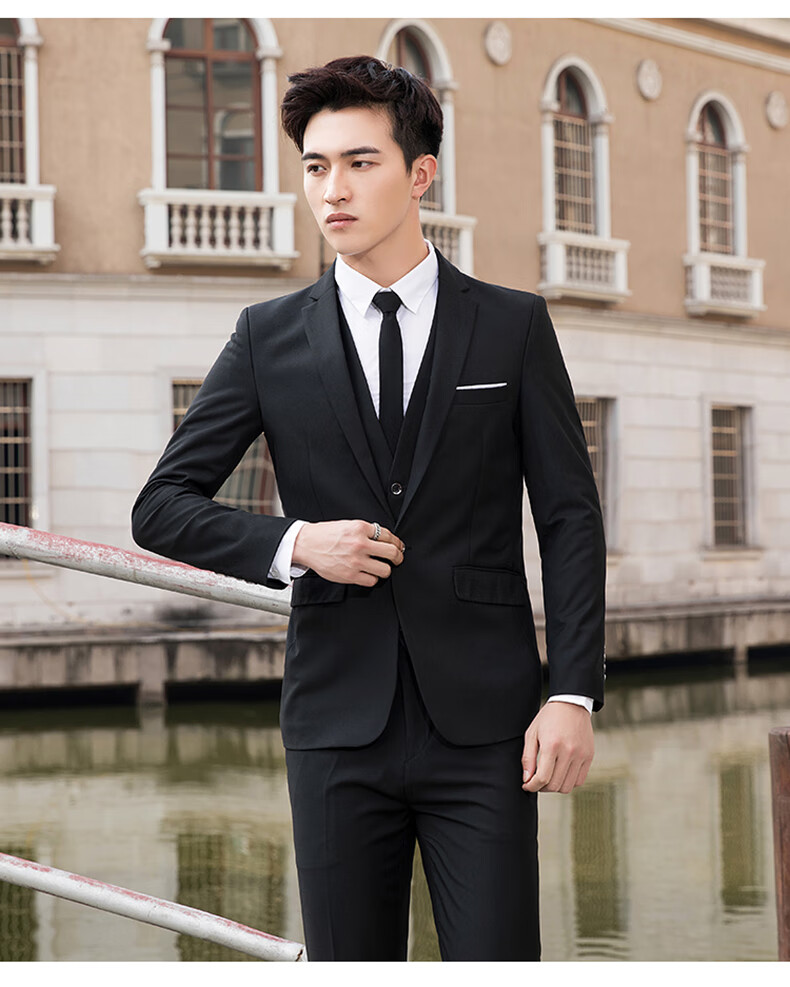 Playboy Suit Men's Jacket Top Youth Korean Slim Business Casual Formal Wedding Groomsman Small Suit Men Single Button Gray Suit + Pants + Vest + Shirt S