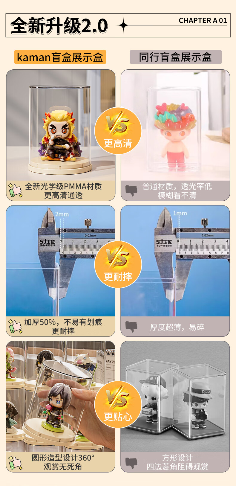 KAMAN single blind box storage display stand transparent dust-proof figure display cabinet desktop mini Bubble Mart display box basic model comes with 1 fixing glue