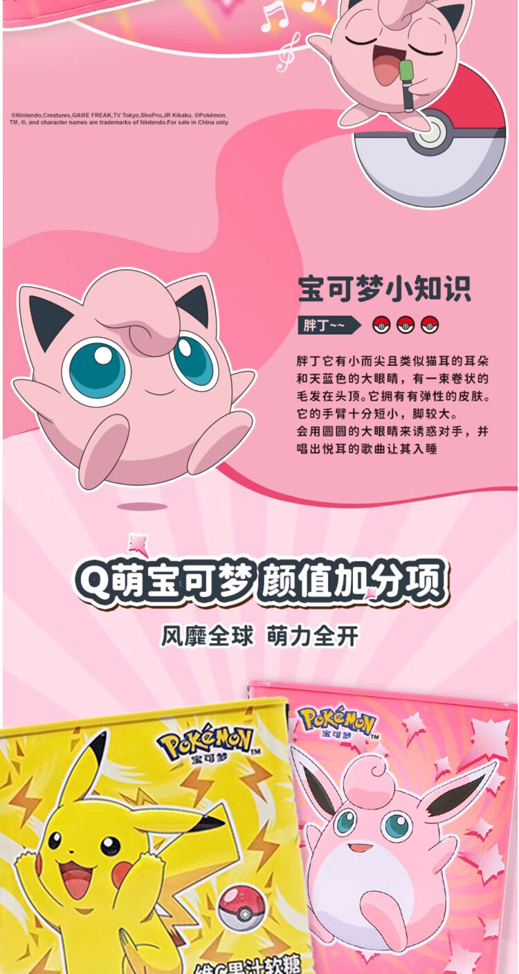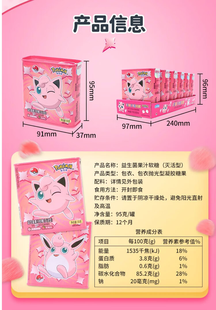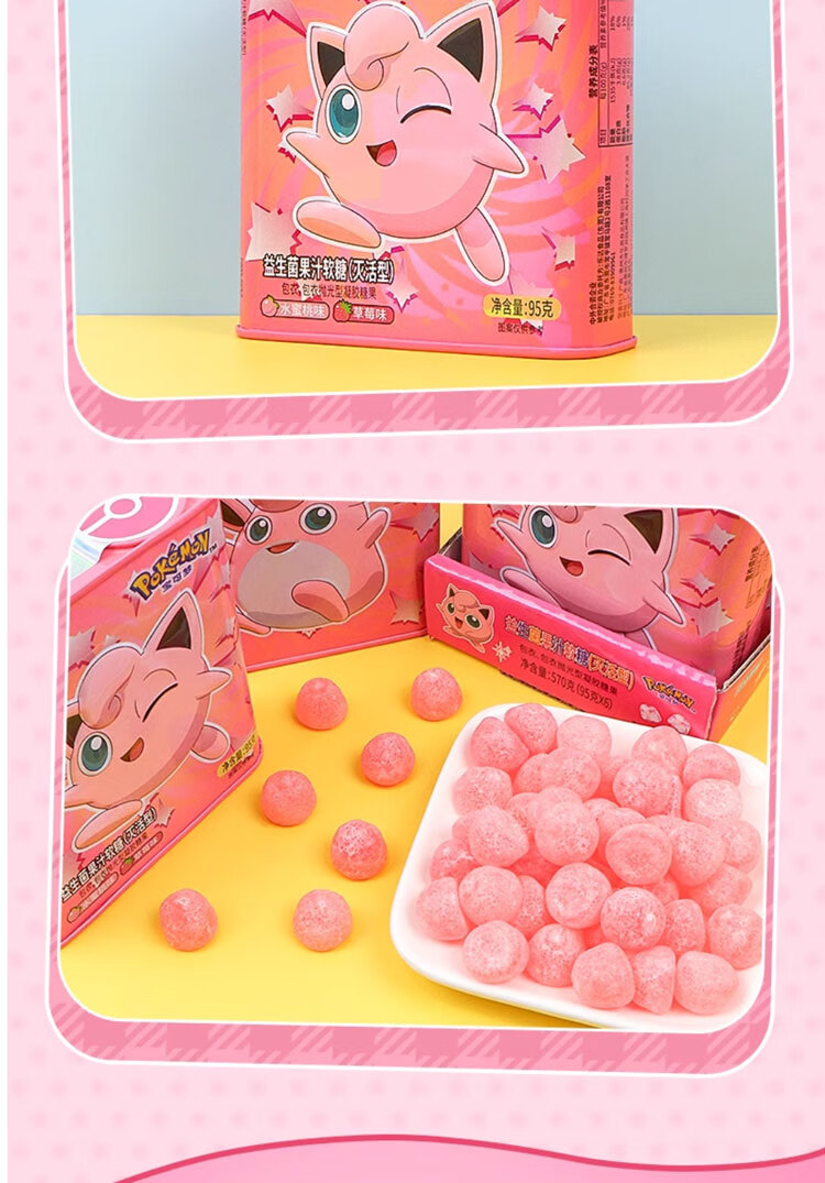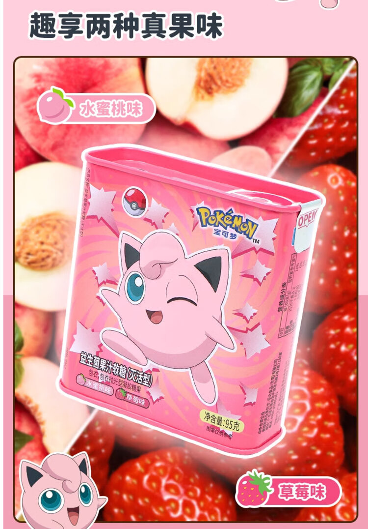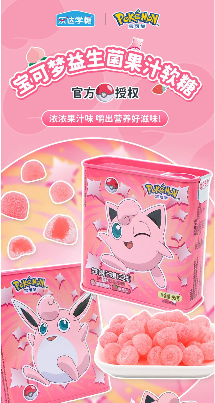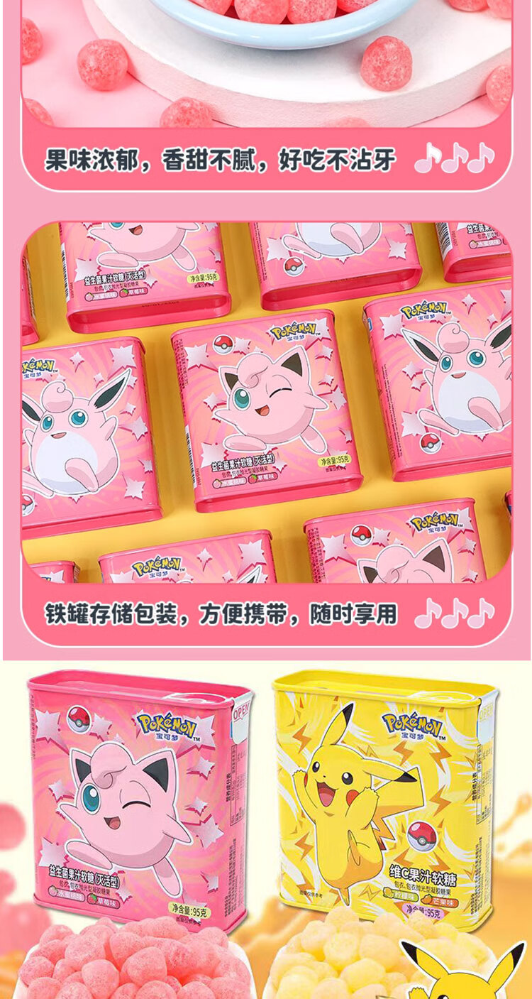 Leda Sugar Pokémon Juice Gummy Probiotic VC Canned Strawberry Flavored Gummy Snacks (Lemon + Mango Flavor) 95g*4 cans