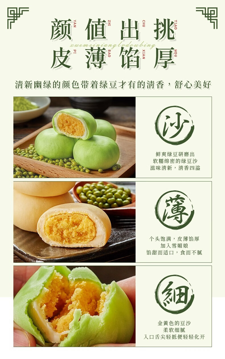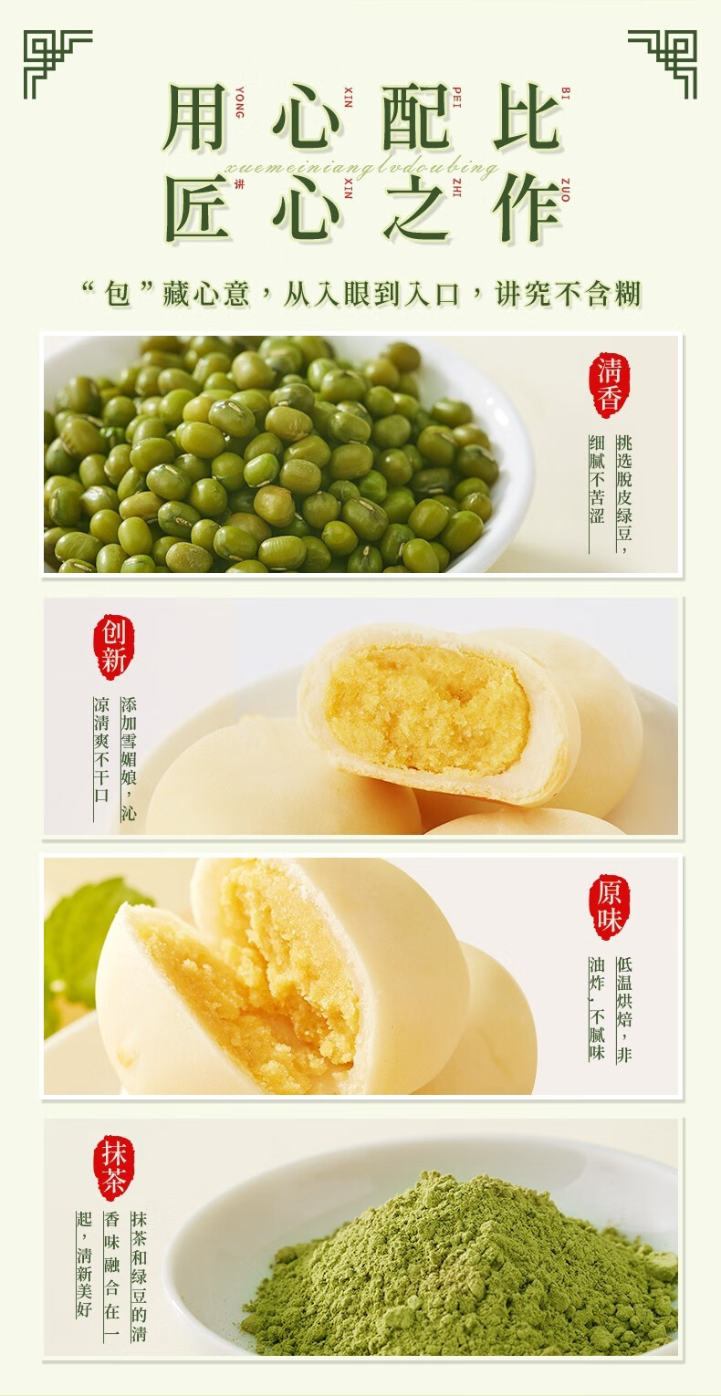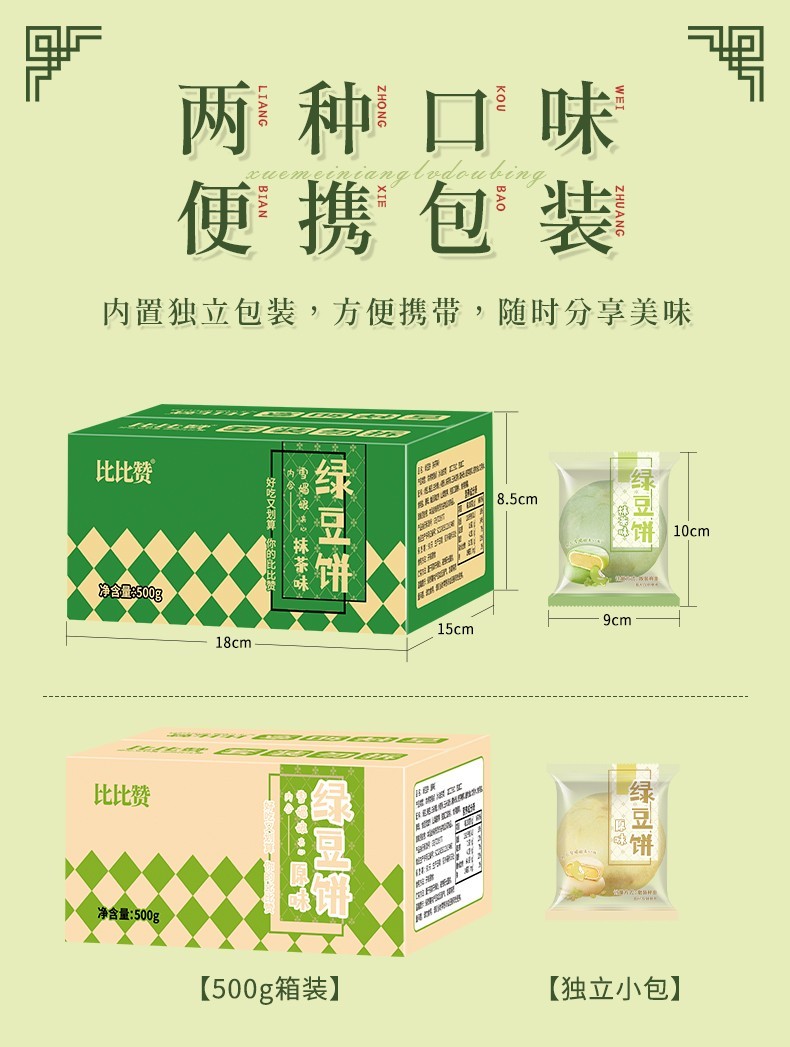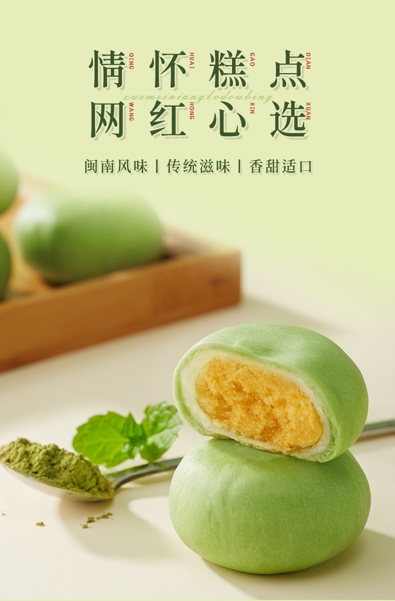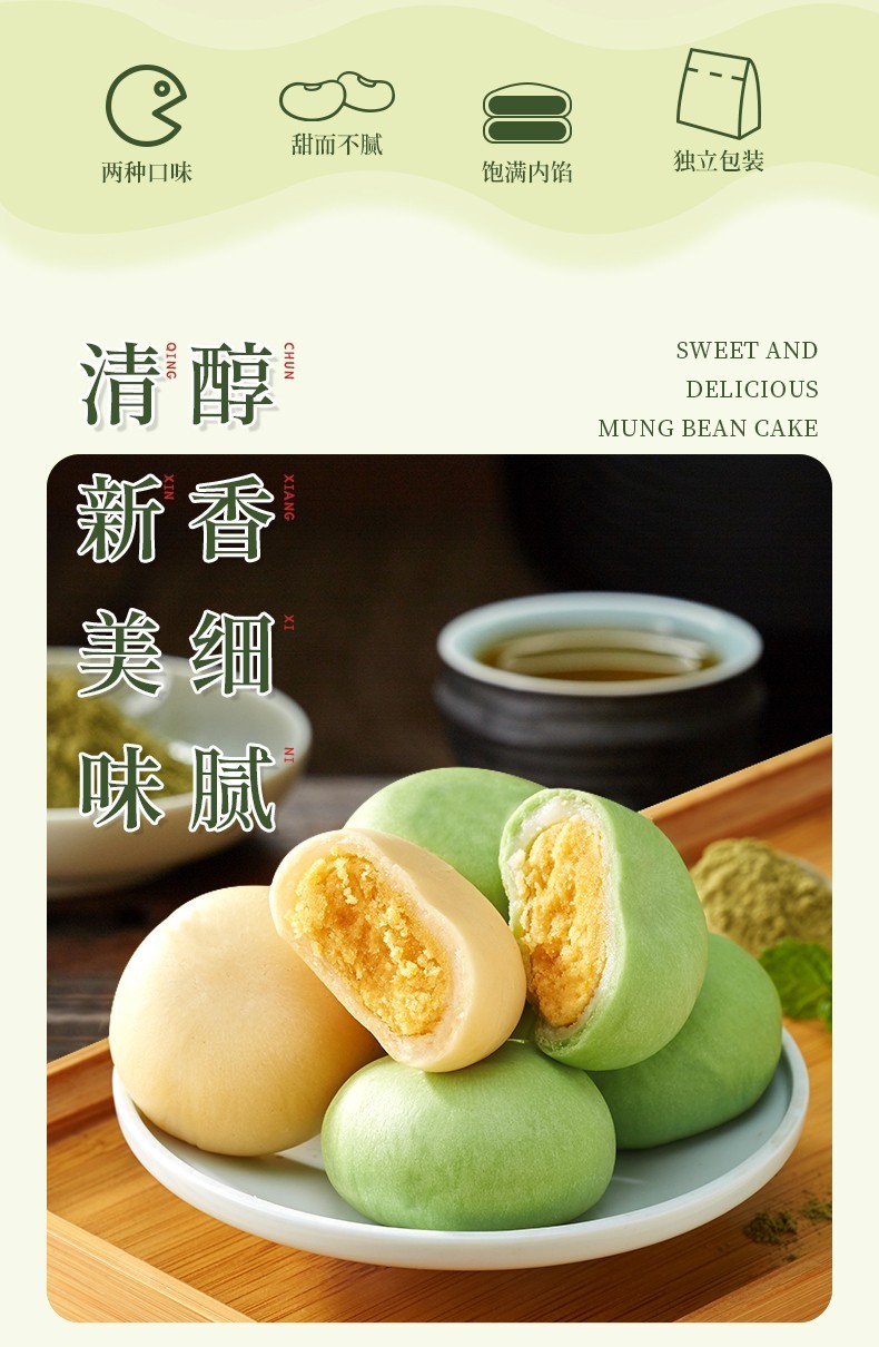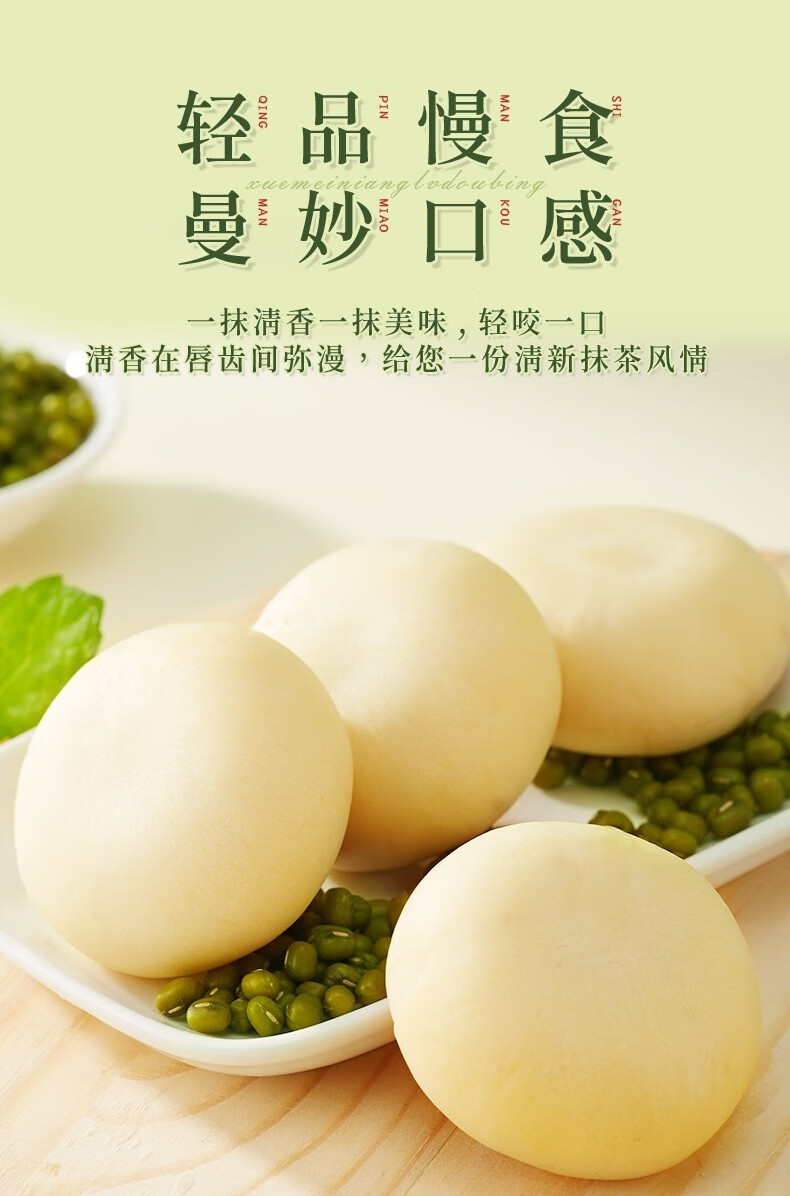 Bibizan Matcha Flavored Mung Bean Cake Sandwich Cake as Breakfast Replacement Light Snack for Lazy People as Late Night Snack Matcha Flavored Mung Bean Cake 500g