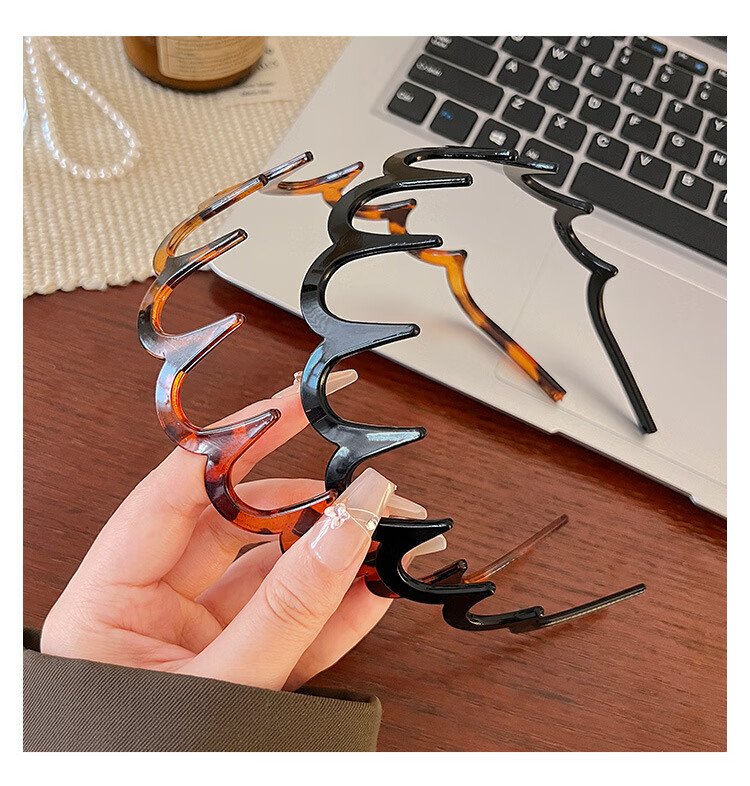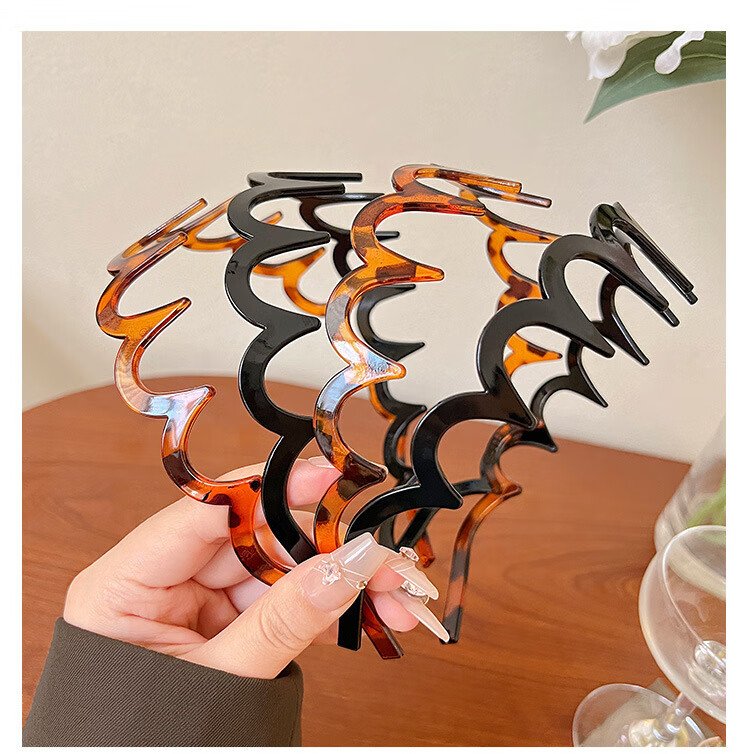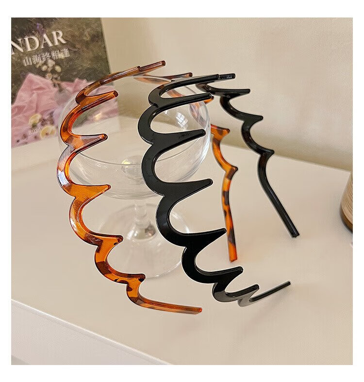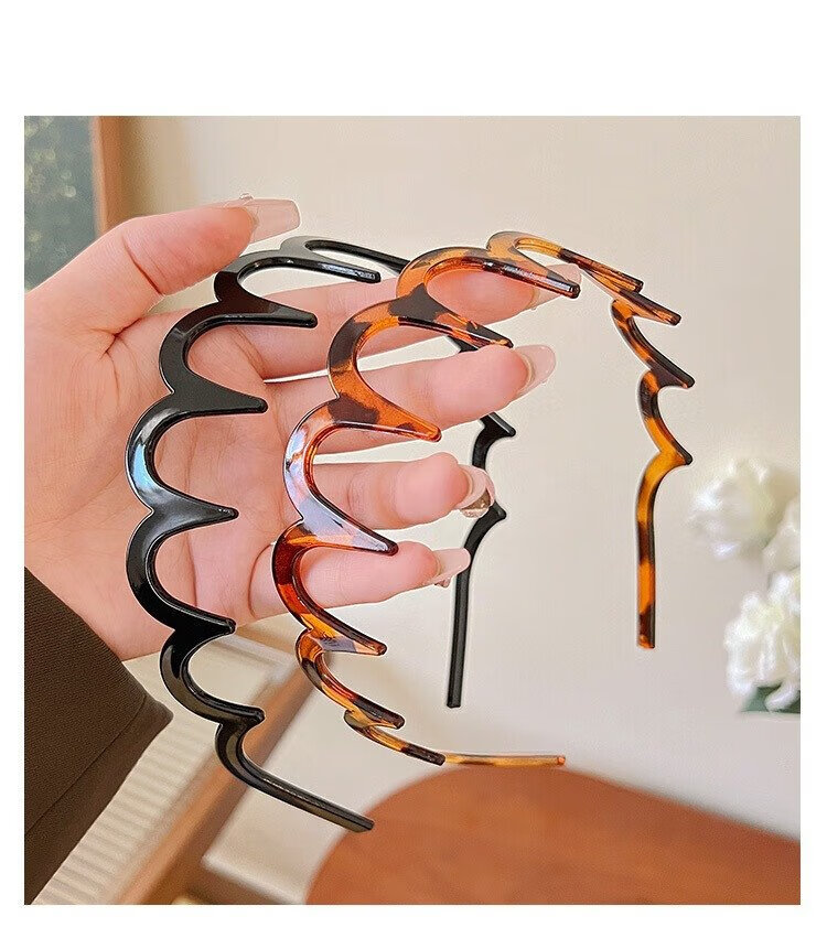 Jisenjia headband, high-ceiling, high-end, simple, versatile, wavy hairband, face wash dish, Internet celebrity hair accessories, non-slip toothed hairband, tea and coffee color