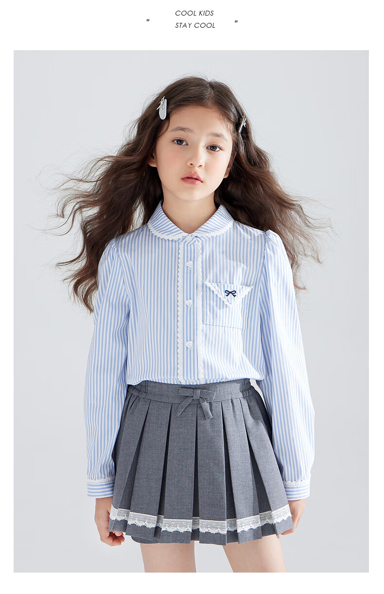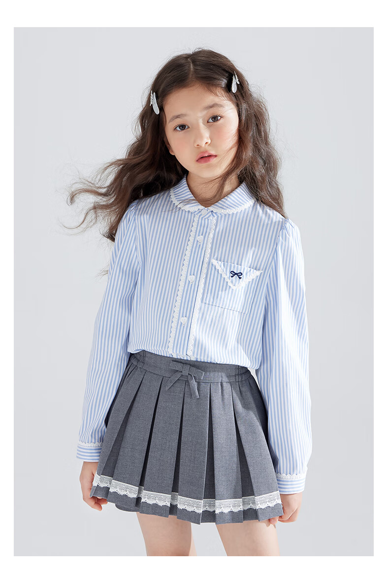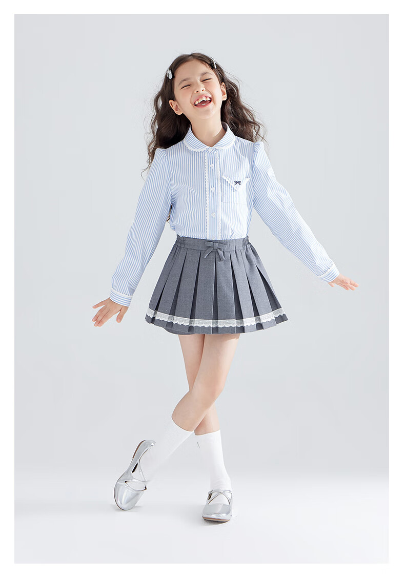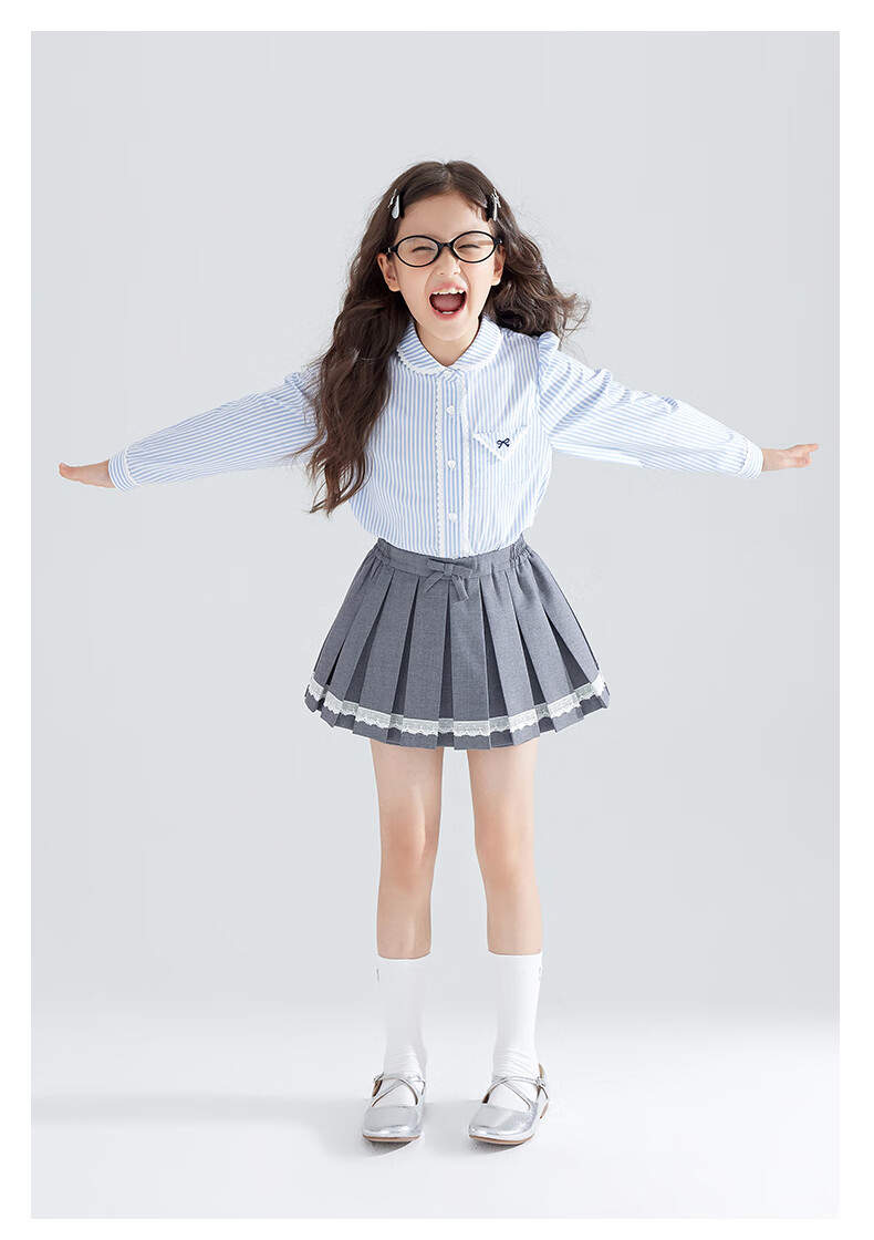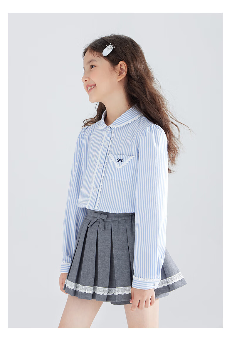 Mucmukn Blues Academy Girls Ballet Academy Style Lace Shirt Medium and Large Children's Blue and White Striped Bow Top Blue and White Strips 120cm