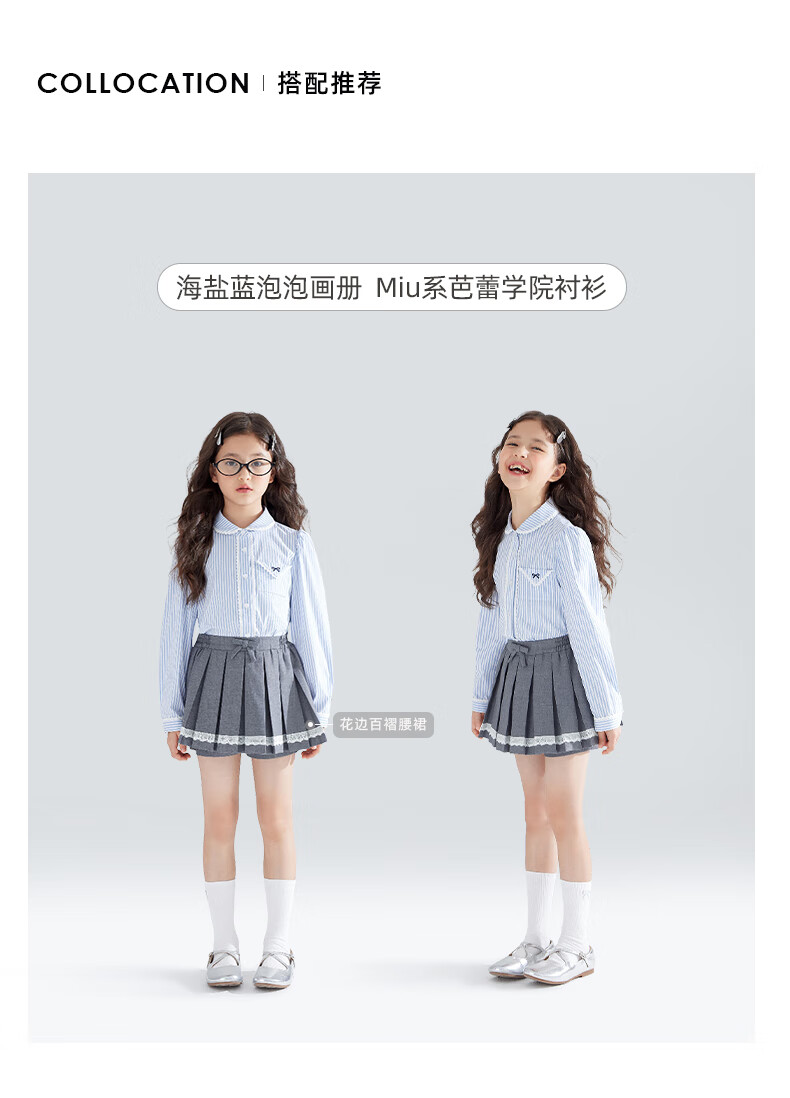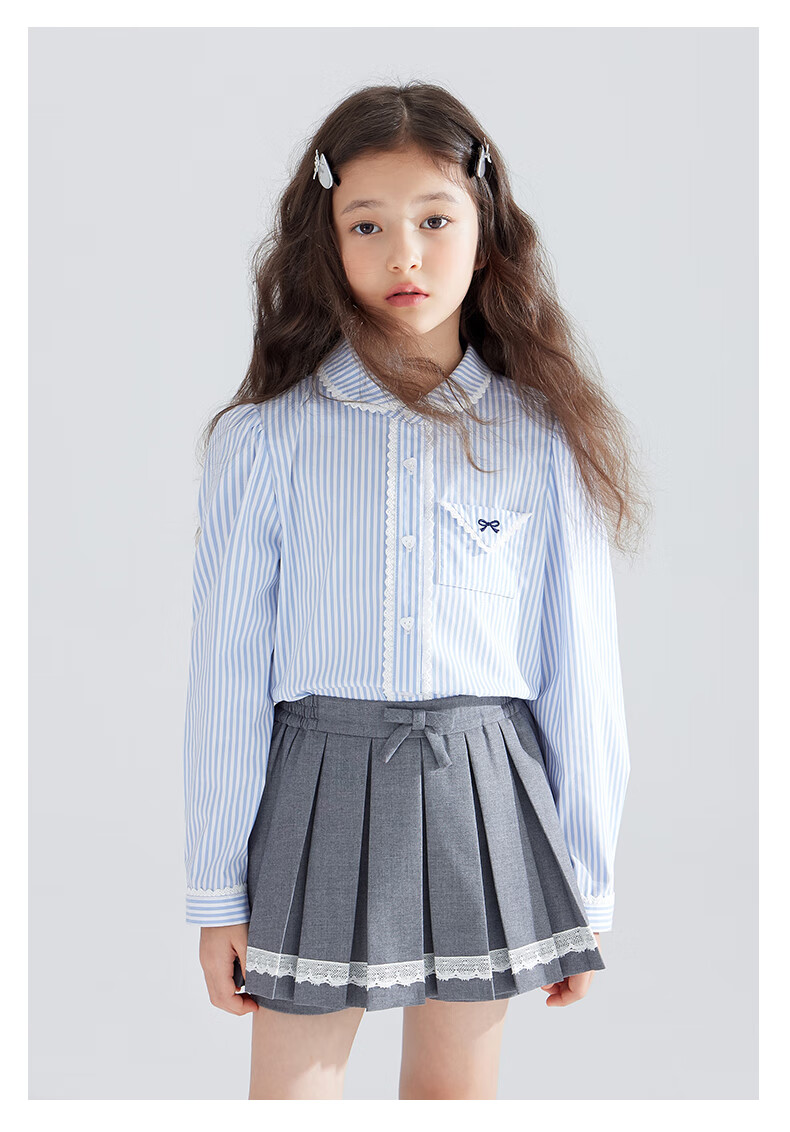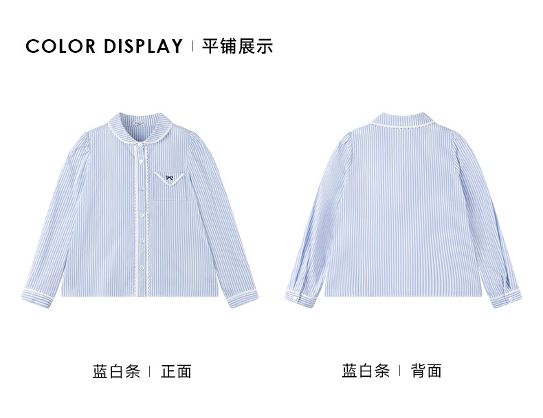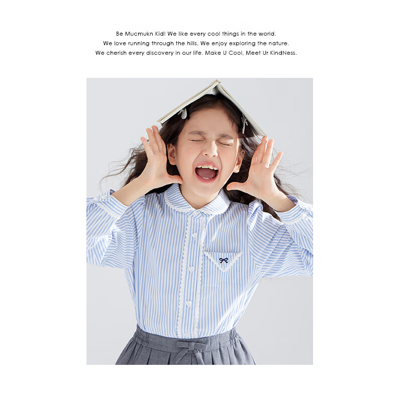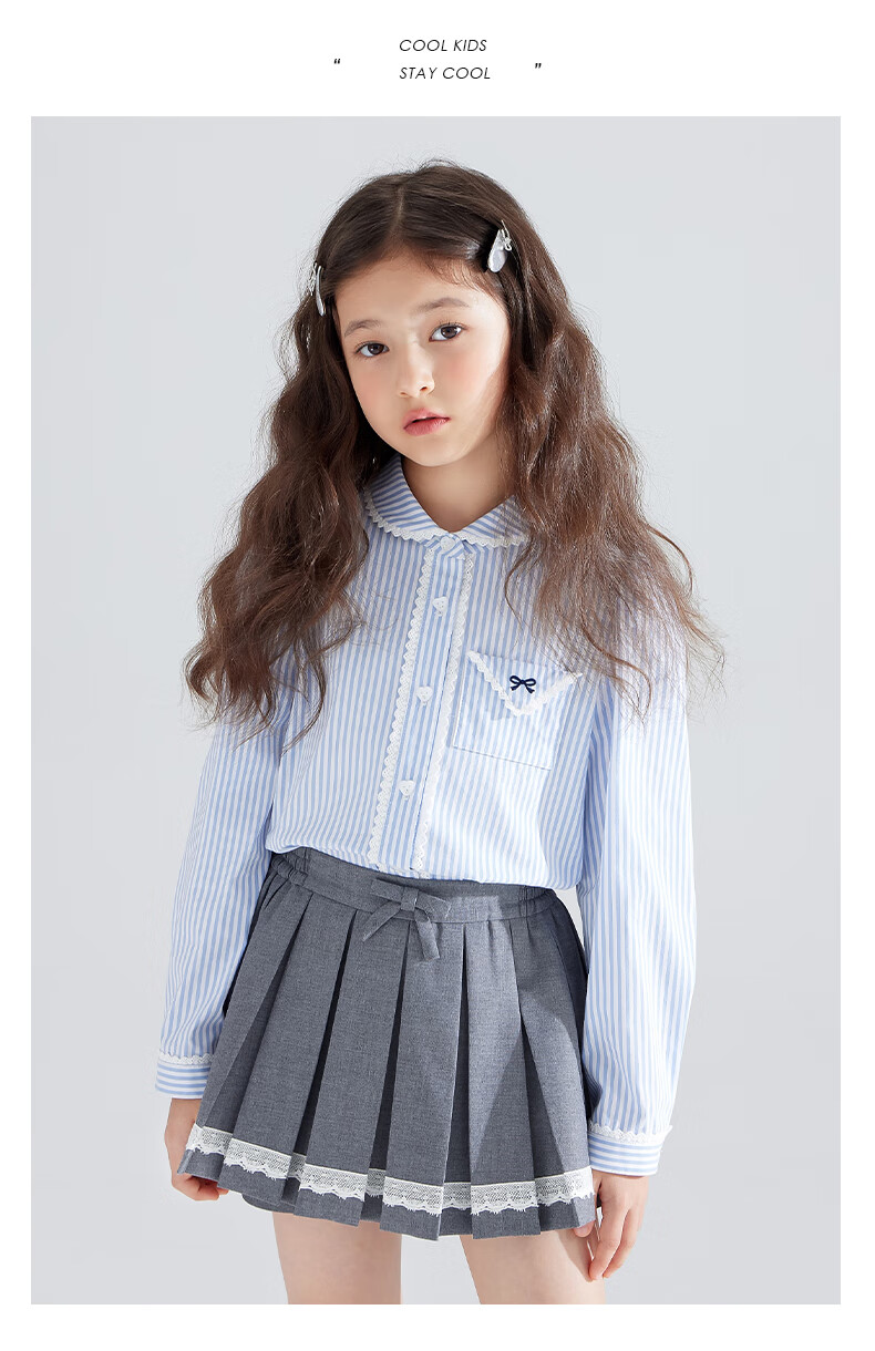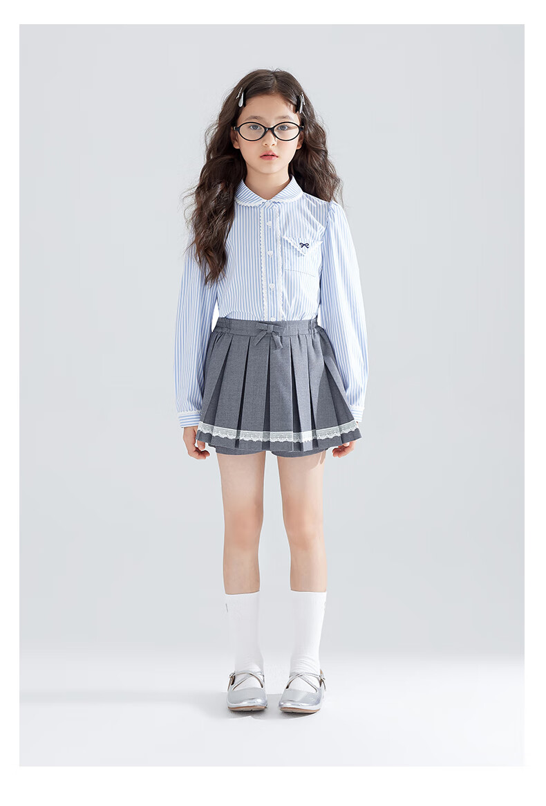 Mucmukn Blues Academy Girls Ballet Academy Style Lace Shirt Medium and Large Children's Blue and White Striped Bow Top Blue and White Strips 120cm