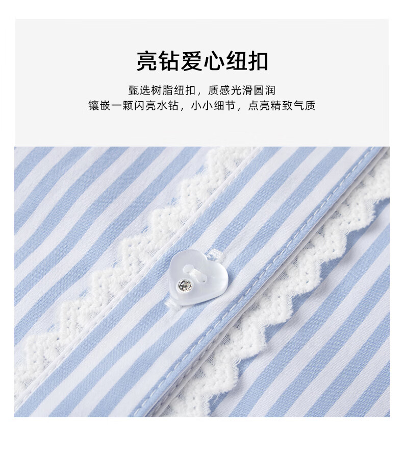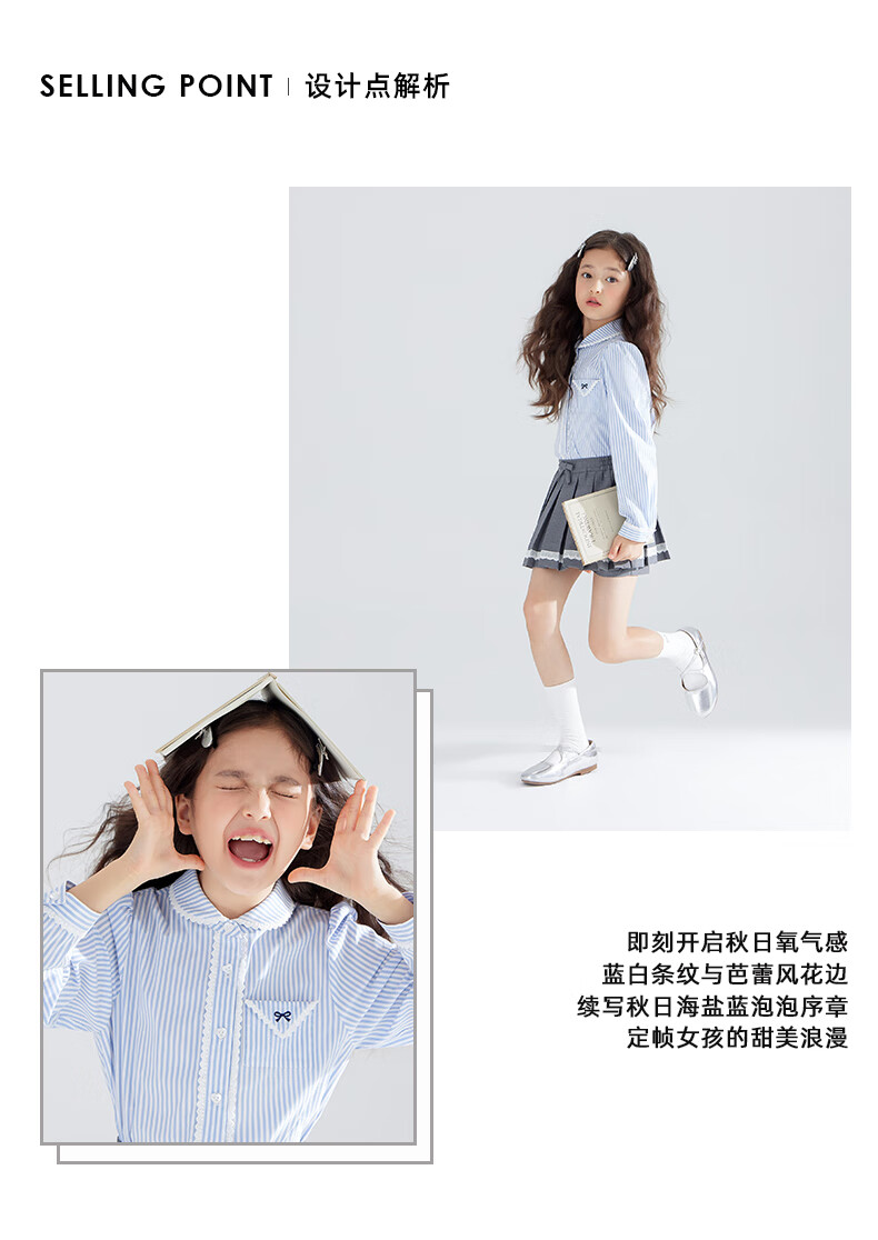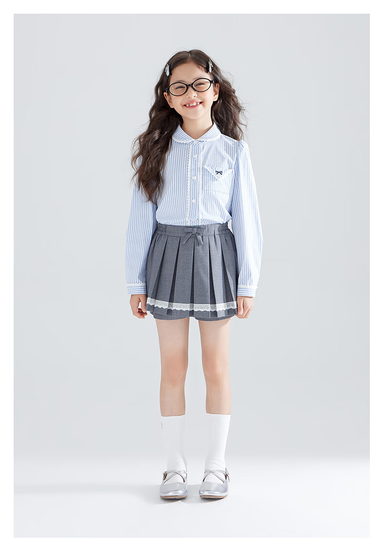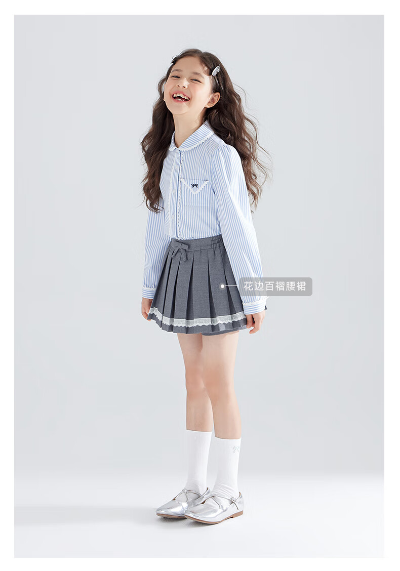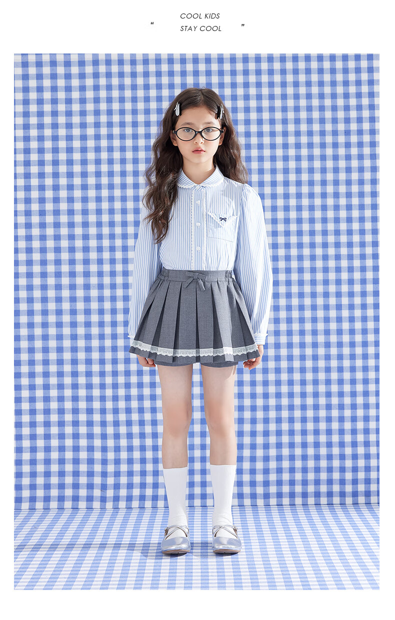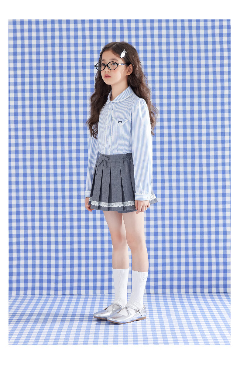 Mucmukn Blues Academy Girls Ballet Academy Style Lace Shirt Medium and Large Children's Blue and White Striped Bow Top Blue and White Strips 120cm