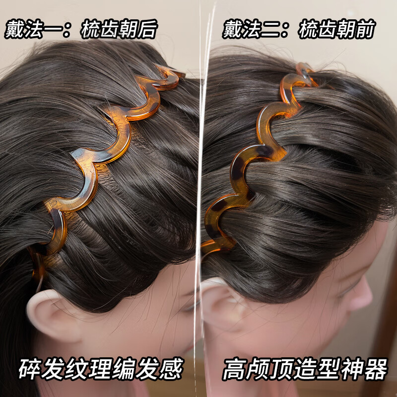 Zuoou dual-purpose large wavy hair hoop for women with bangs and broken hair, hairpin high skull top 2025 new headband with texture pure black