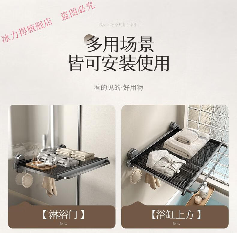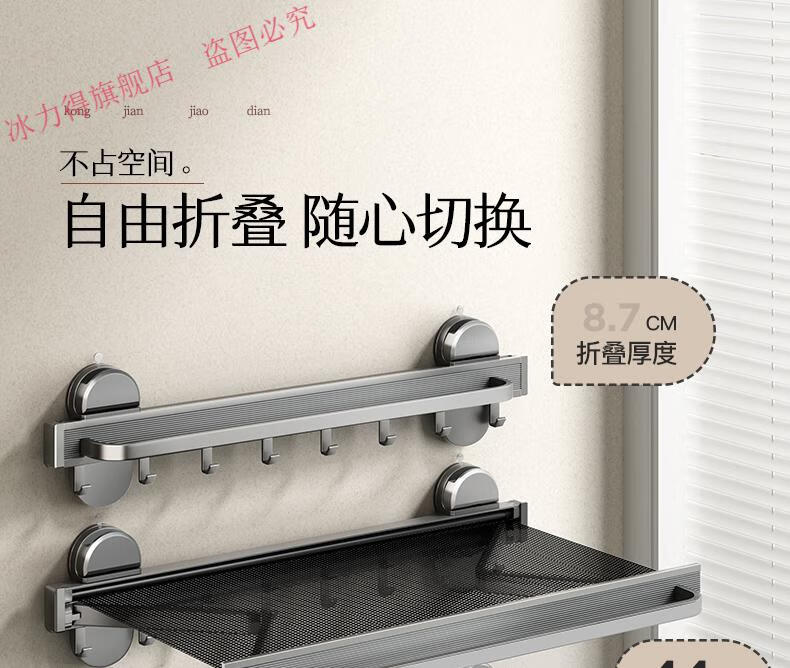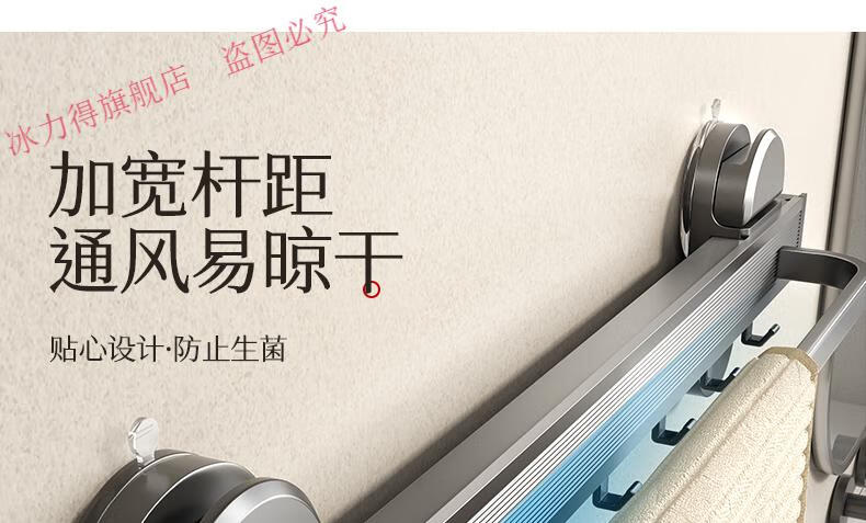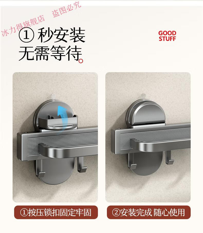 Jingga bathroom suction cup retractable bath towel rack towel rack bathroom clothes artifact toilet punch-free towel rack main picture gun gray 44cm with rod-suction cup hair c