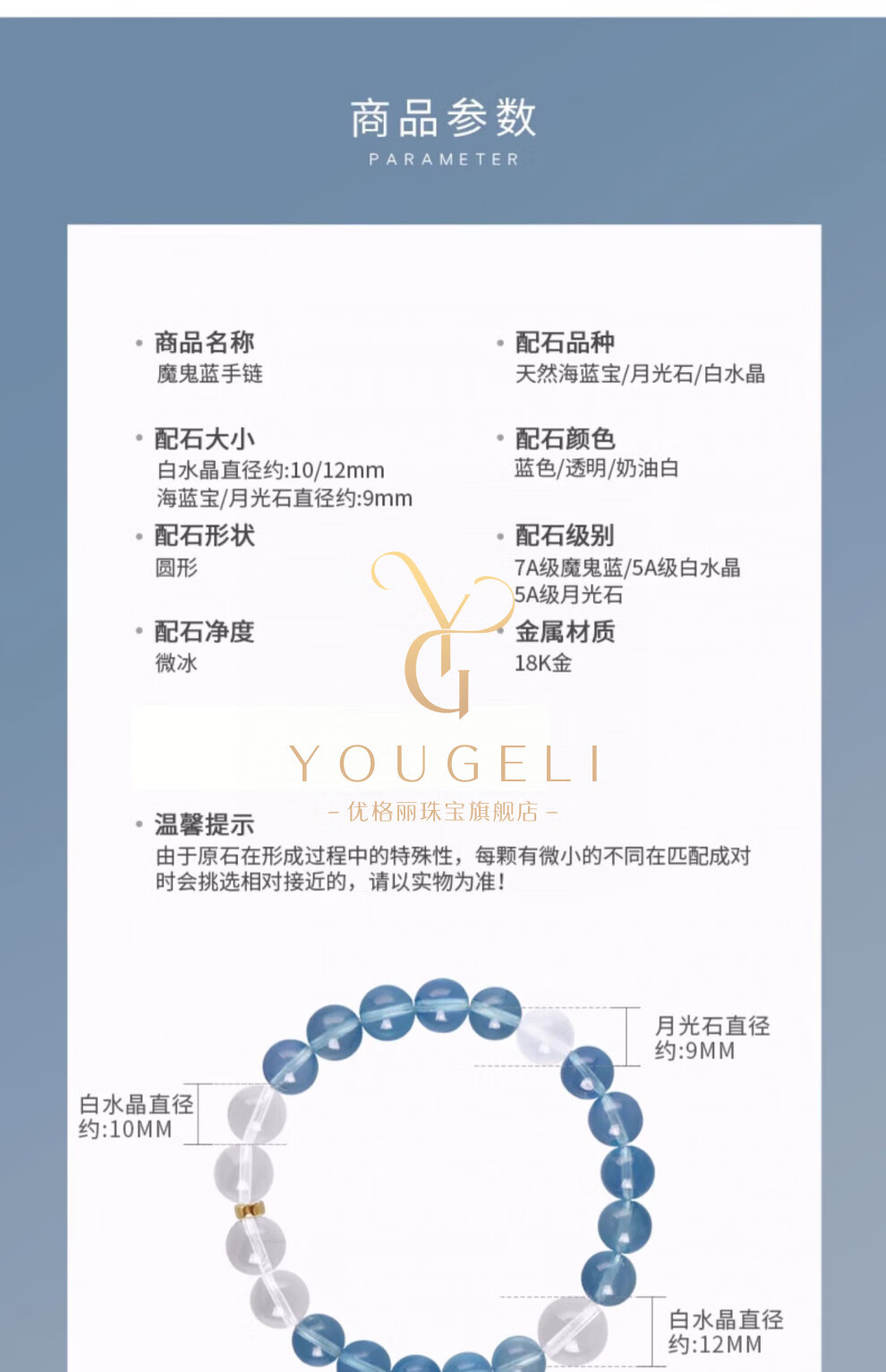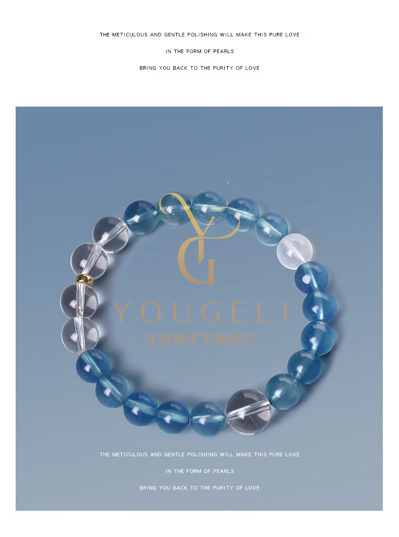 Yogurt 18K Gold Natural Brazilian Aquamarine Bracelet Women's Ice Devil Blue Bracelet Hand Decoration Gift Beads 8mm
