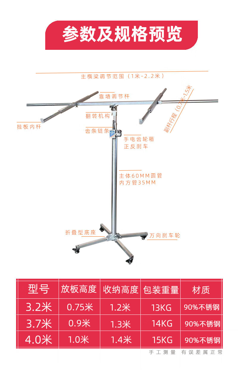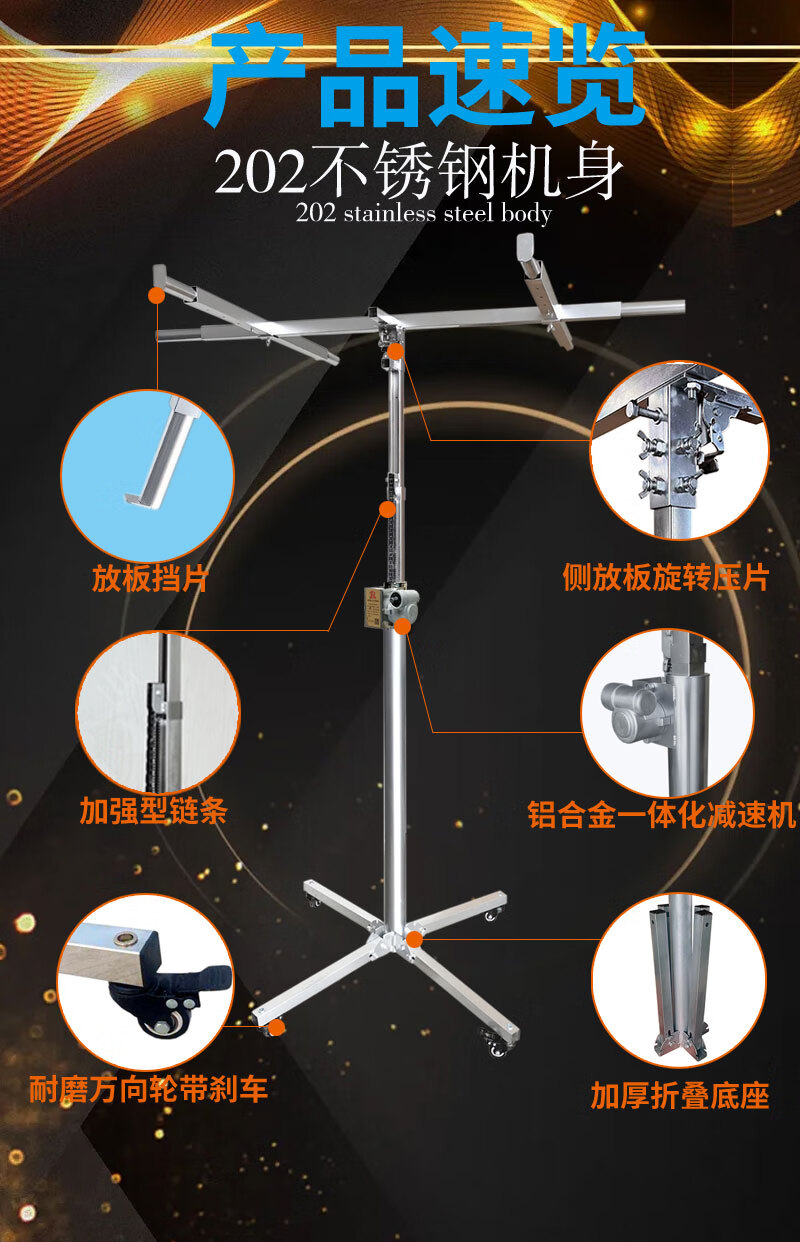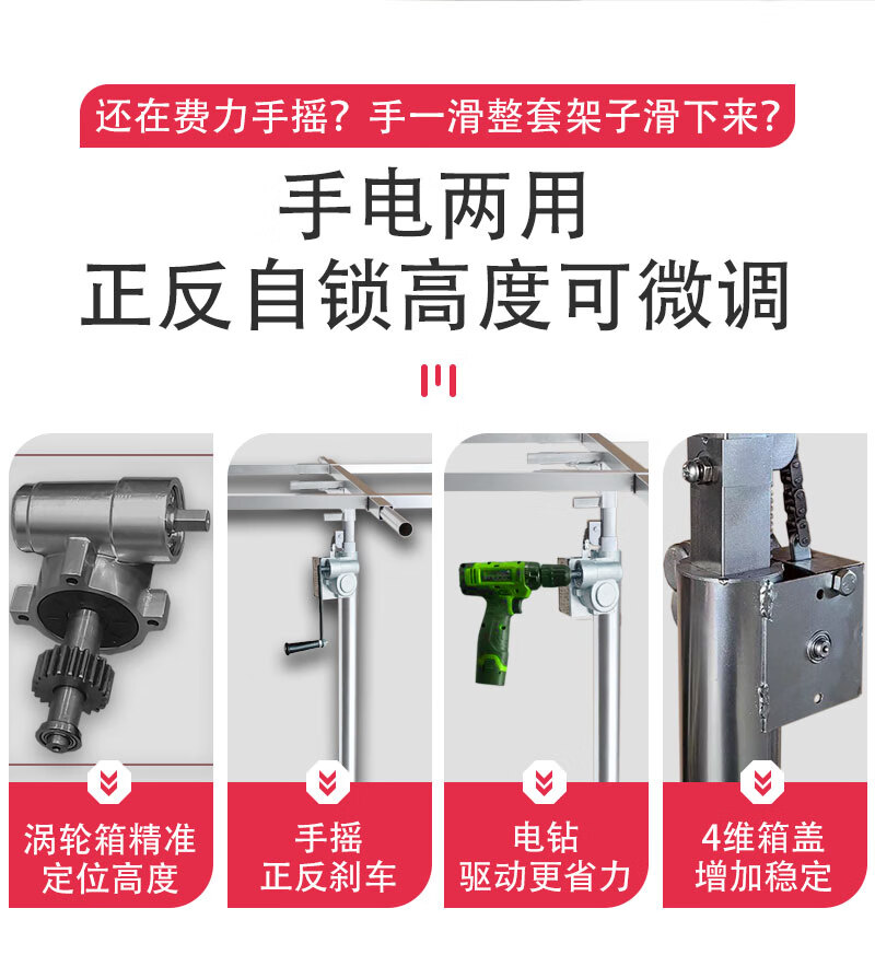 Gypsum board lifting bracket on the woodworking ceiling, ceiling sealing artifact, hand-cranked electric three-in-one lift, 3.2-meter hand-cranked three-purpose thick galvanized pipe rack + chain