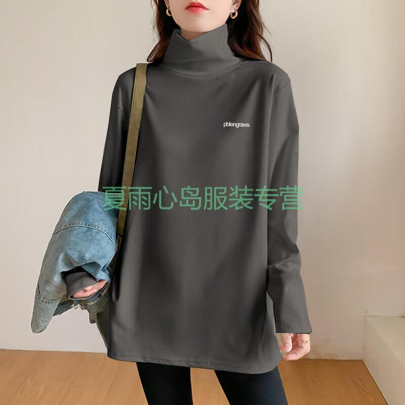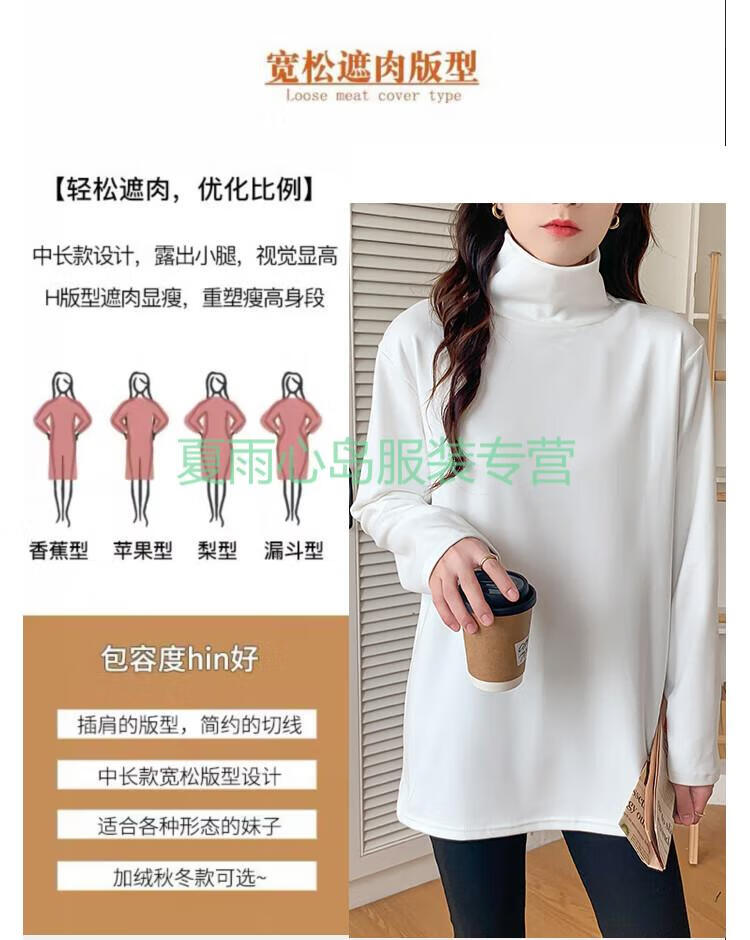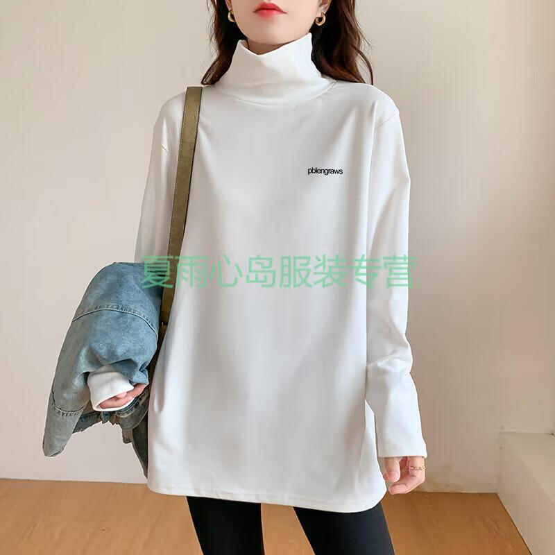 Woodpecker German velvet turtleneck bottoming shirt for women with thickened warm loose large size mid-length top fashionable long-sleeved T-shirt trendy AD0189 white M 95-115Jin Jin is equal to 0.5 kg