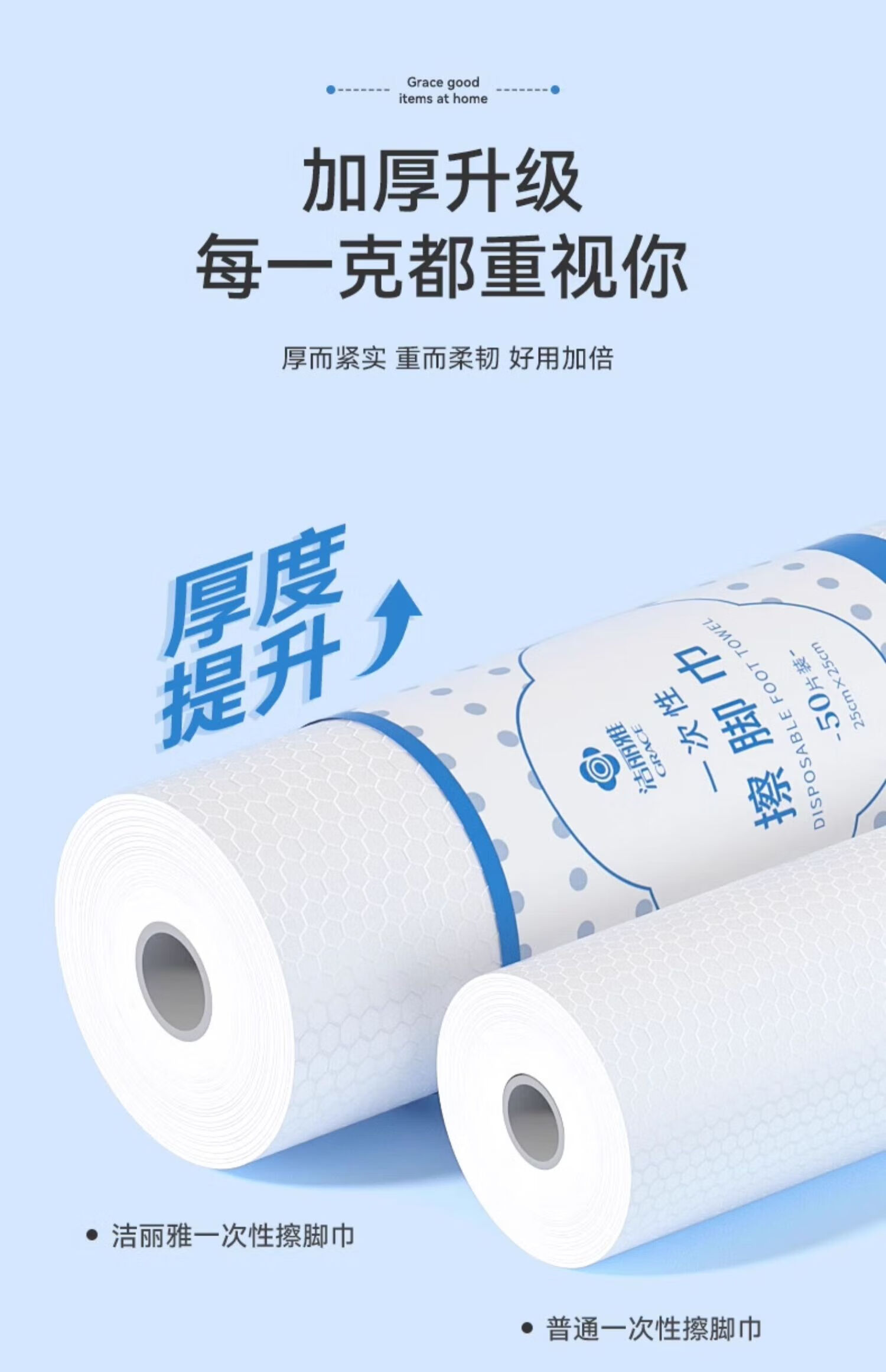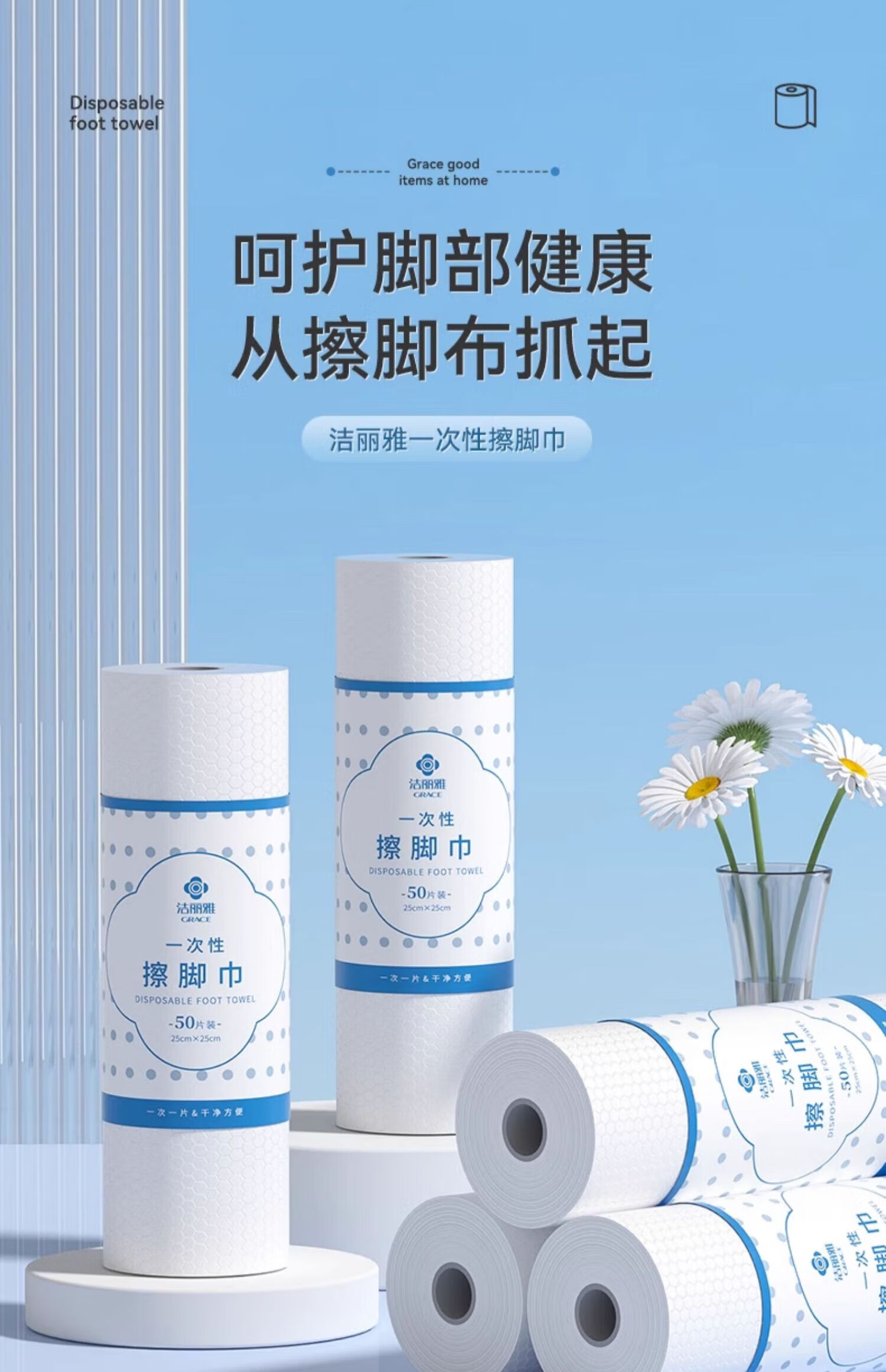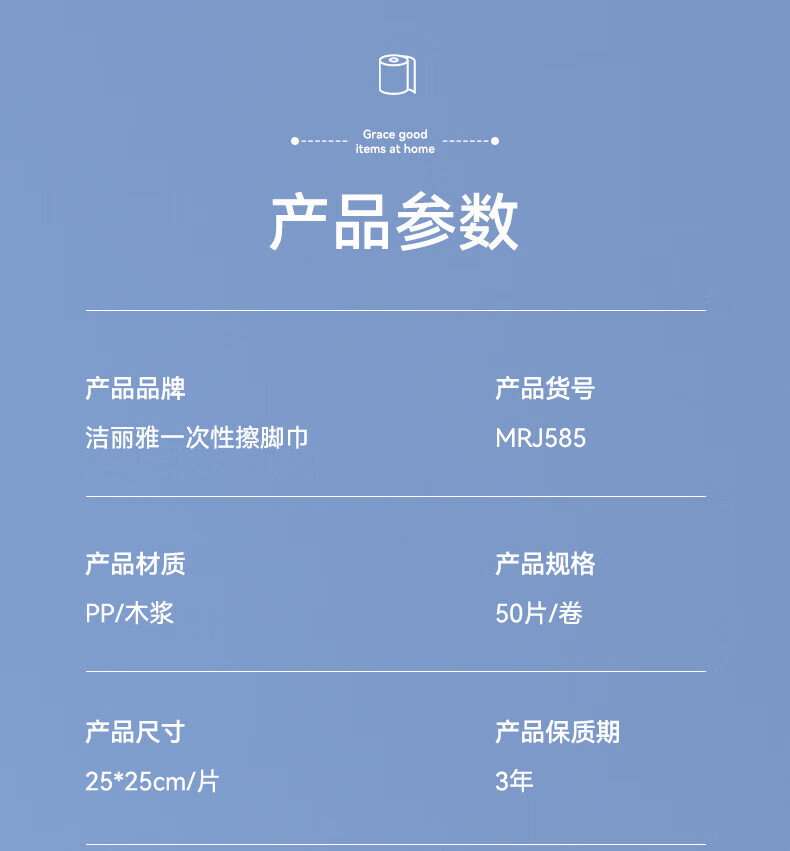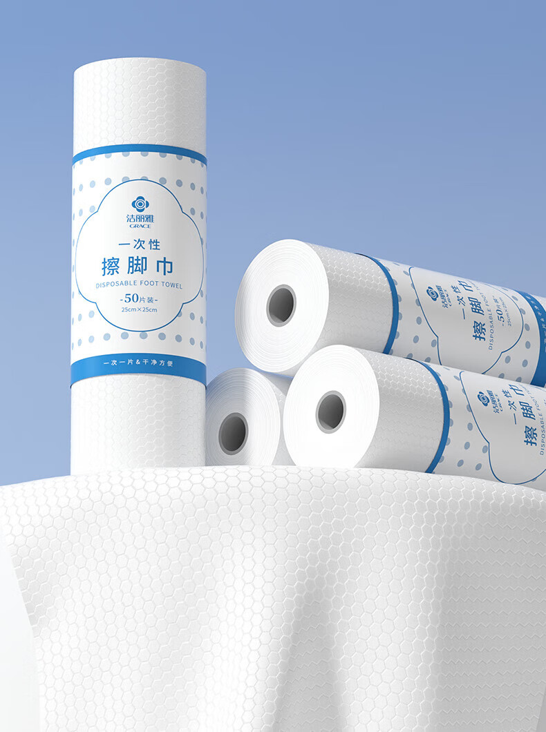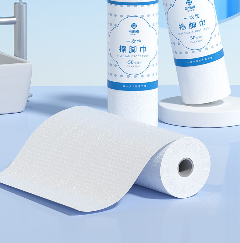 Jie Liya (grace) disposable foot towels, lazy dormitory household paper towels, foot wash towels, thickened and enlarged foot wipes, 3 tubes, thickened and enlarged, 150 pieces in total