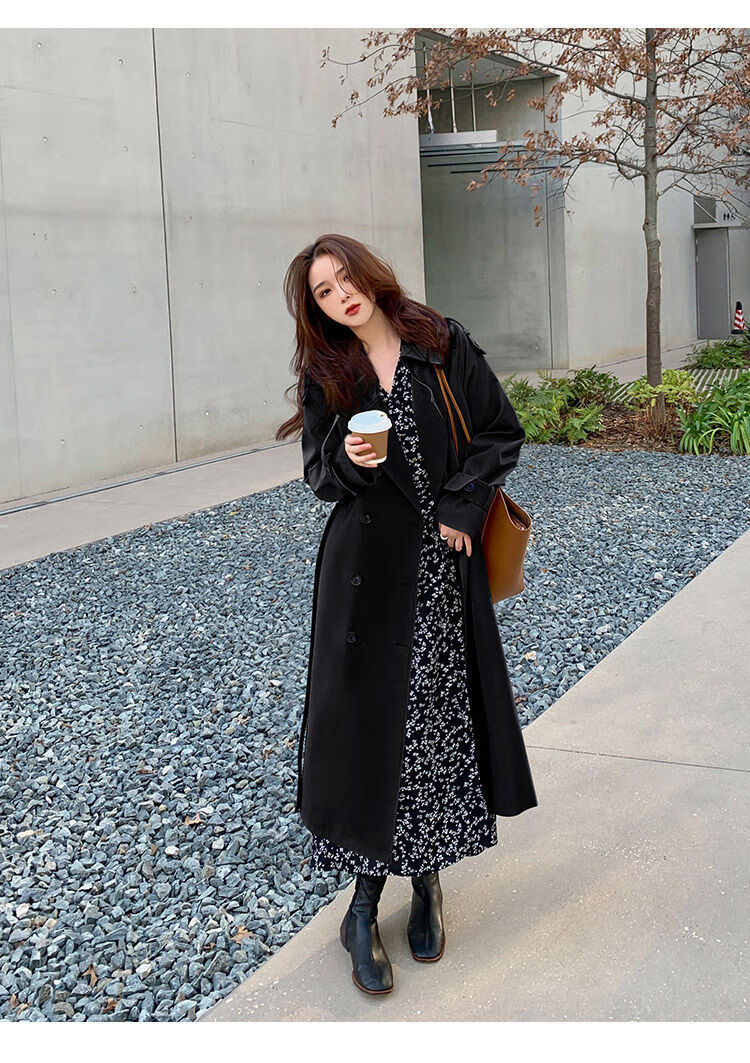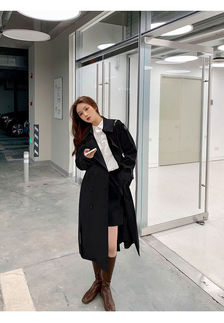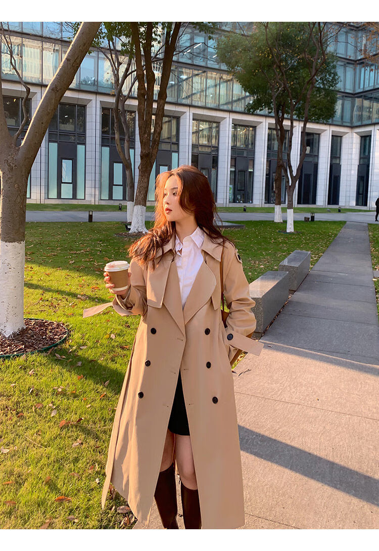 Woodpecker Windbreaker Jacket Women's 2024 Spring and Autumn New Korean Style Suit Collar Mid-Long Jacket Loose Temperament Popular Coat Khaki L