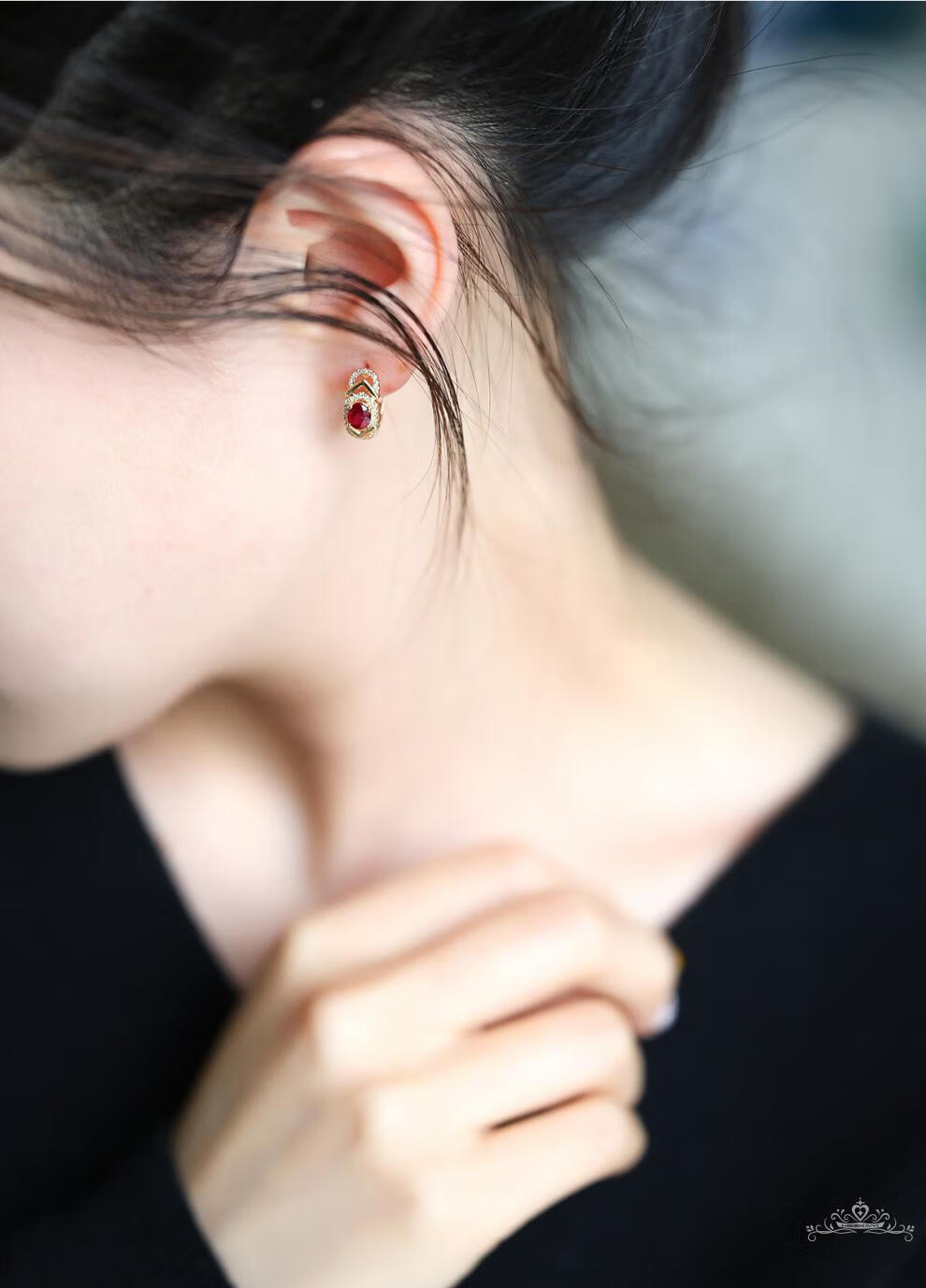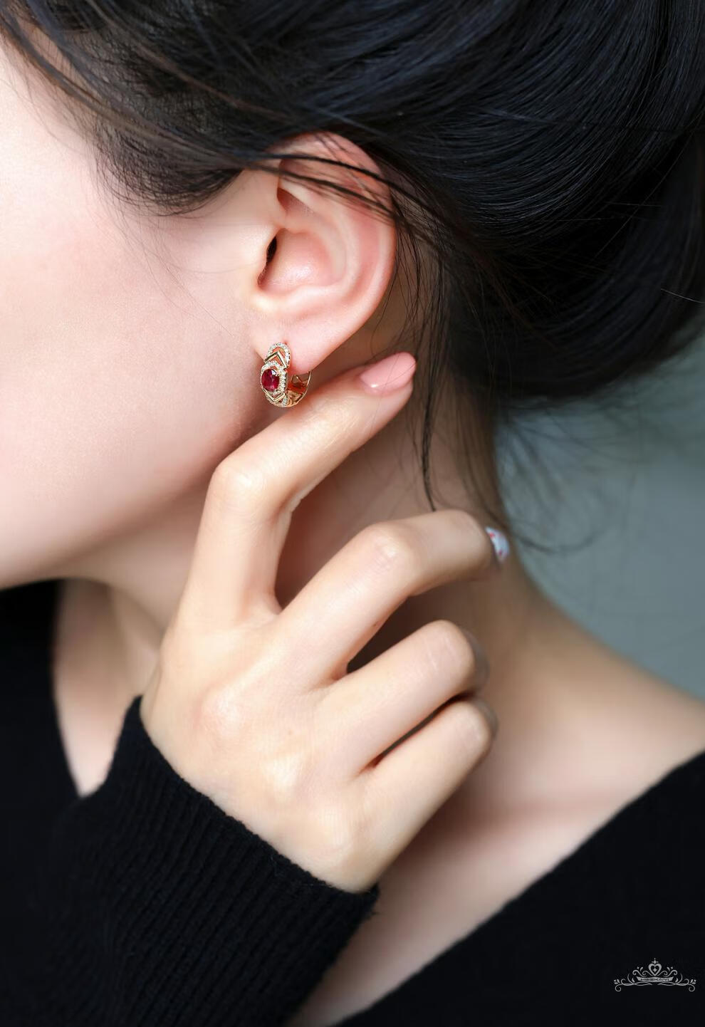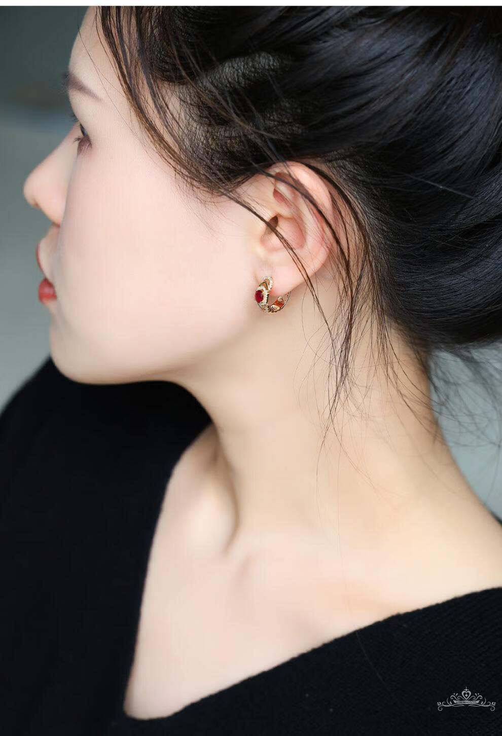 Haikai earrings for women, ruby earrings, luxury jewelry, Chinese Valentine's Day, birthday gift for wife, 0.8 carat pigeon blood ruby earrings (/Selected Flawless)