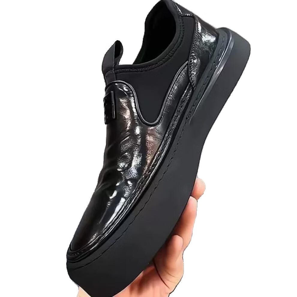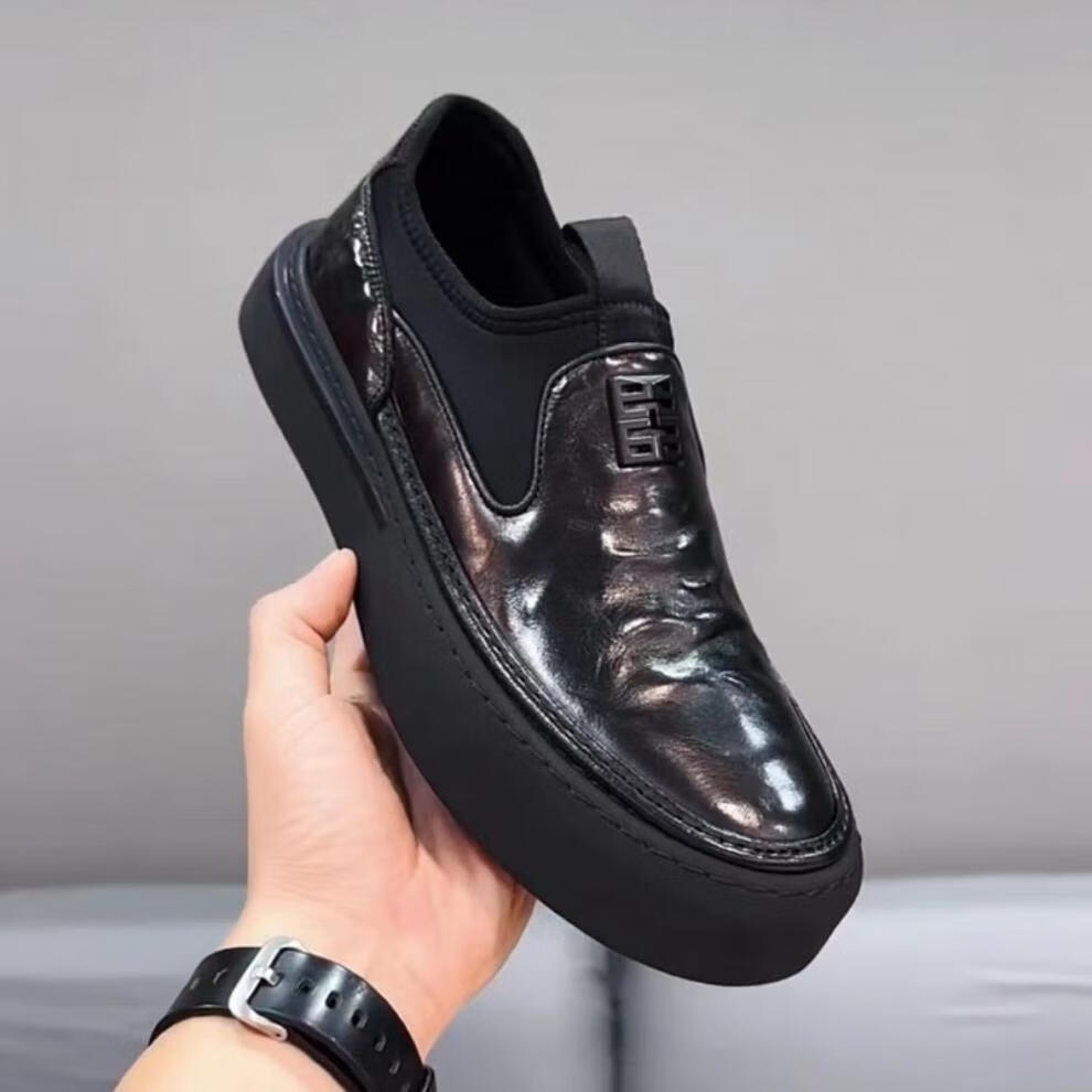 CARTELO first-layer cowhide trendy brand men's shoes 2025 autumn new slip-on cowhide business casual shoes genuine leather thick sole 80195 black 41 standard leather shoe size
