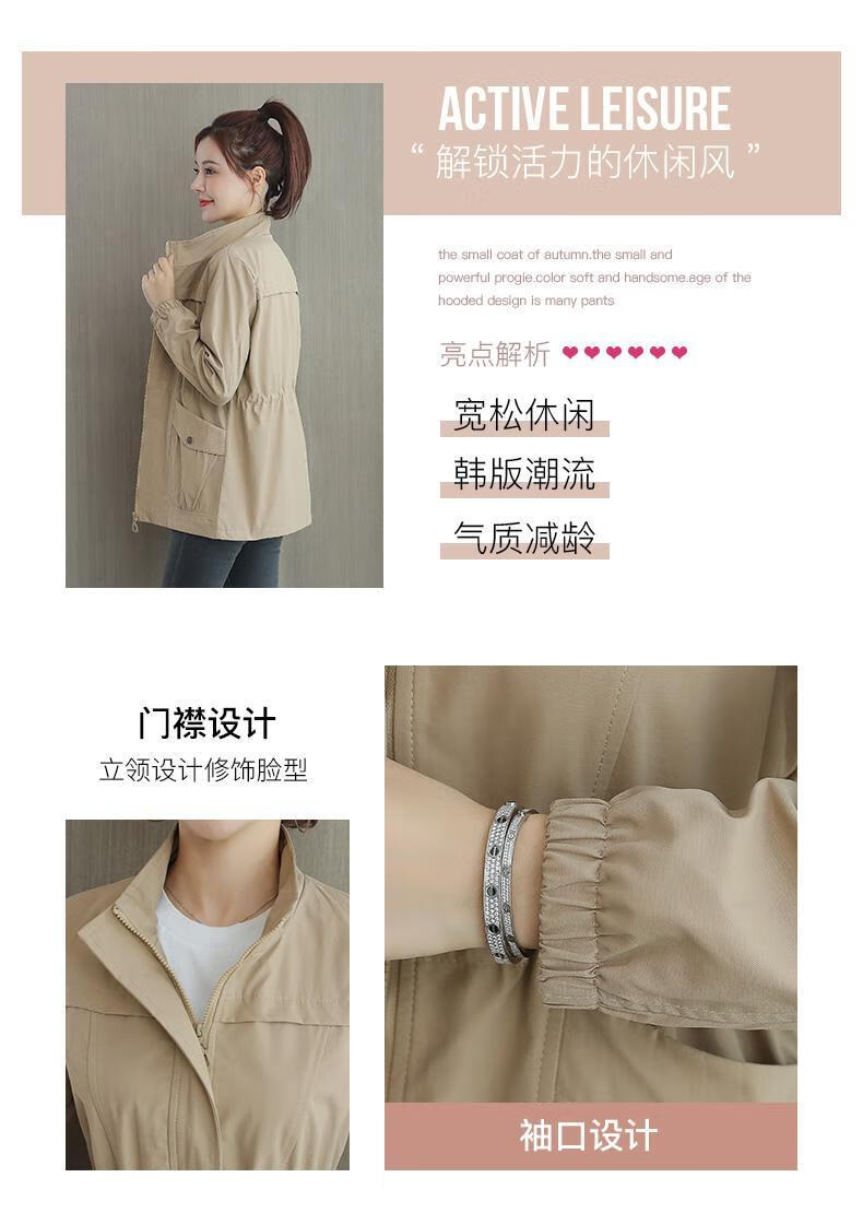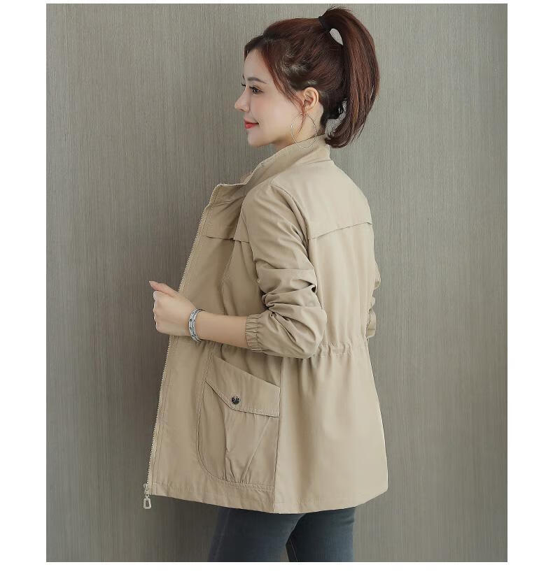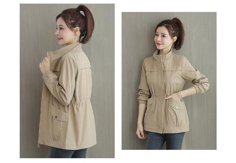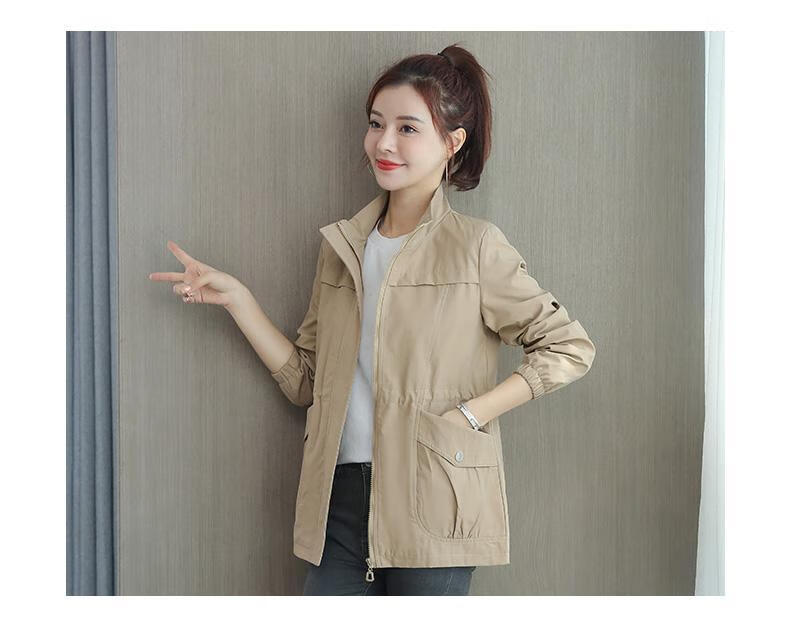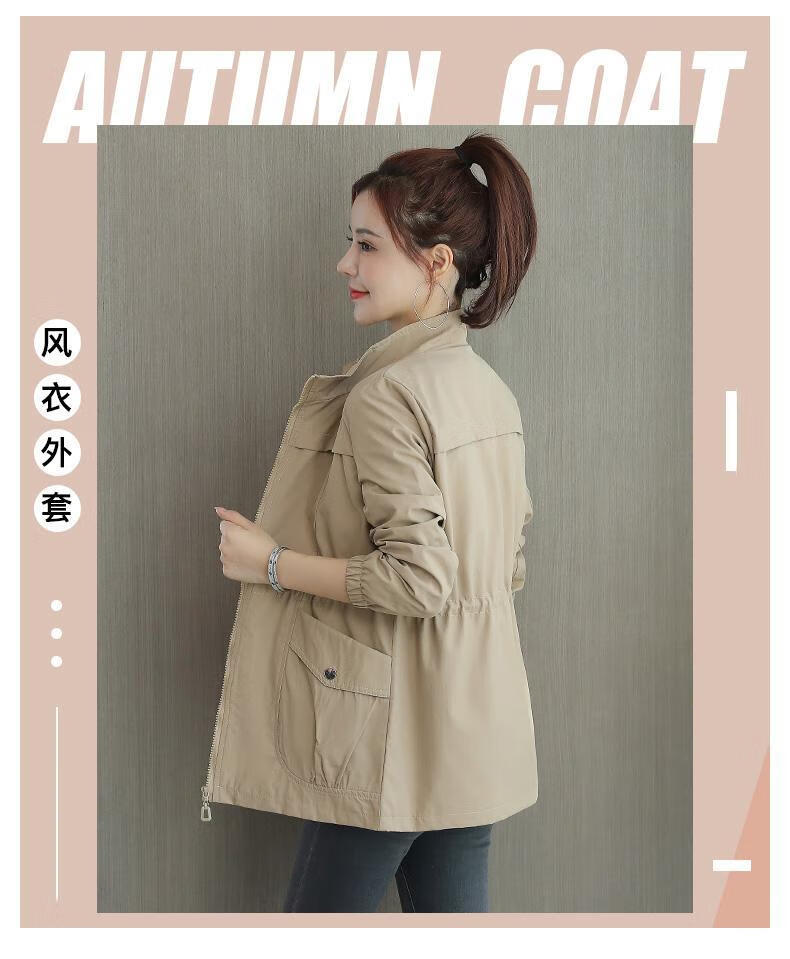 Pierre Cardin 2025 New Autumn Clothing Small Windbreaker Women Spring and Autumn Women's Western Style Jacket Cardigan Casual Windbreaker Khaki M Recommendation 90-105Jin Jin equals 0.5 kg