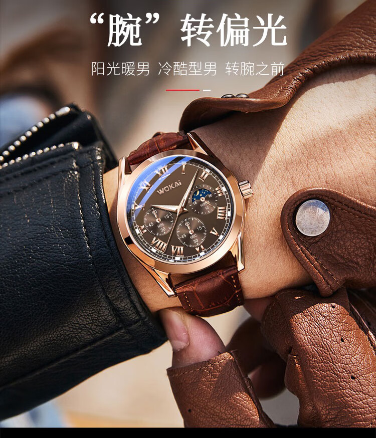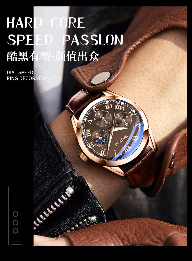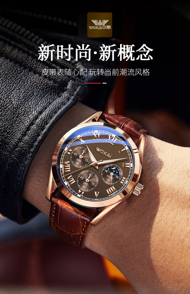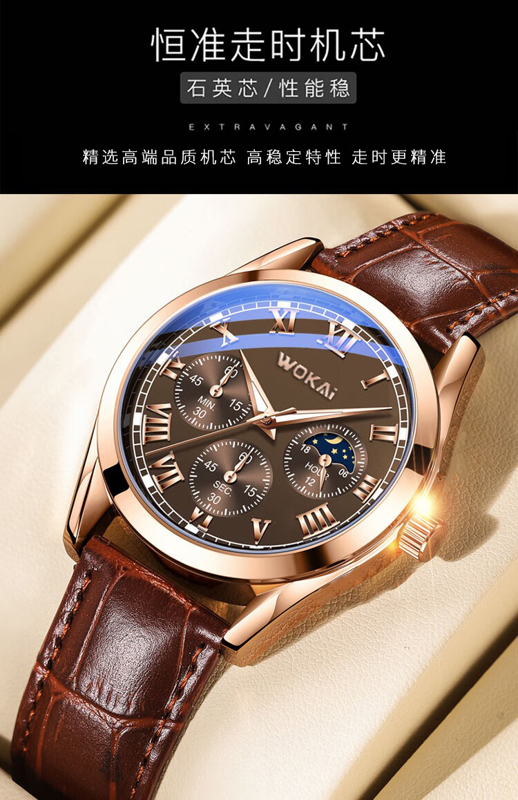 Channel Exclusive 2024 New Men's Fashion Watch Business Trendy Belt Watch Men's High-Value Watch Commander Style Brown Strap