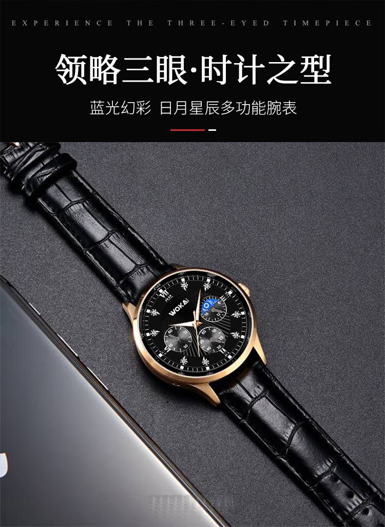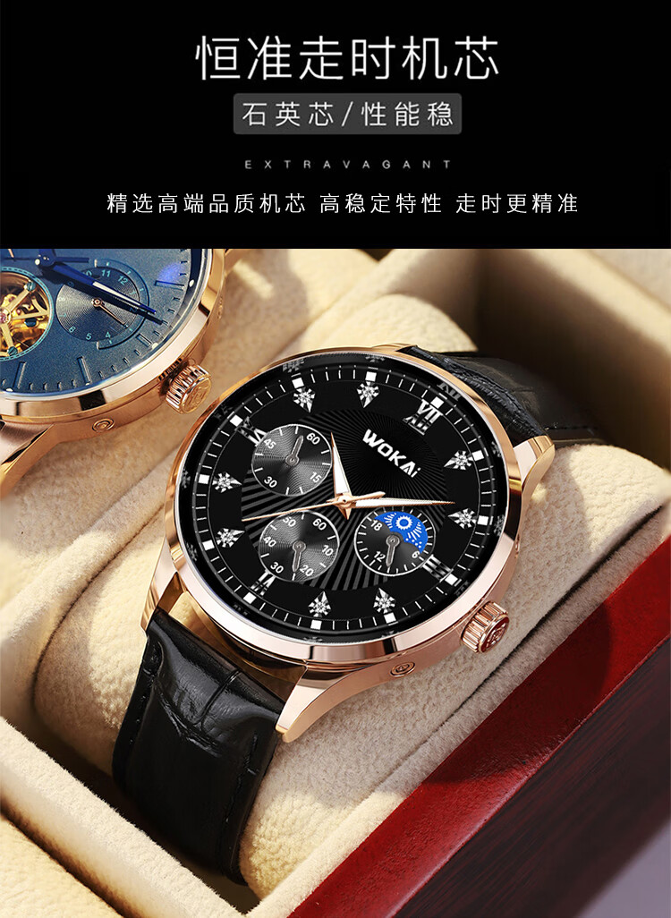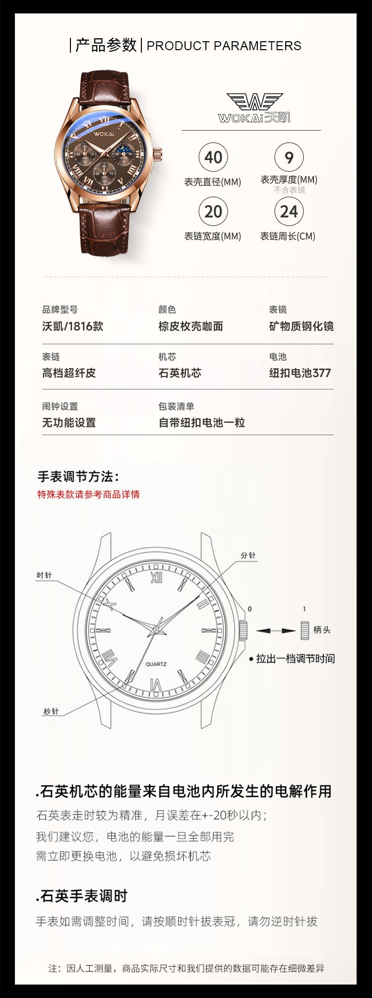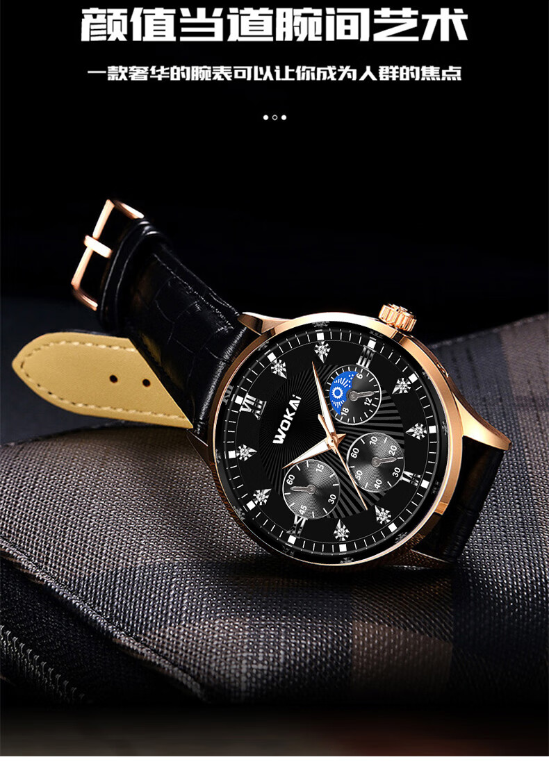 Channel Exclusive 2024 New Men's Fashion Watch Business Trendy Belt Watch Men's High-Value Watch Commander Style Brown Strap