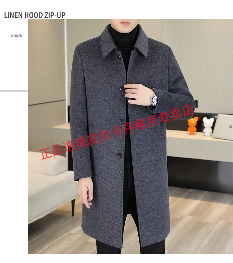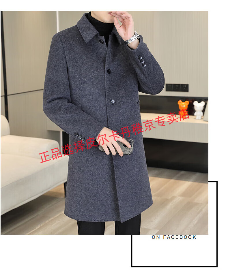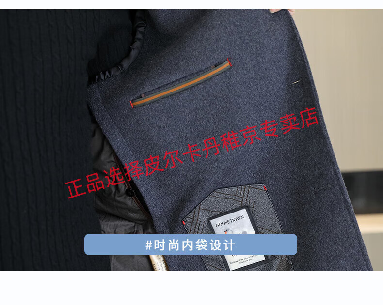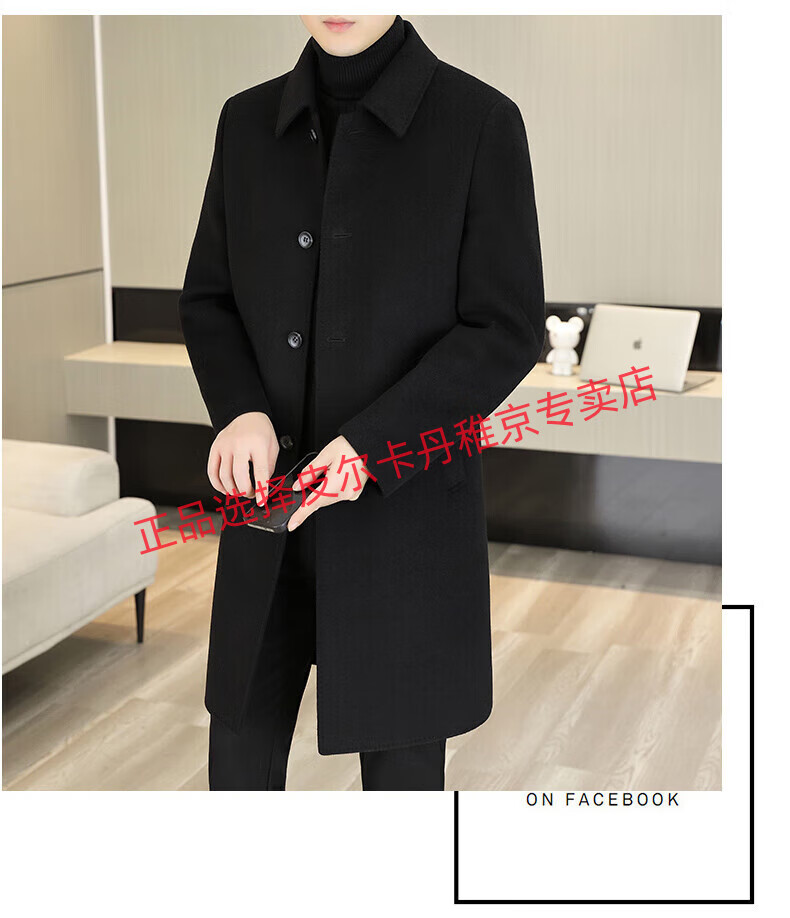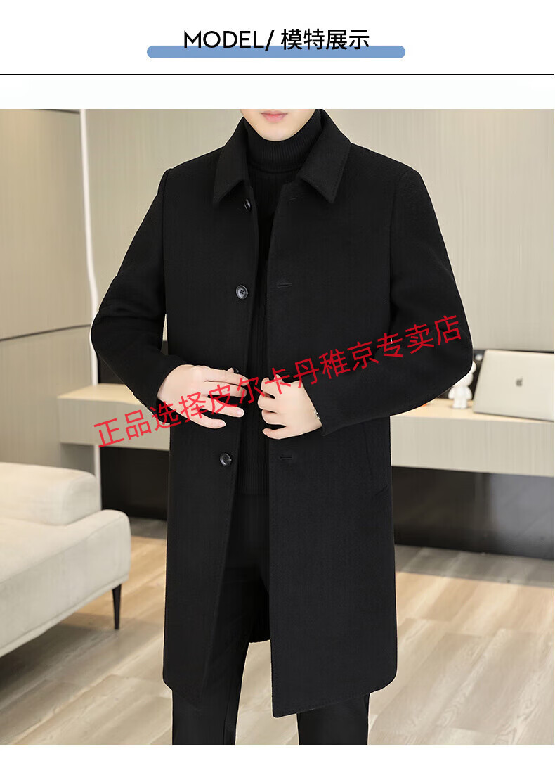 Pierre Cardin mid-length double-sided woolen coat for young and middle-aged men, winter thickened removable lining duck down coat for men LY2316 black mid-length (removable lining) thick L (recommended 120-135Jin Jin equals 0.5kg)