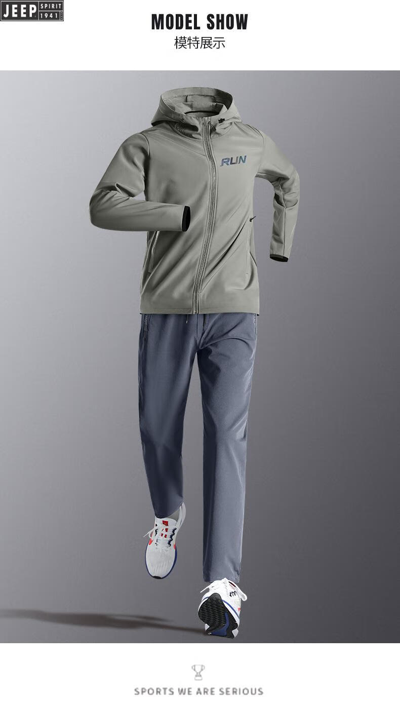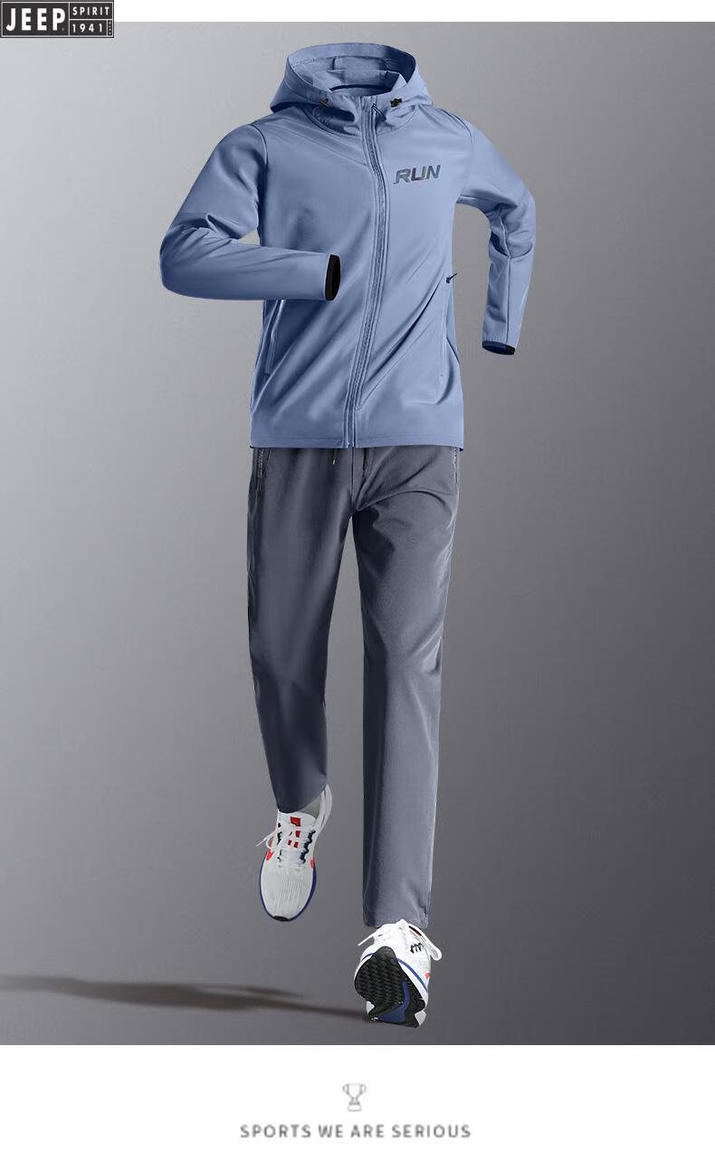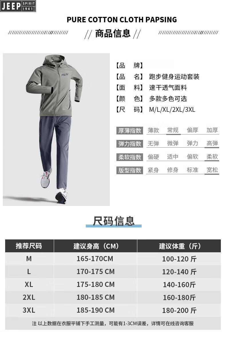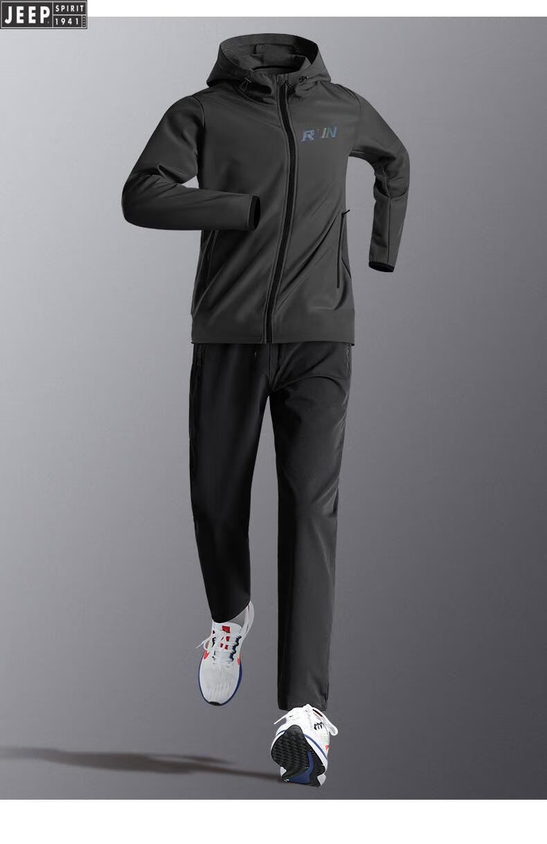 Jeep Sports Suit Men's Autumn and Winter Running Fitness Clothes Morning Running Loose Sports Quick-Drying Clothes Training Clothes Cycling Clothes Military Green Five-piece Set Windproof Loose . XL (140-160Jin Jin equals 0.5kg)