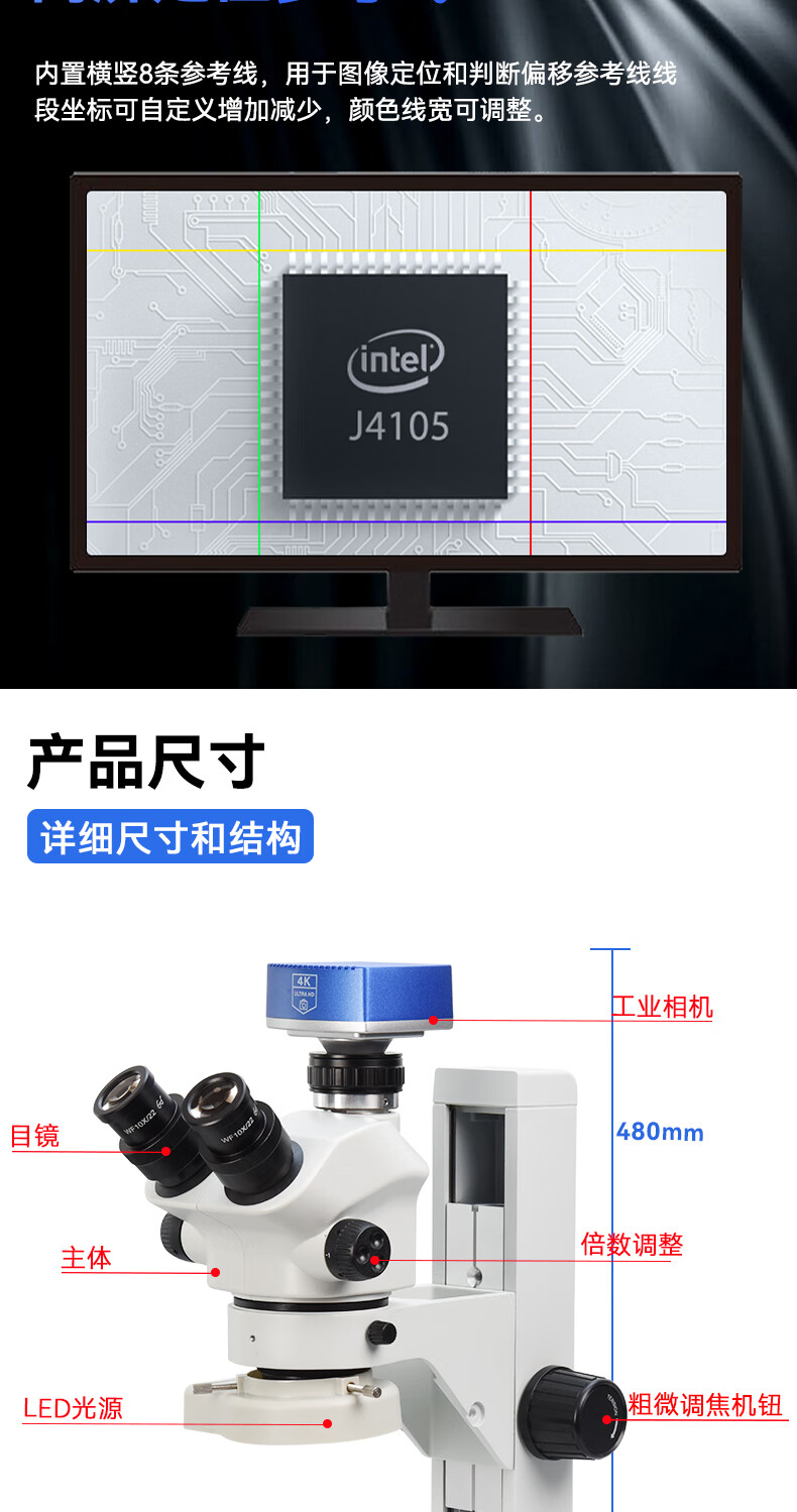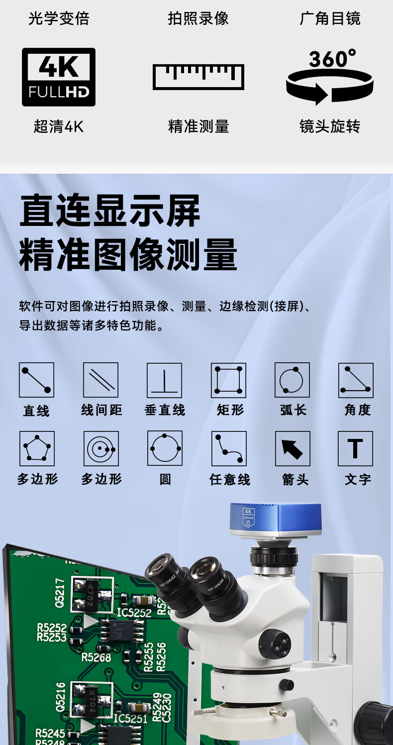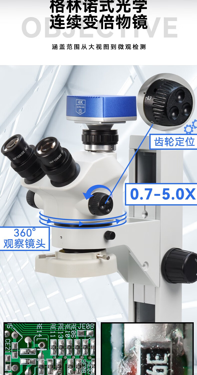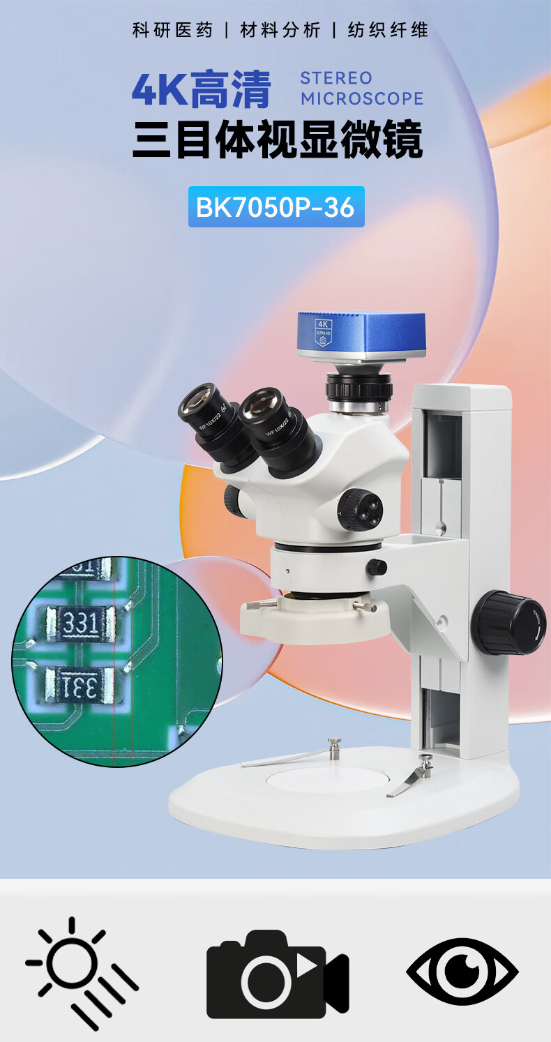 Boko Vision 4K trinocular electronic professional-grade measurement mobile phone repair microscope with photo measurement industrial precision testing instrument trinocular BK7050P-36 (rocker arm bracket)