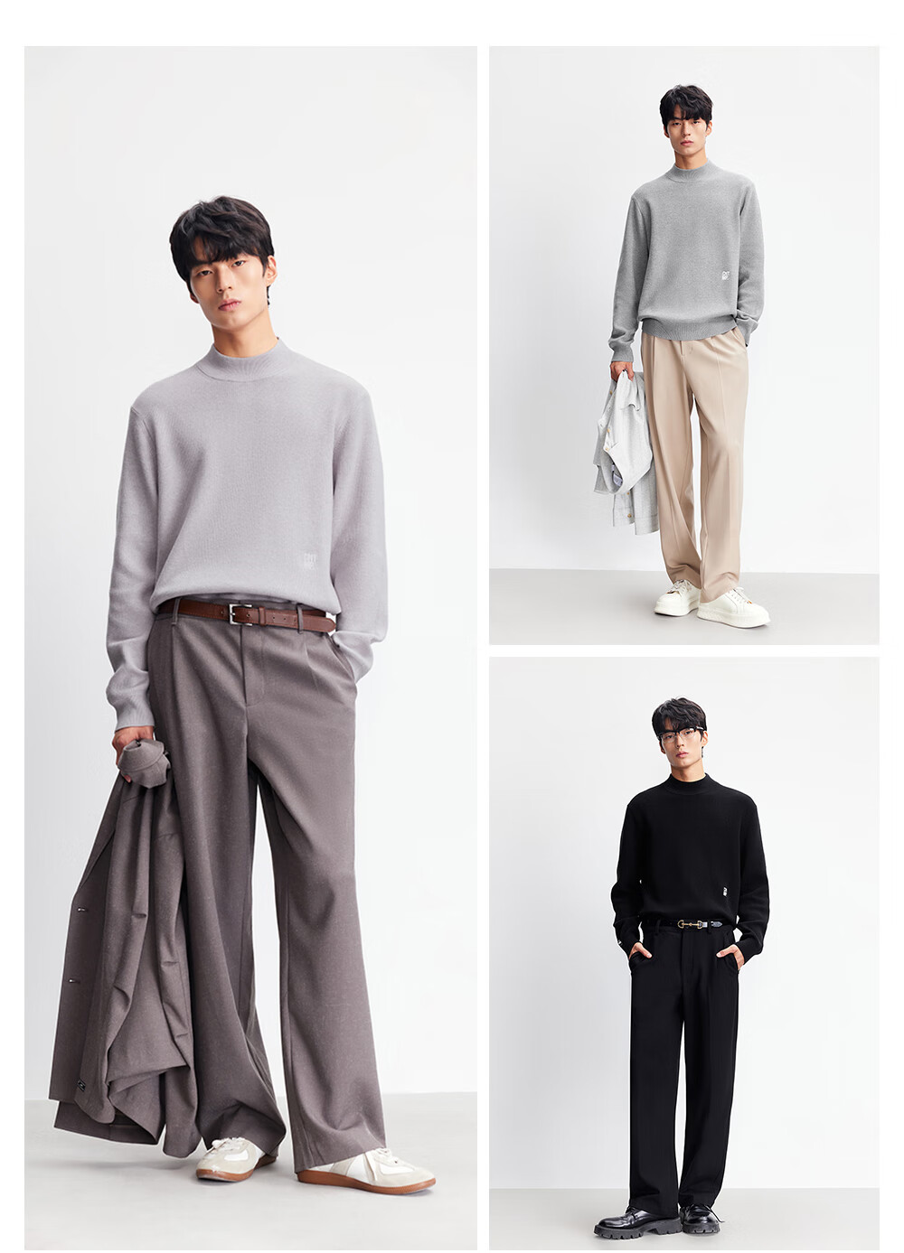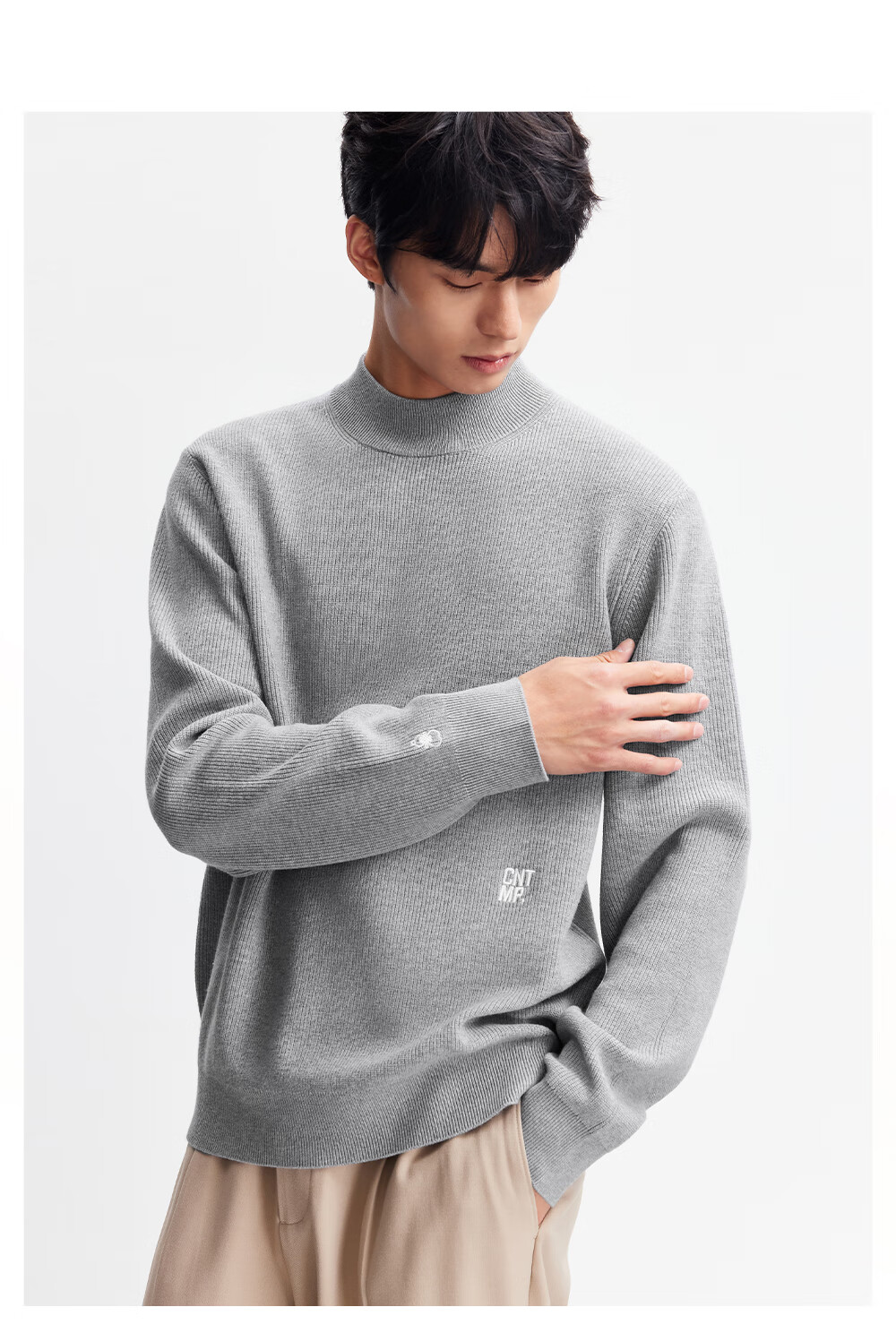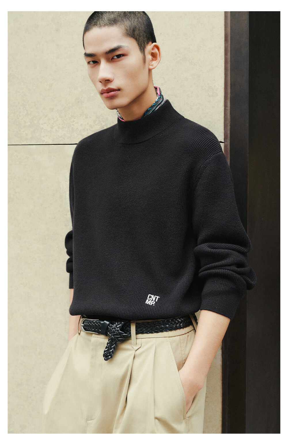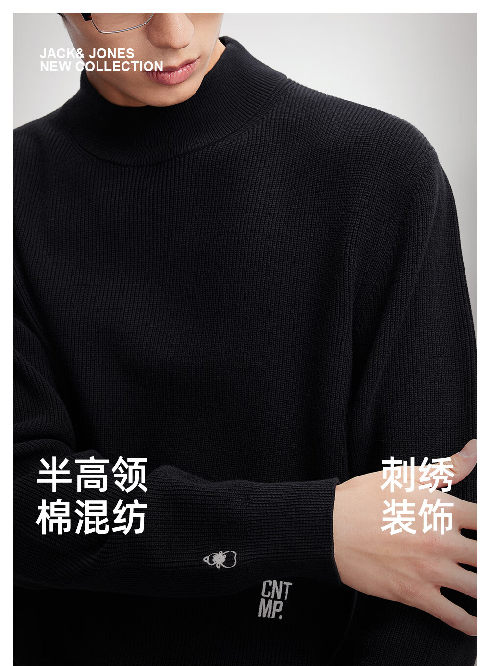 JACK&JONES Yiqiyingyun Men's 25th Winter New Half Turtle Collar Bottoming Knitted Sweater Pullover Men's Machine Washable E43 Black M 175