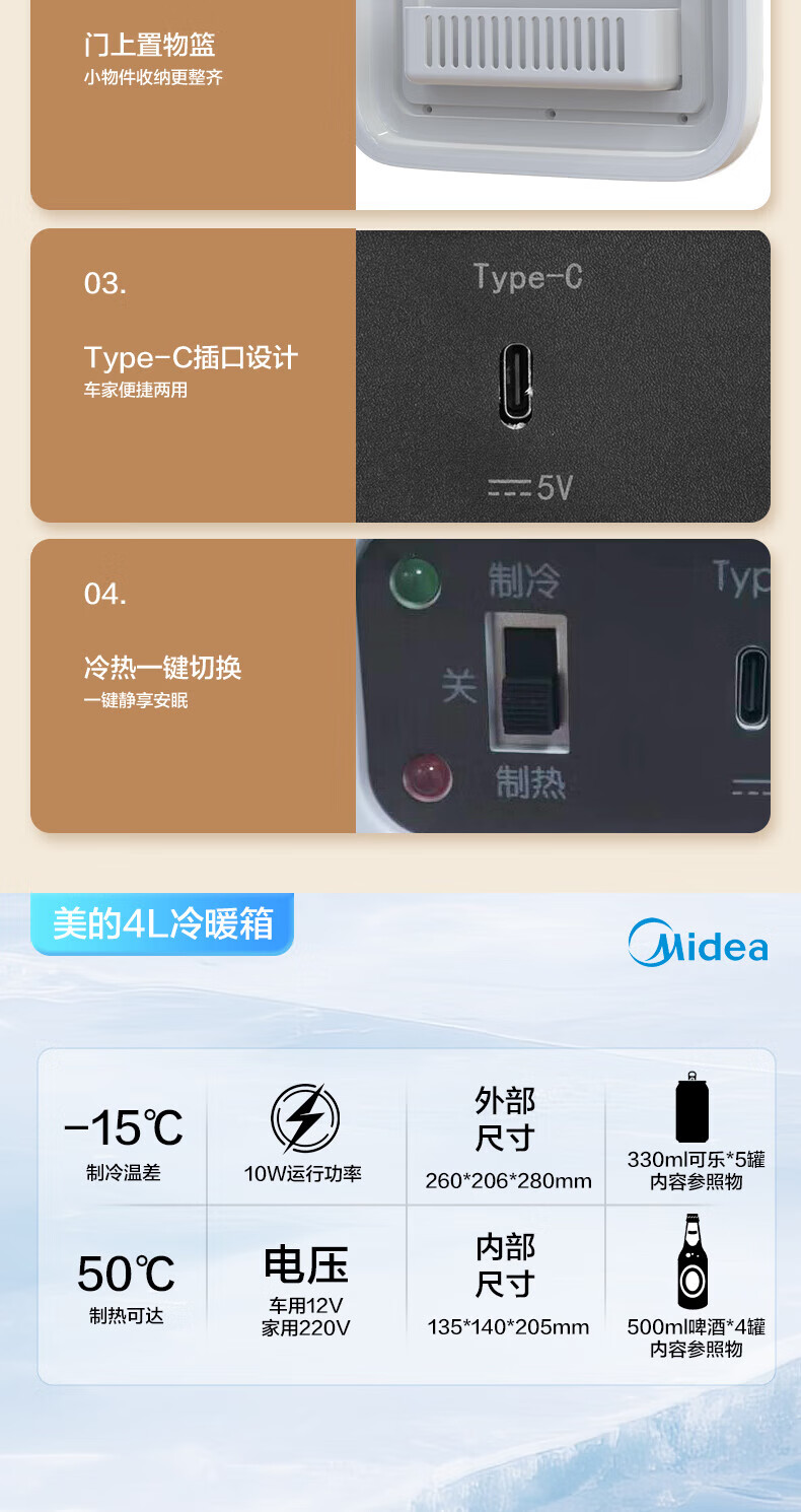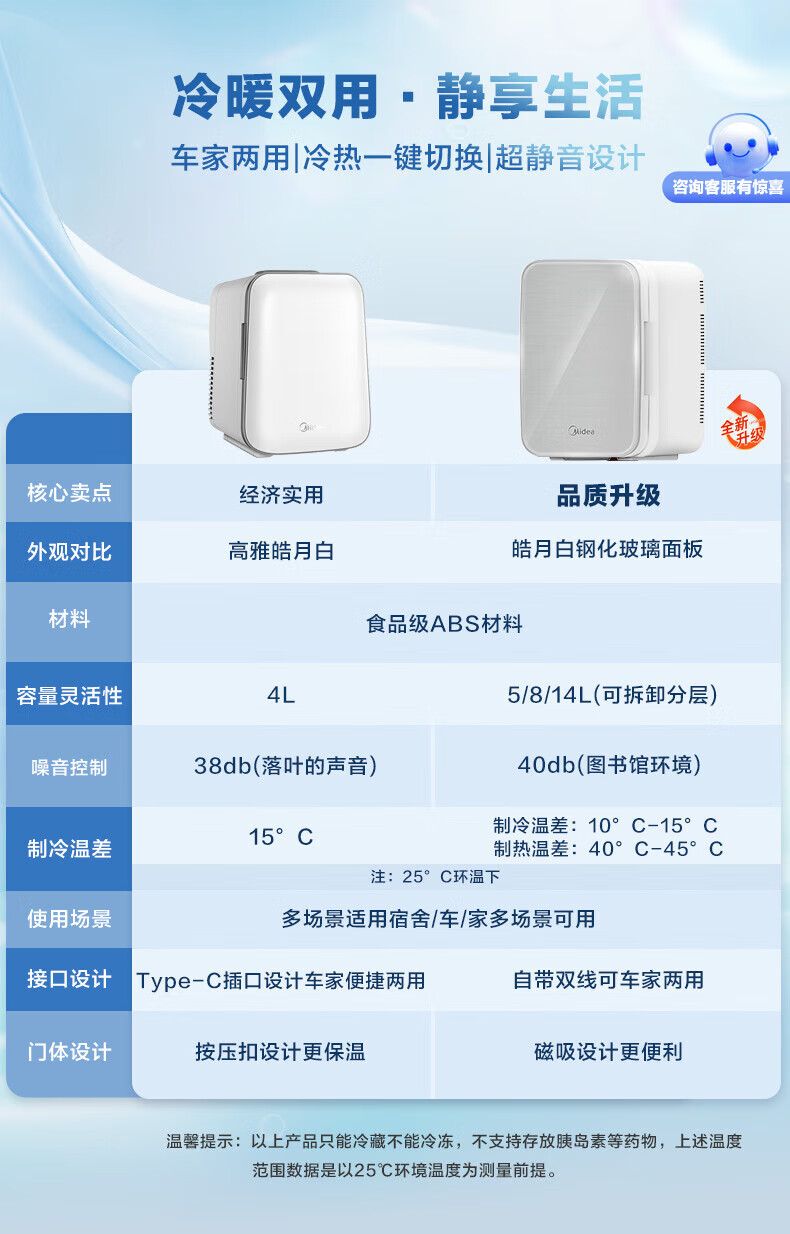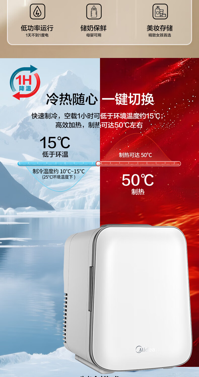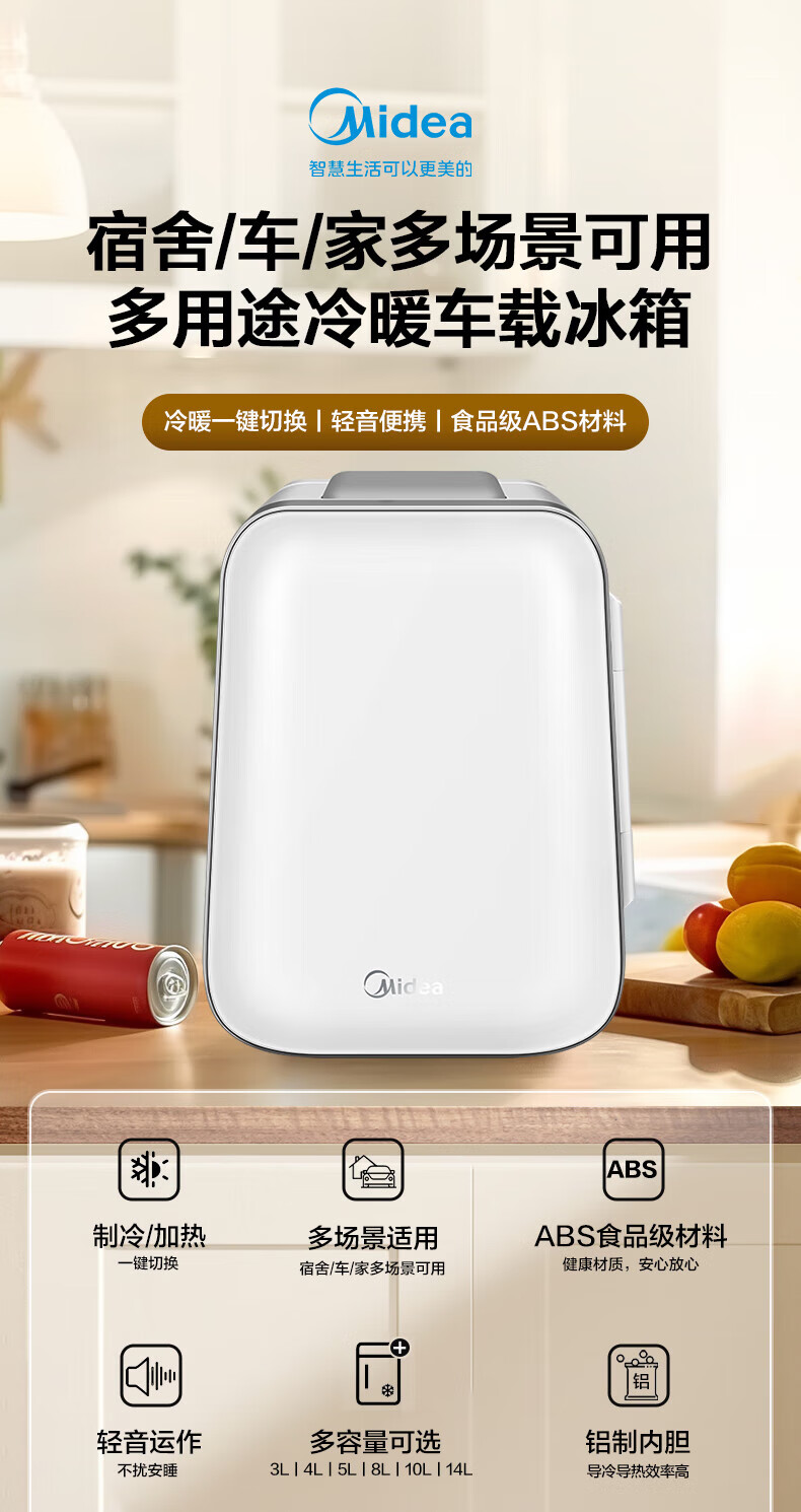 Midea Car Refrigerator Small Refrigerator Mini Refrigerator Small Refrigerator Dormitory Rental Office Refrigerated Heating Breast Milk Store Hot Products Small Refrigerator Available for Dormitories 3L