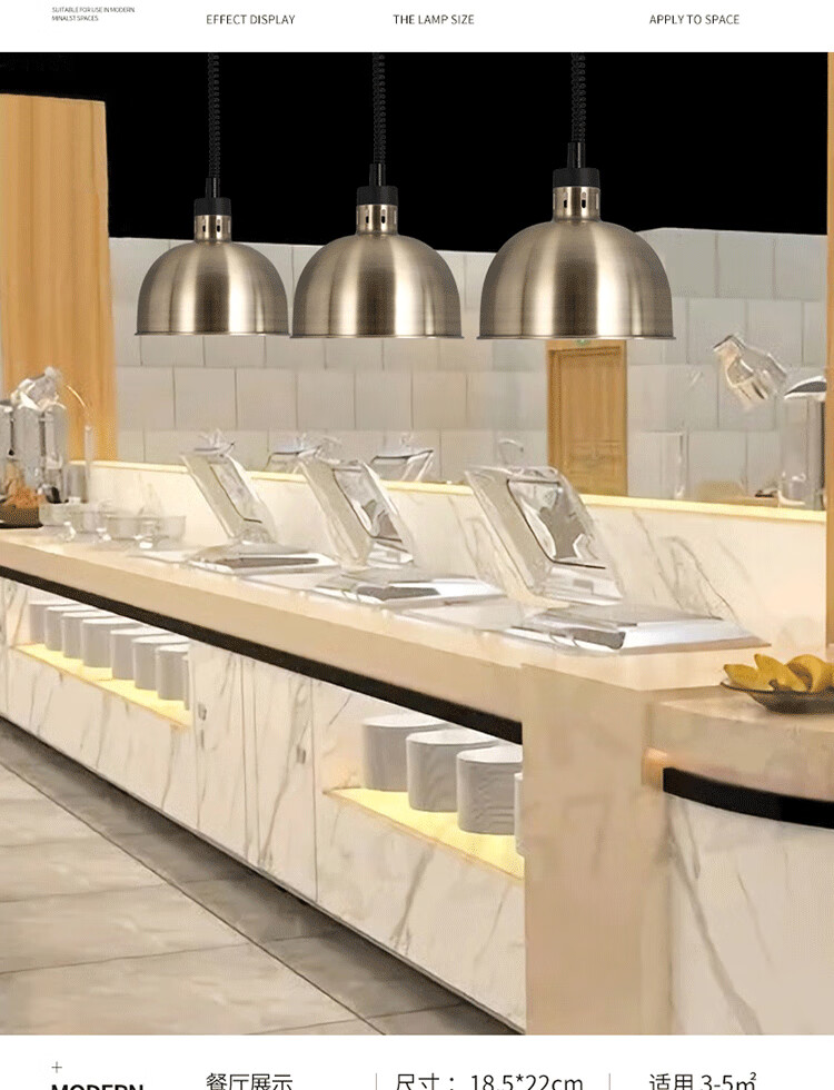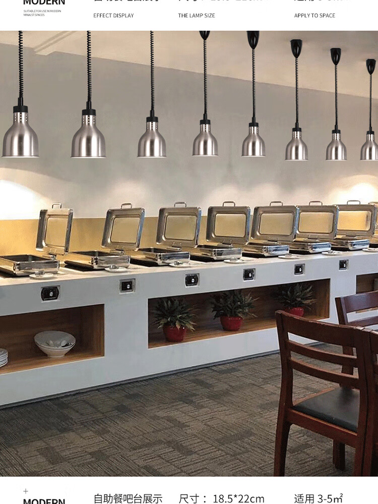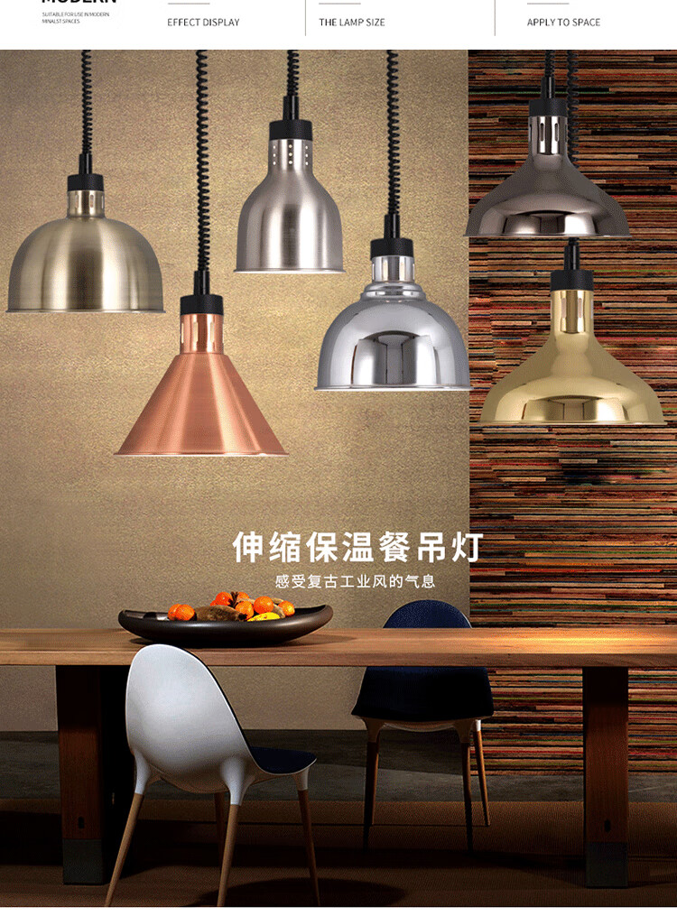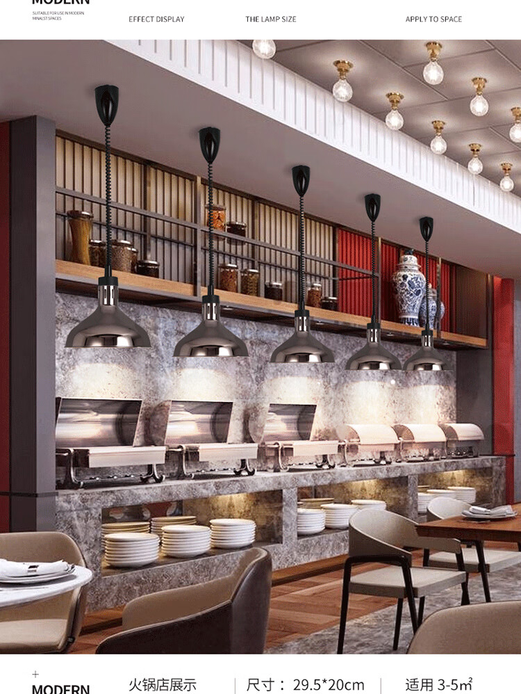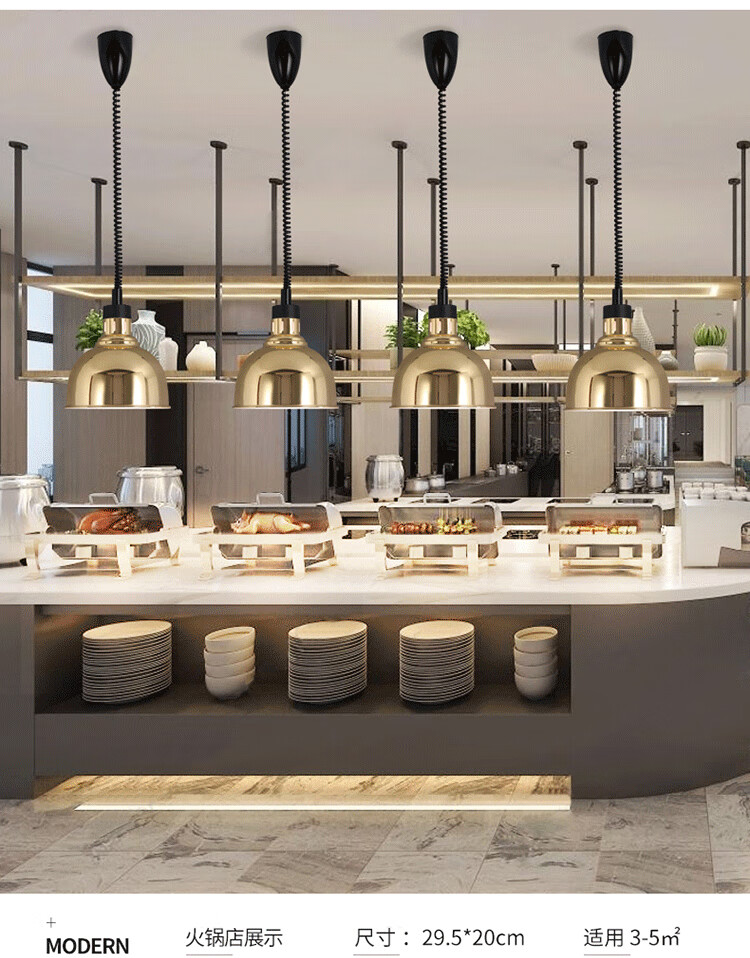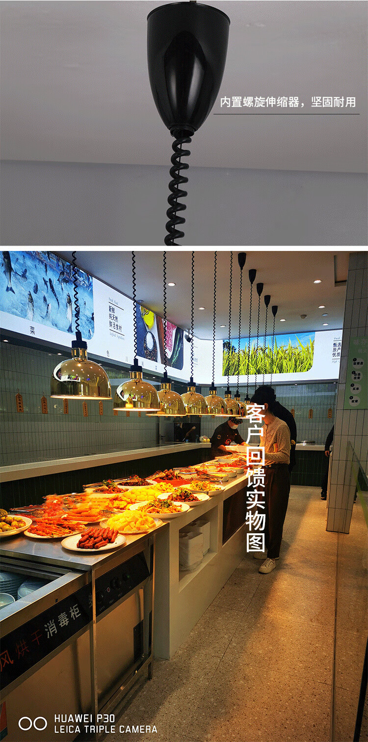 Qiermei retractable food insulation lamp hanging food heating lamp cafeteria barbecue lamp catering insulation lamp supermarket dry goods hanging wire-02 style/29cm bright red non-retractable