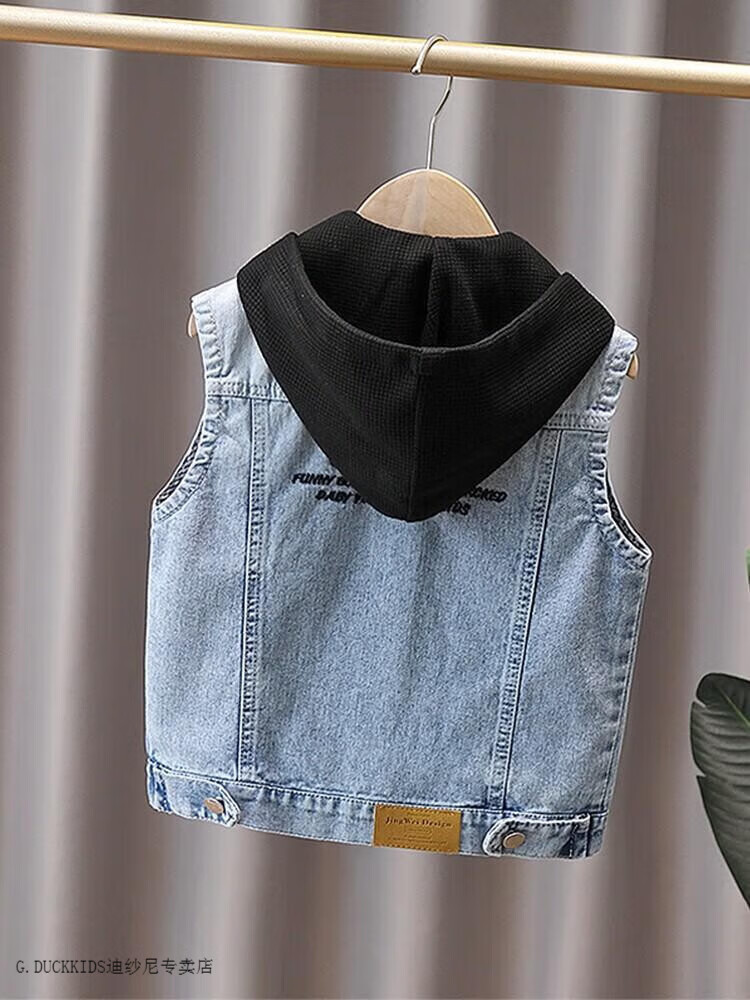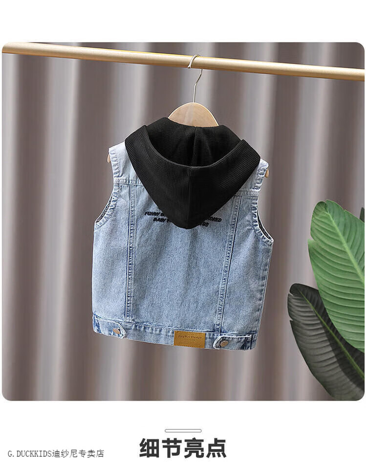 G.DUCKKIDS Little Yellow Duck Children's Clothing Boys' Vests Spring and Autumn Children's Denim Jackets Cartoon Handsome Boys Autumn Clothing Children's Vests 1977 Gray Hat 120 Recommended 110-120cm6-7 years old