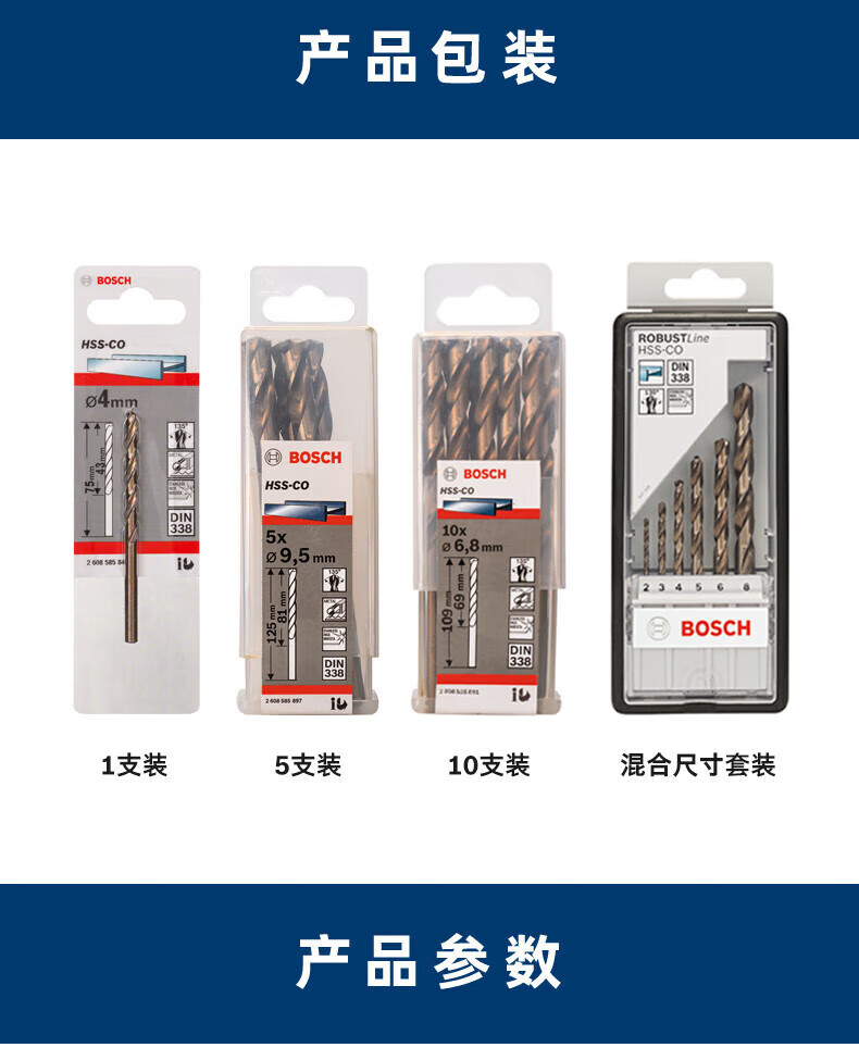 Bosch drill bit twist drill 3/4/5/6/7/8mm high speed steel special drill bit for cobalt-containing stainless steel accessories 8.0 mm HSS-Co (pack of 5)