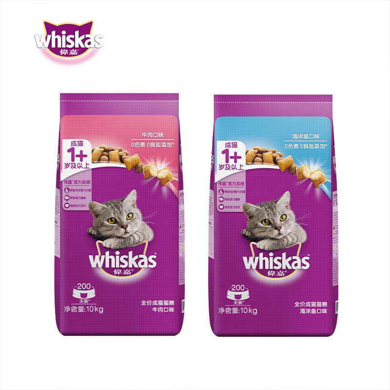 Whiskas Cat Food Whiskas Cat Food Ocean Fish Beef Adult Cat Food 10kg Affordable Pack 20Jin Jin is equal to 0.5kg Universal Nutrition Fish Flavor