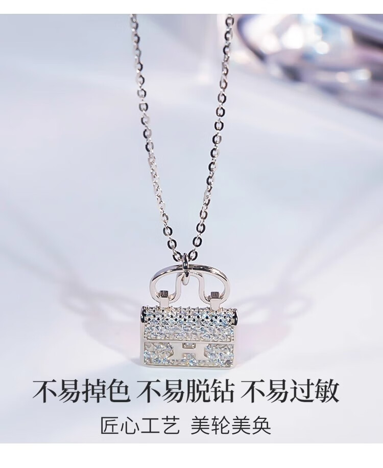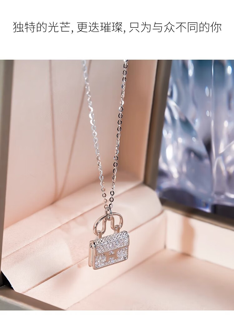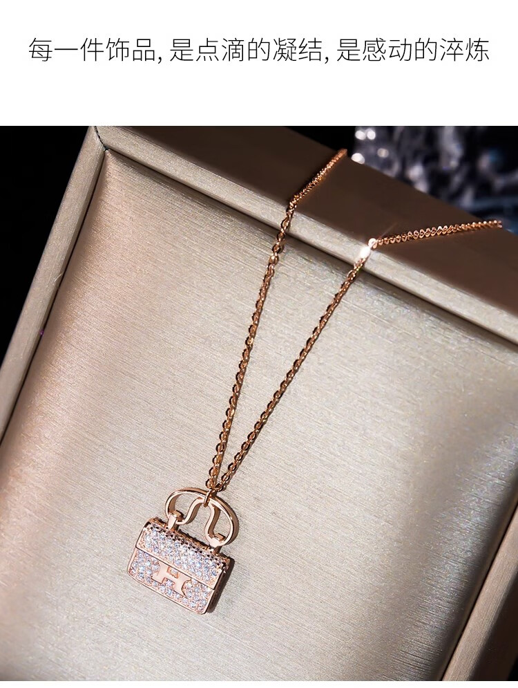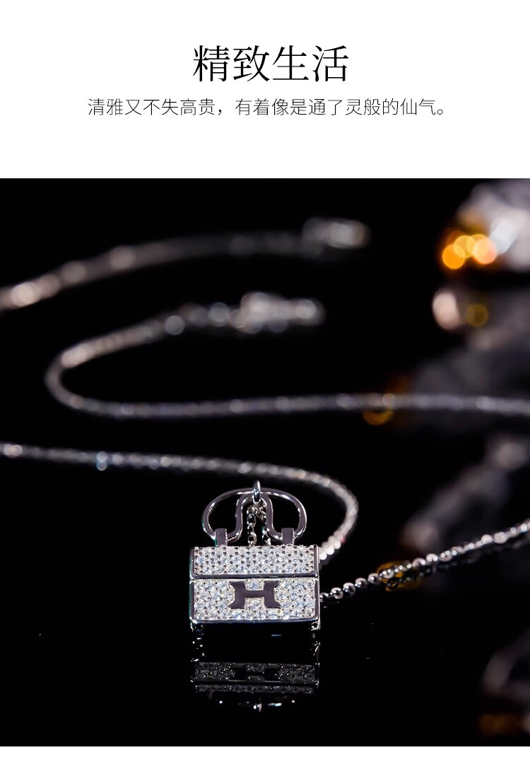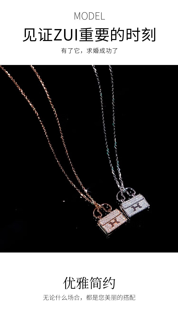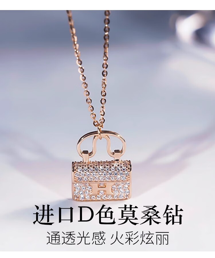 Ticify18K gold moissanite H letter bag necklace women's fashion new full diamond pendant clavicle chain rose gold