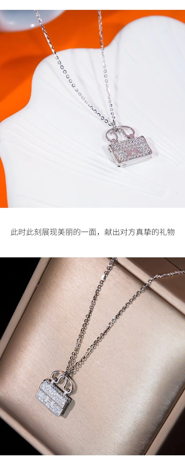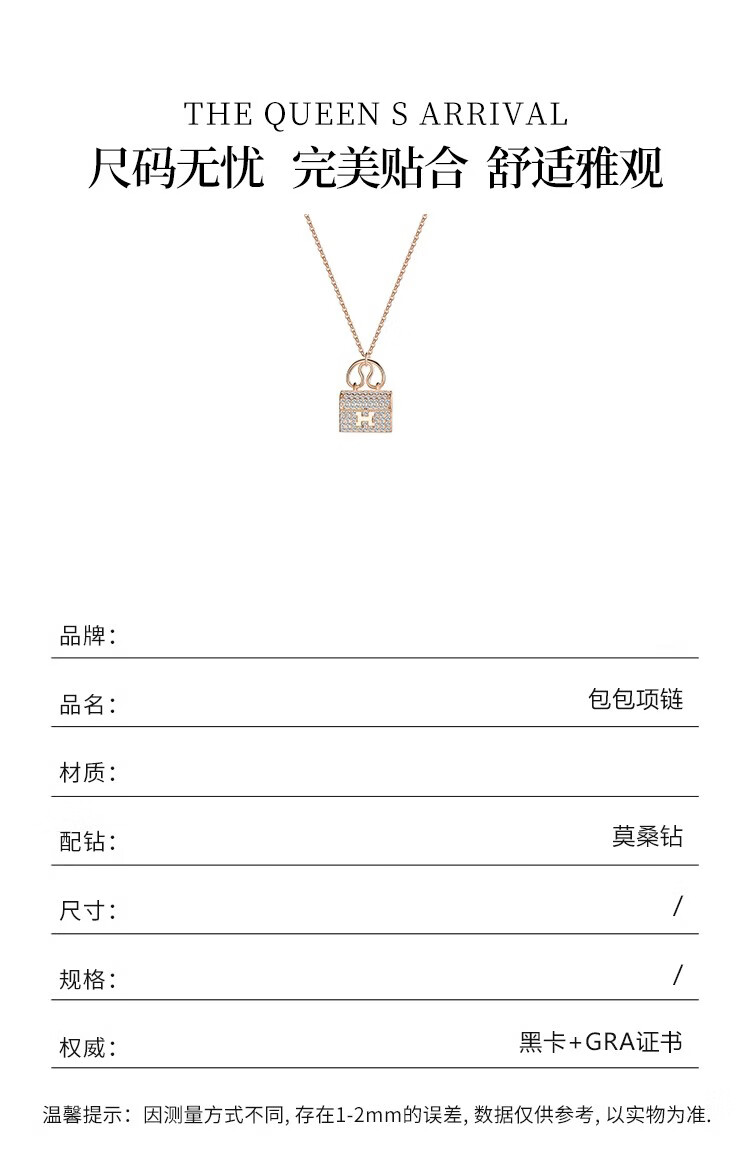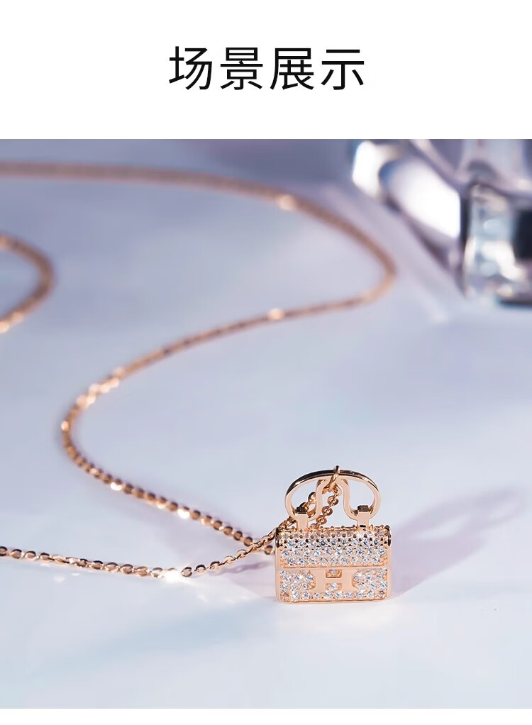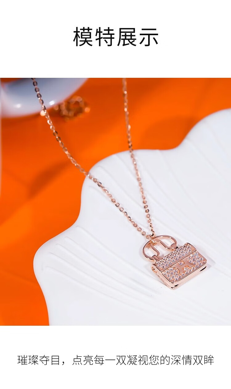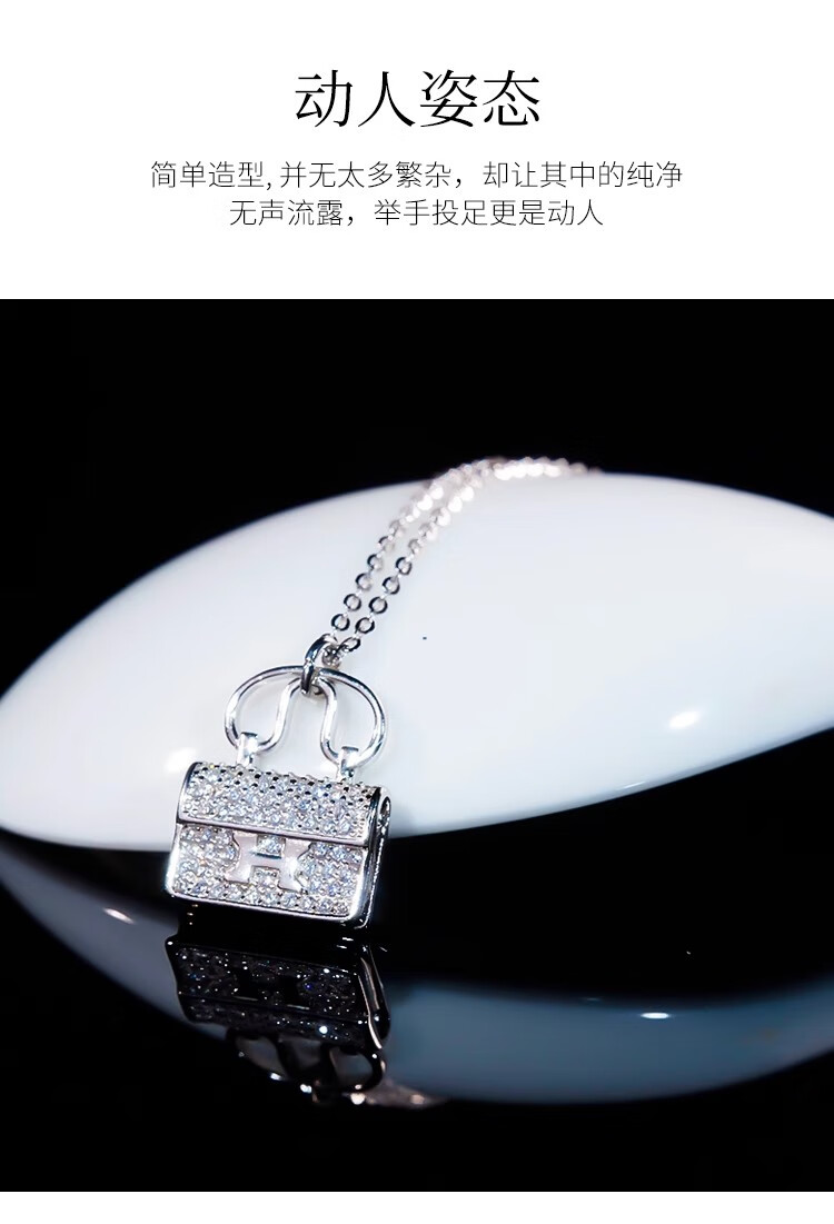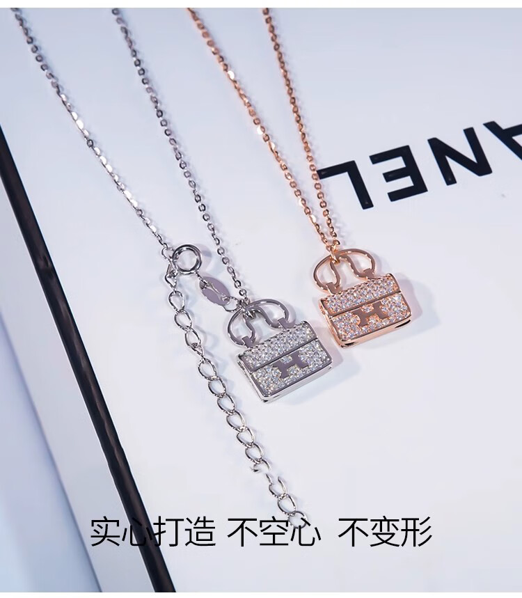 Ticify18K gold moissanite H letter bag necklace women's fashion new full diamond pendant clavicle chain rose gold