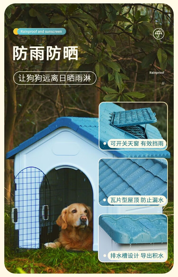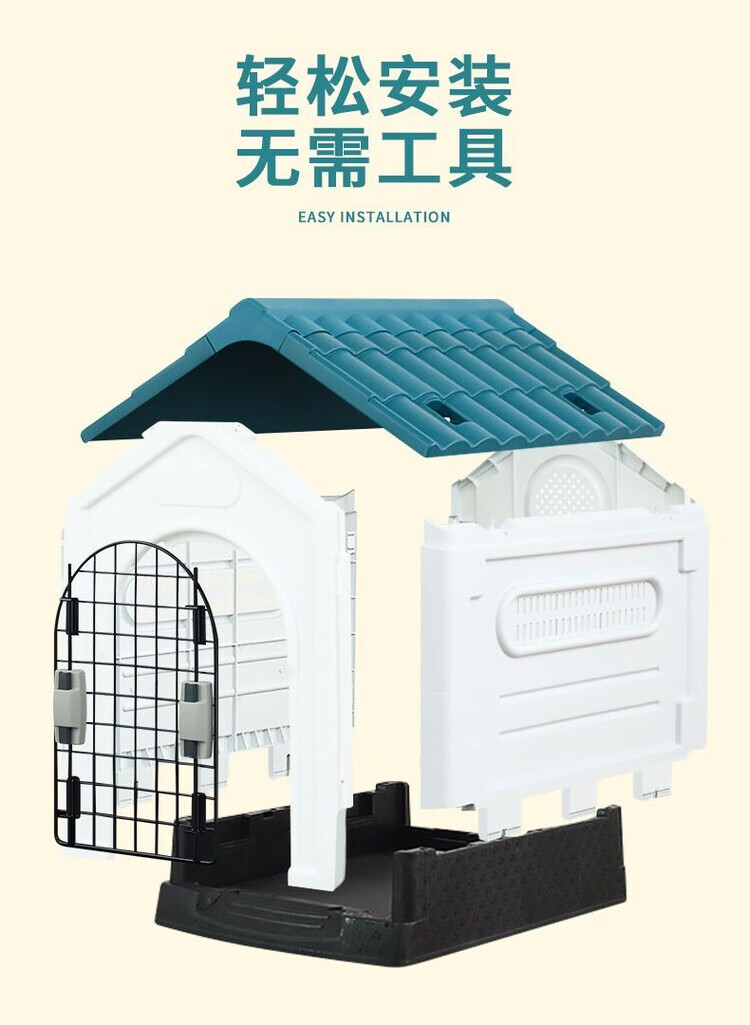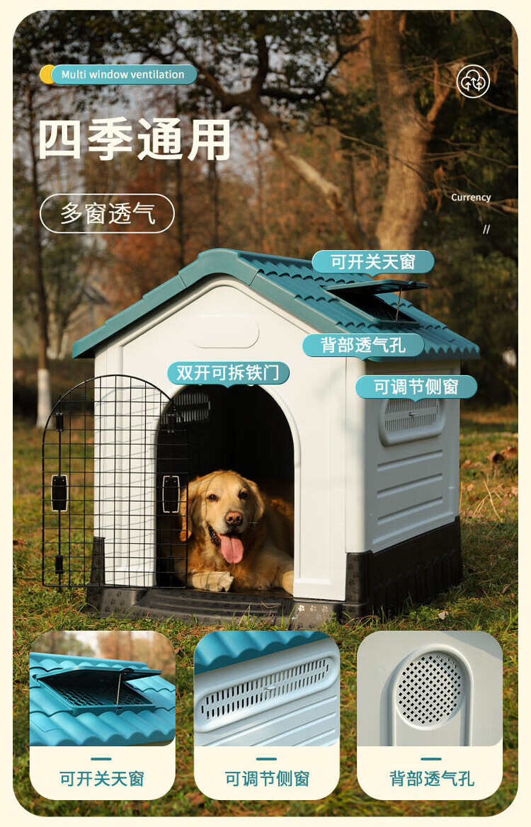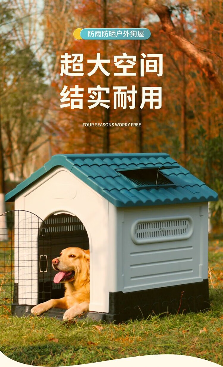 Raft core dog house outdoor insulated outdoor dog kennel dog shed universal for all seasons indoor detachable dog house dog cage weatherproof winter with door *Extra large classic blue (413L)