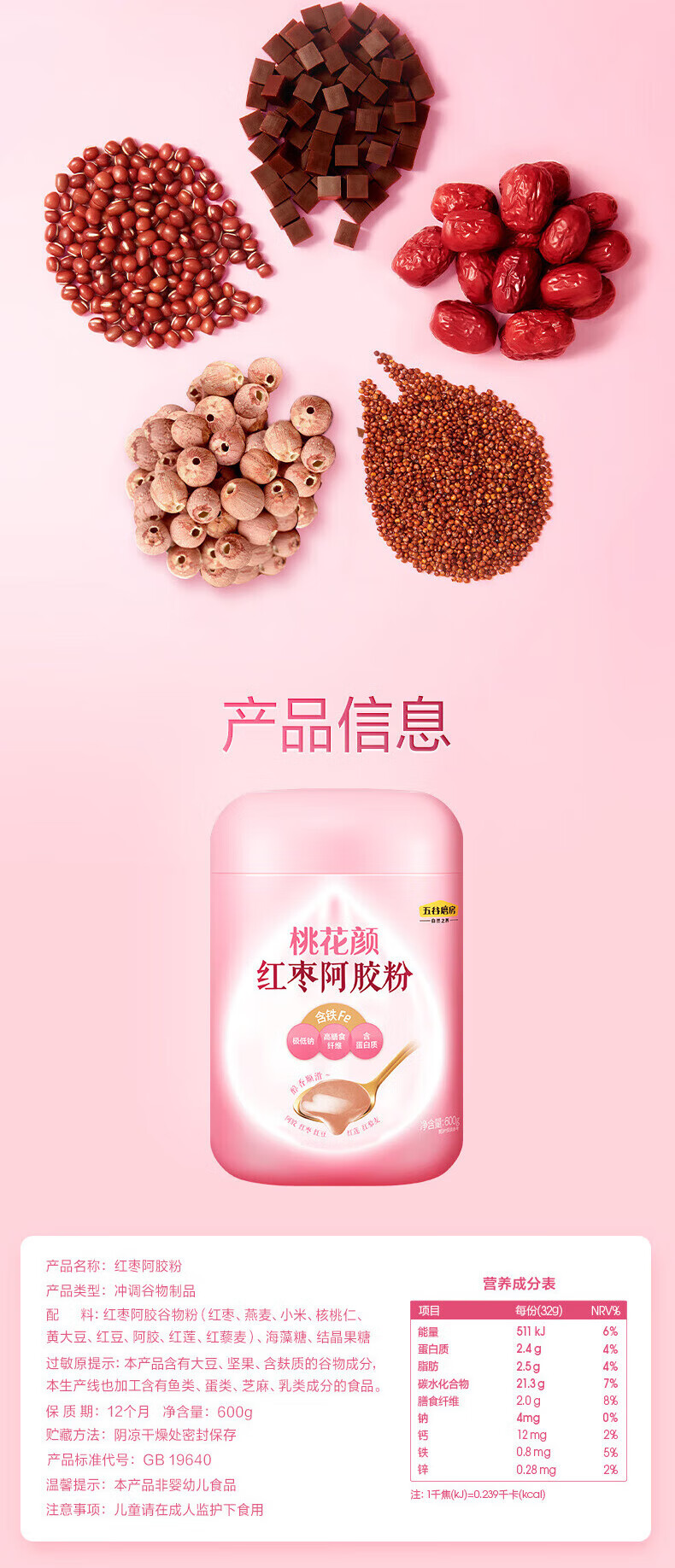 Wugu Mill Red Bean and Red Quinoa for instant breakfast Taohuayan Red Dates and Donkey-hide Gelatin Powder Red Dates and Donkey-hide Gelatin Powder 600g*1 can