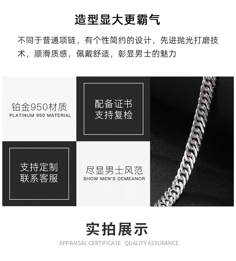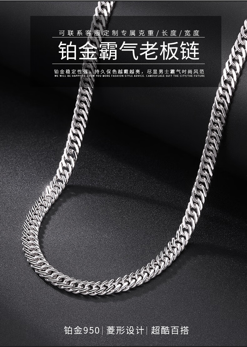 Jin Duoxi Valentine's Day Gift PT950 Platinum Men's Necklace Domineering Horsewhip Platinum Necklace Boss Chain Men's and Women's Hot Selling Approximately 19.54g Length Approximately 50cm Thickness Approximately 3mm