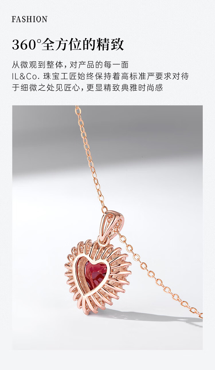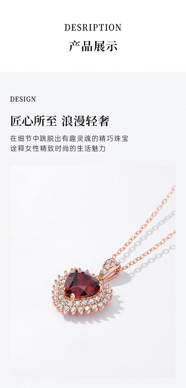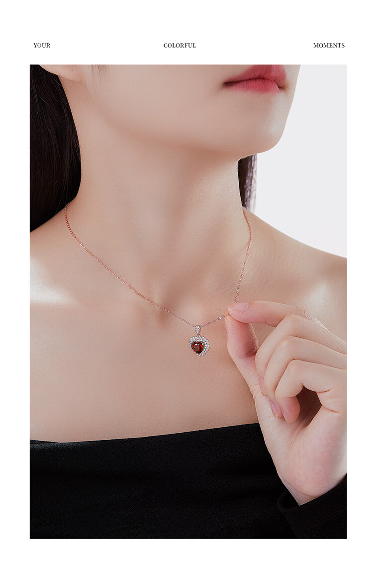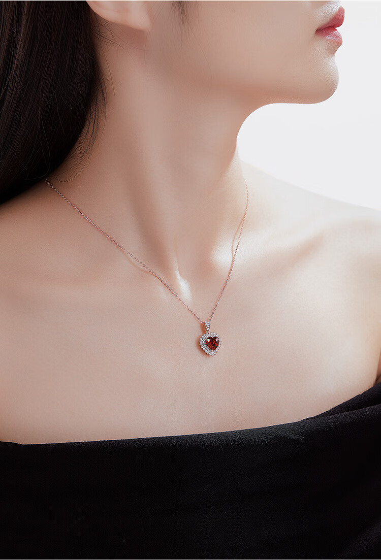 IL&CO Youke Love Necklace for Women Natural Garnet Pendant Heart-Shaped Clavicle Chain Birthday and Valentine's Day Gift for Girlfriend Garnet Pendant with Silver Chain + Love Gift Box