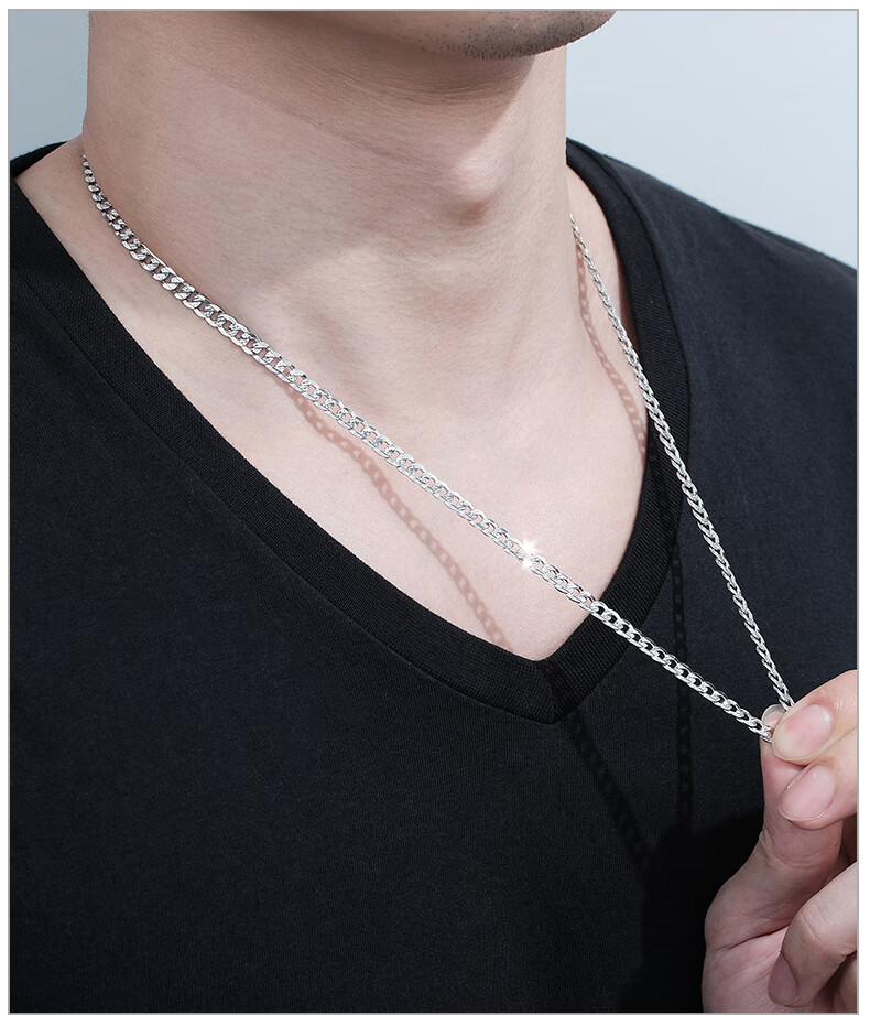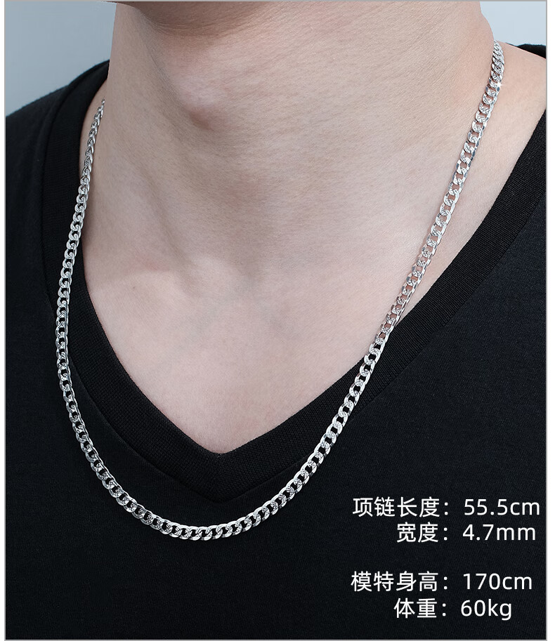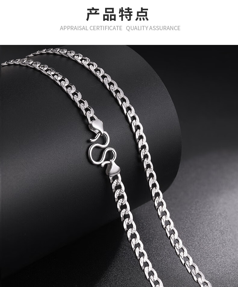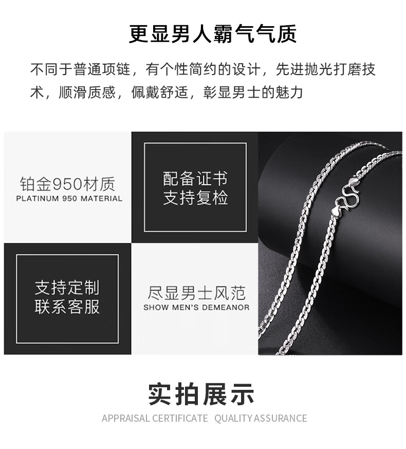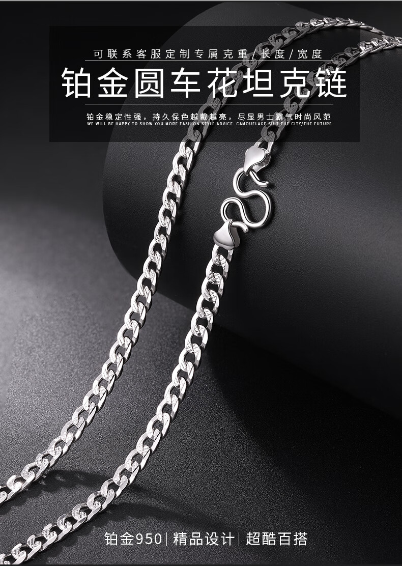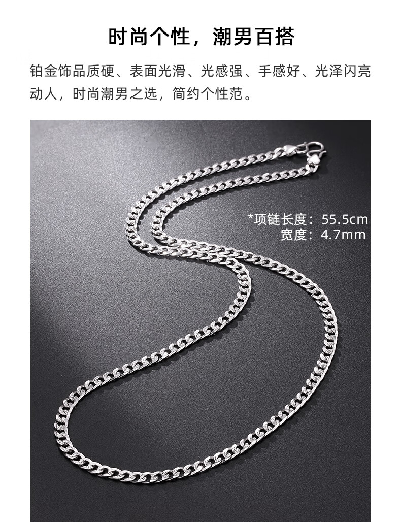 Jin Duoxi Pt950 platinum necklace men's platinum chain flat horsewhip flower single-layer boss tank necklace thick chain about 17.88 grams long about 52 cm thick about 4 mm