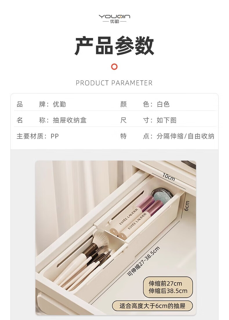 YOUQIN drawer compartment storage built-in partition cosmetics lipstick dressing table storage box organizer box rectangular 8-piece rental set white narrow * 5 + white wide * 3