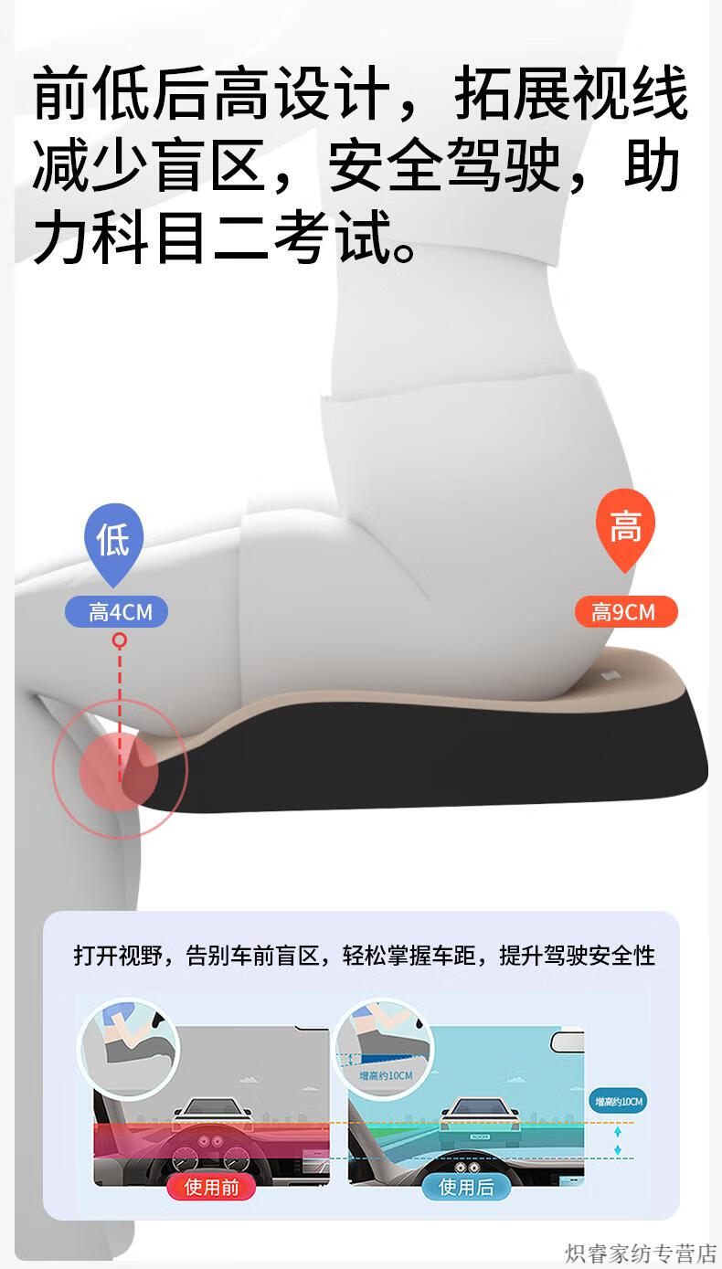 Chuangjingyi Selects Car Heightening Cushion Car Seat Cushion, Universal for All Seasons, Small Women Driving Special Car, Long-term Sedentary Increase, Cloud Sense Heightening Seat Cushion, Blue Single Seat Cushion