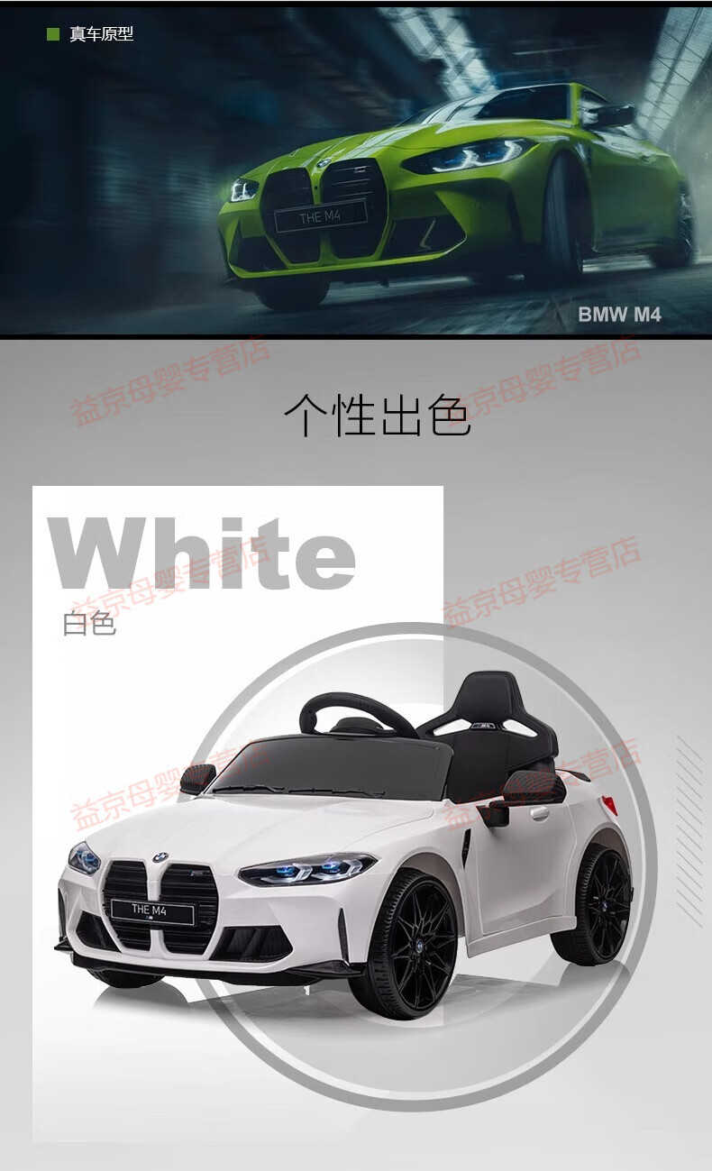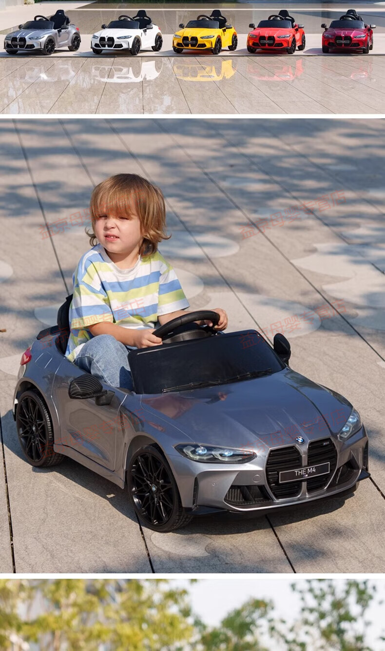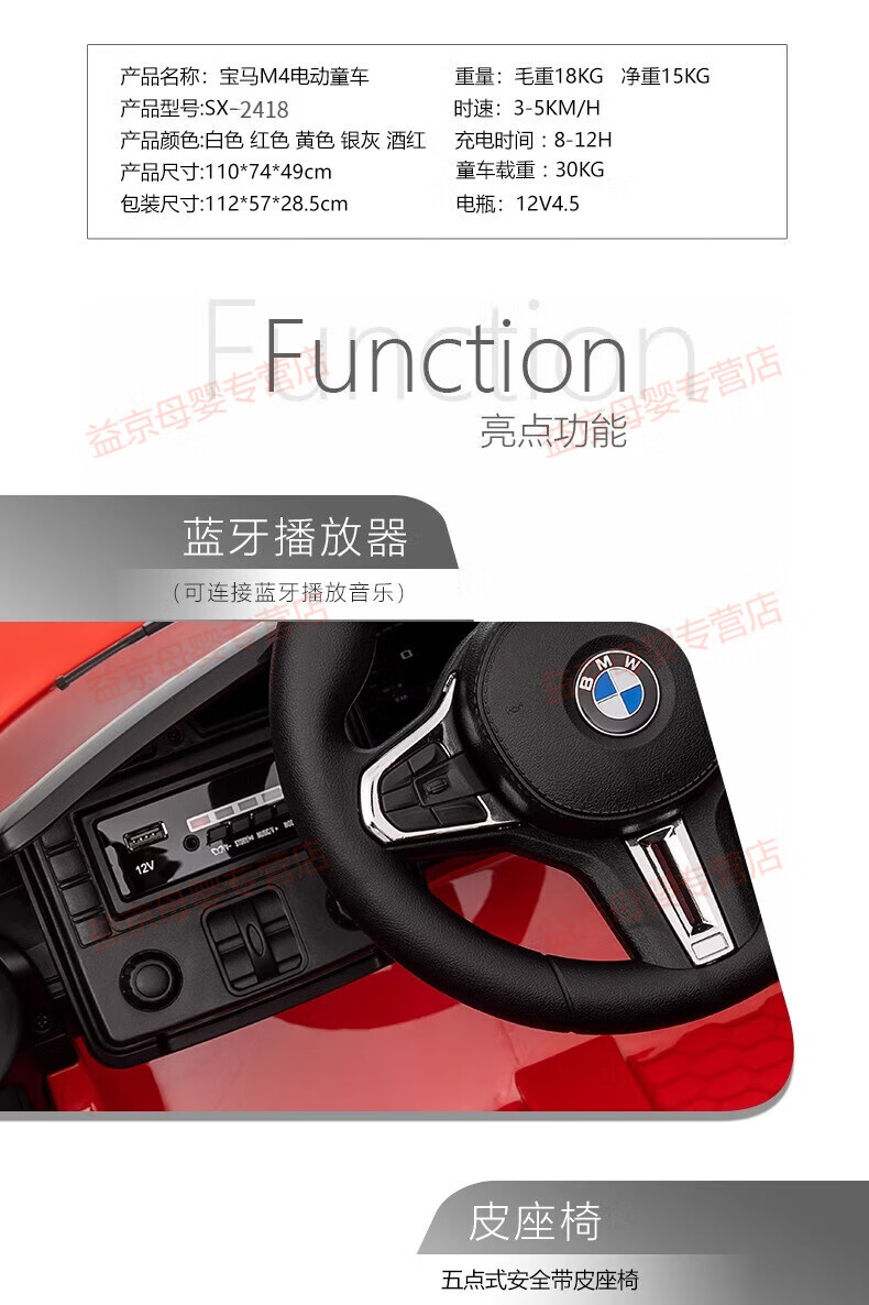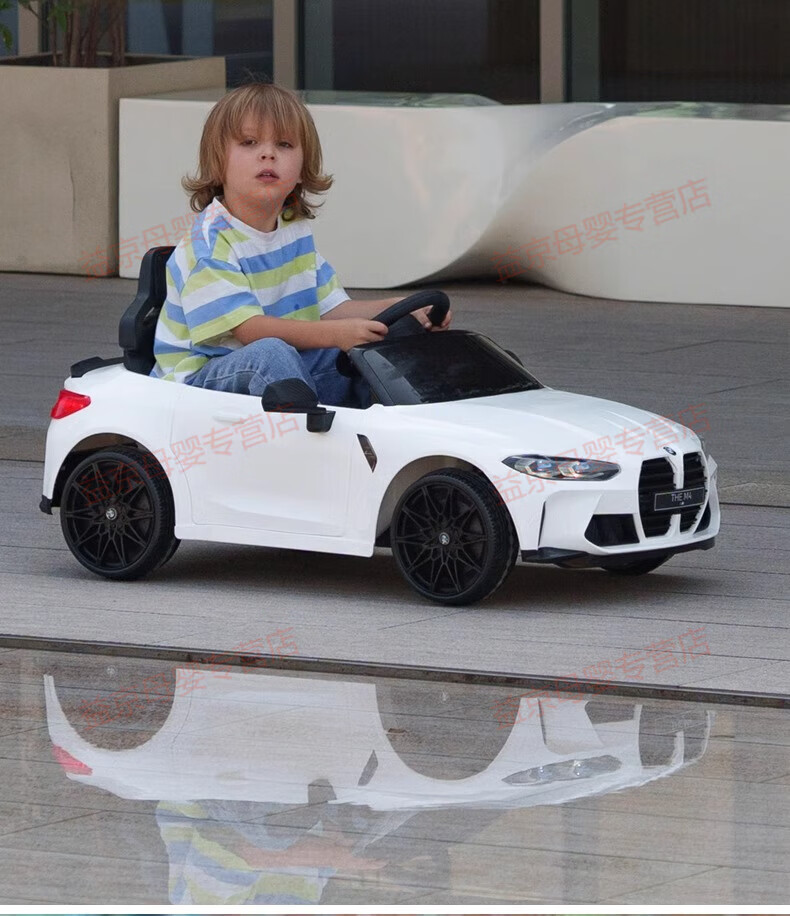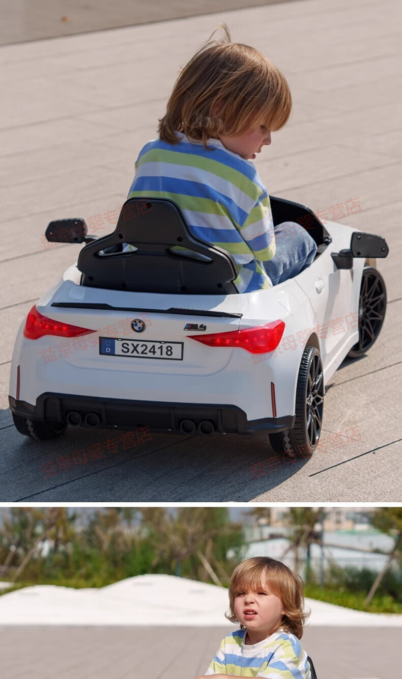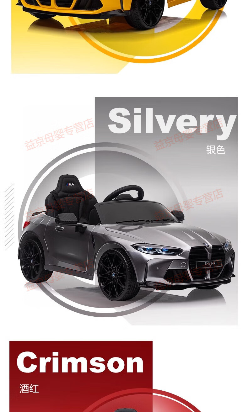Haolaixi BMW children's electric car four-wheel car remote control toy car can sit a child and baby with a swing baby stroller, top with painted silver + soft wheel leather seat + remote control swing + Bluetooth music + portable pull rod
