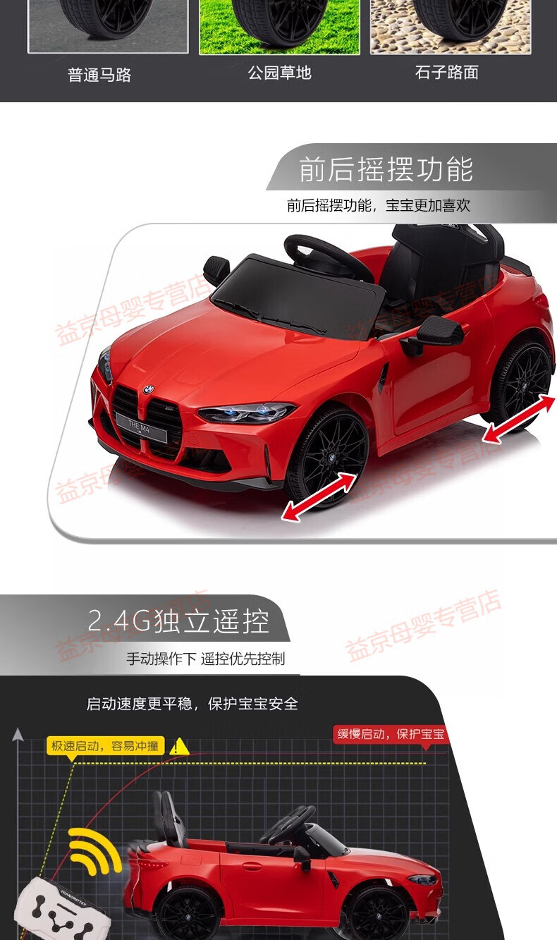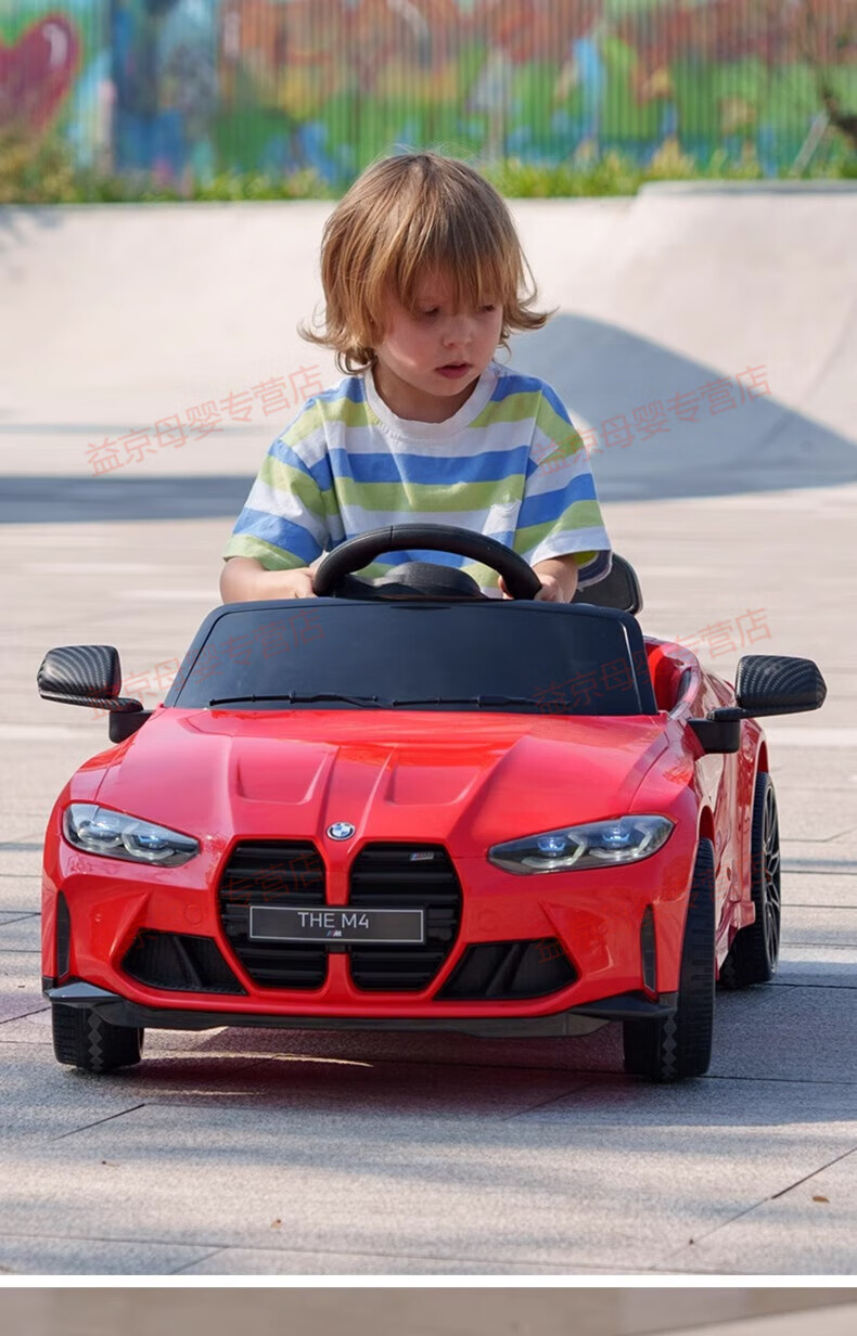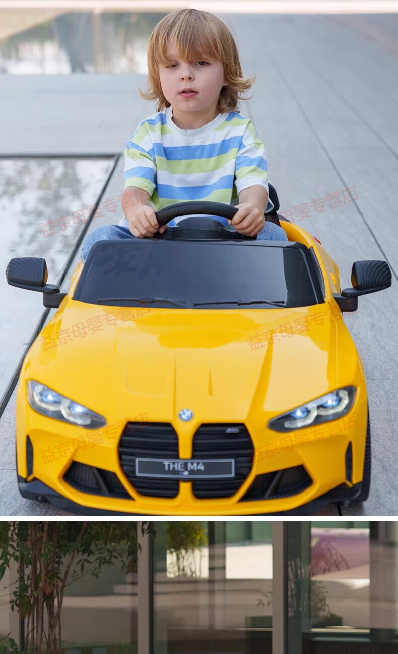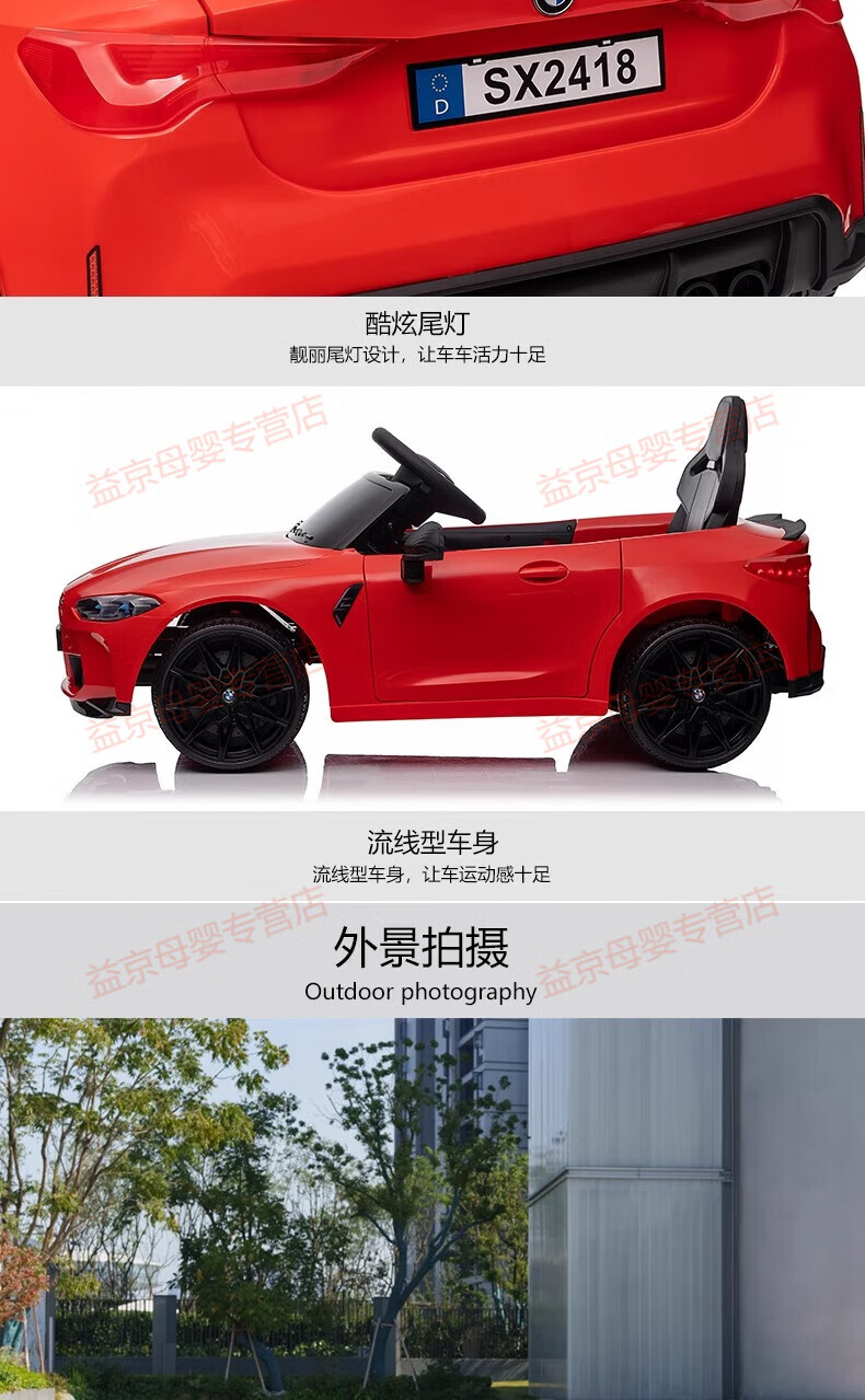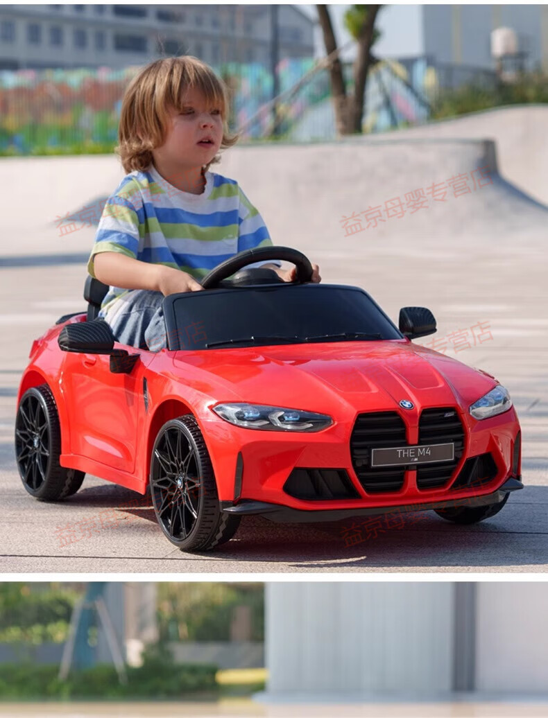 Haolaixi BMW children's electric car four-wheel car remote control toy car can sit a child and baby with a swing baby stroller, top with painted silver + soft wheel leather seat + remote control swing + Bluetooth music + portable pull rod