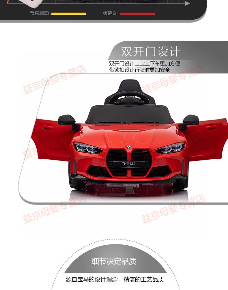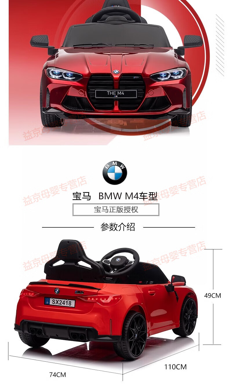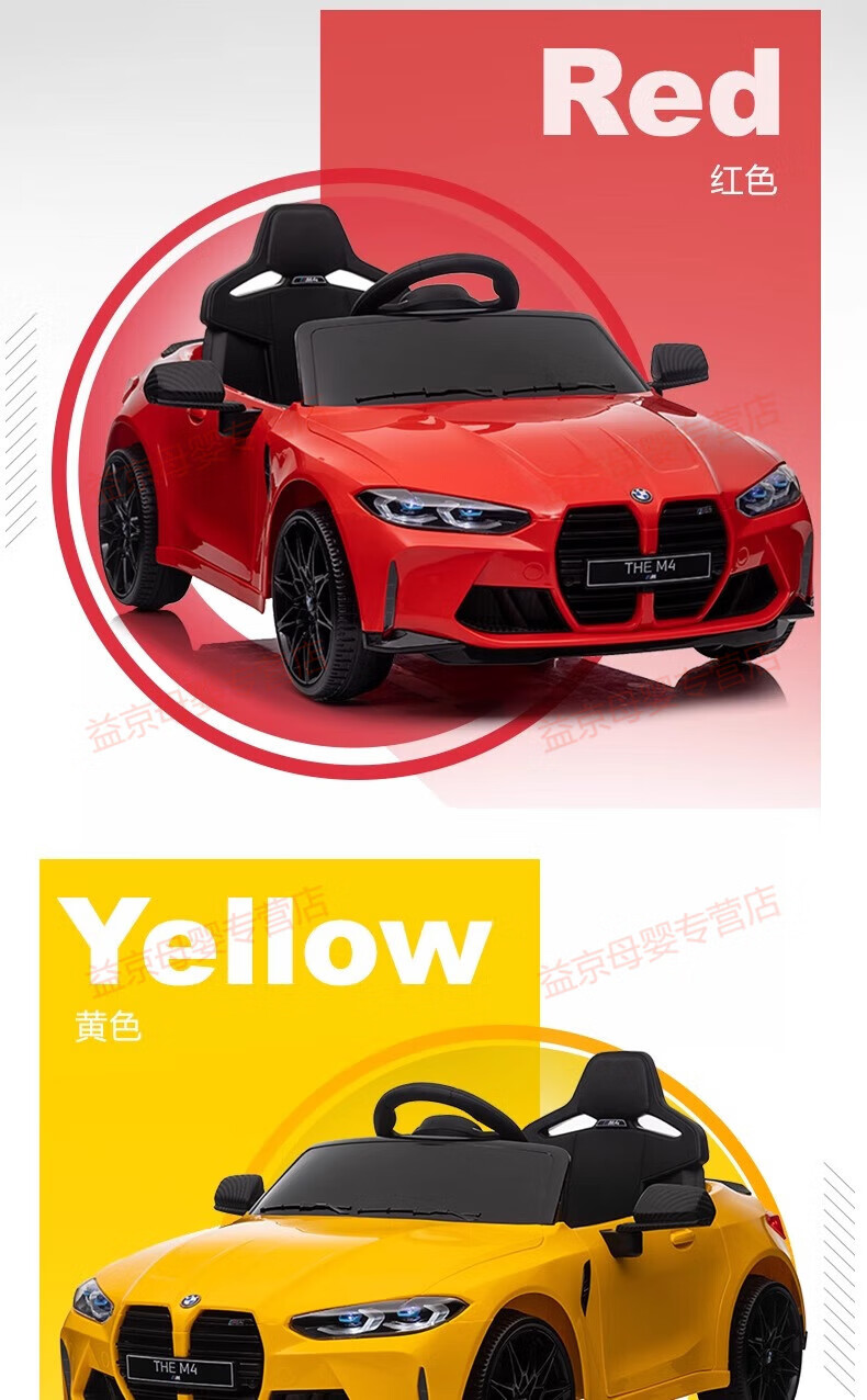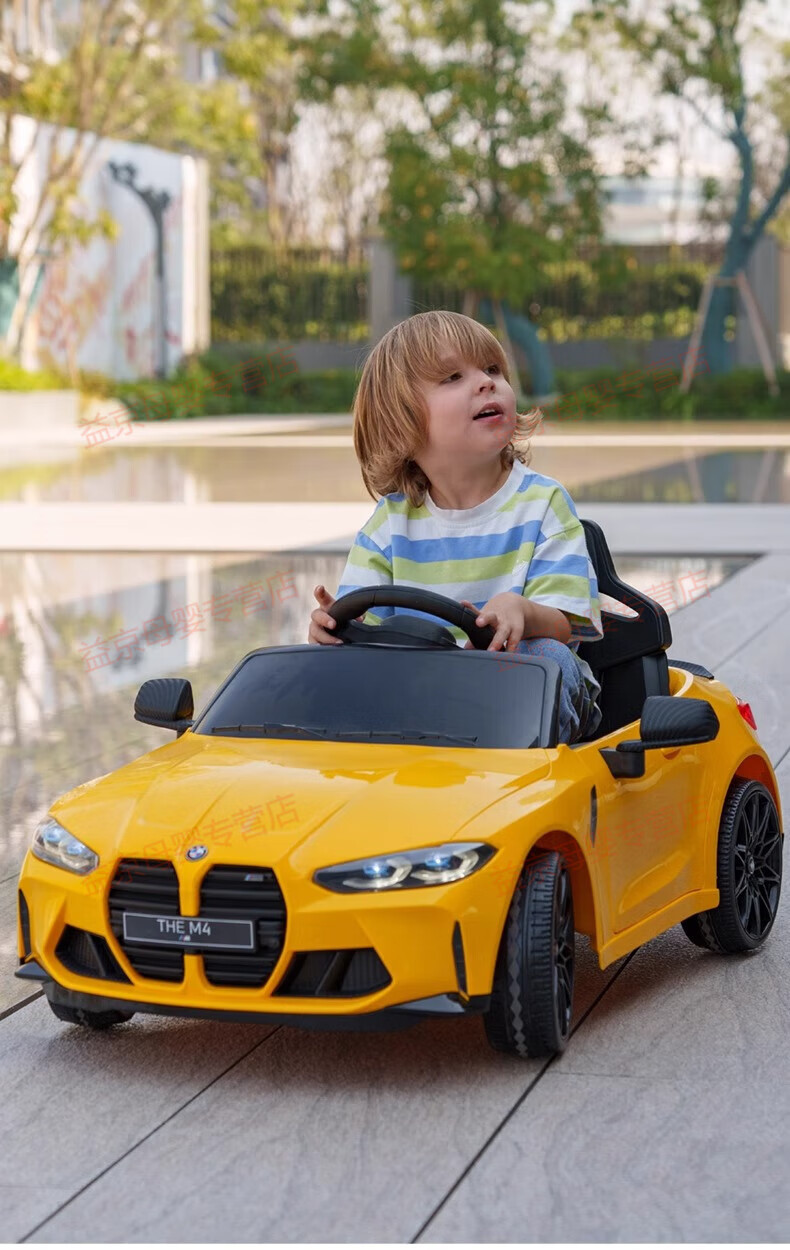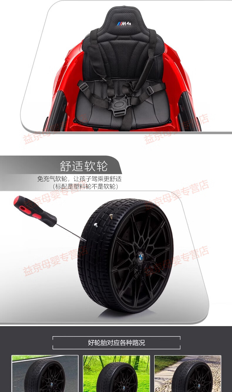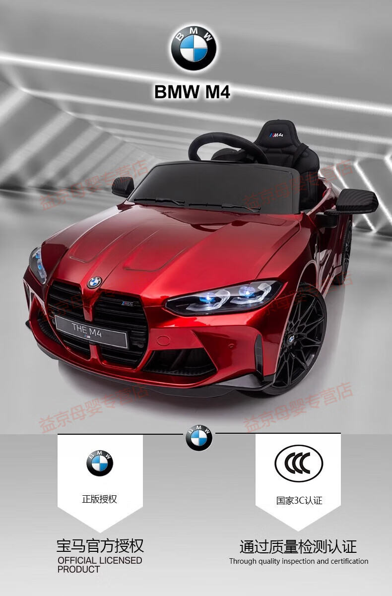Haolaixi BMW children's electric car four-wheel car remote control toy car can sit a child and baby with a swing baby stroller, top with painted silver + soft wheel leather seat + remote control swing + Bluetooth music + portable pull rod