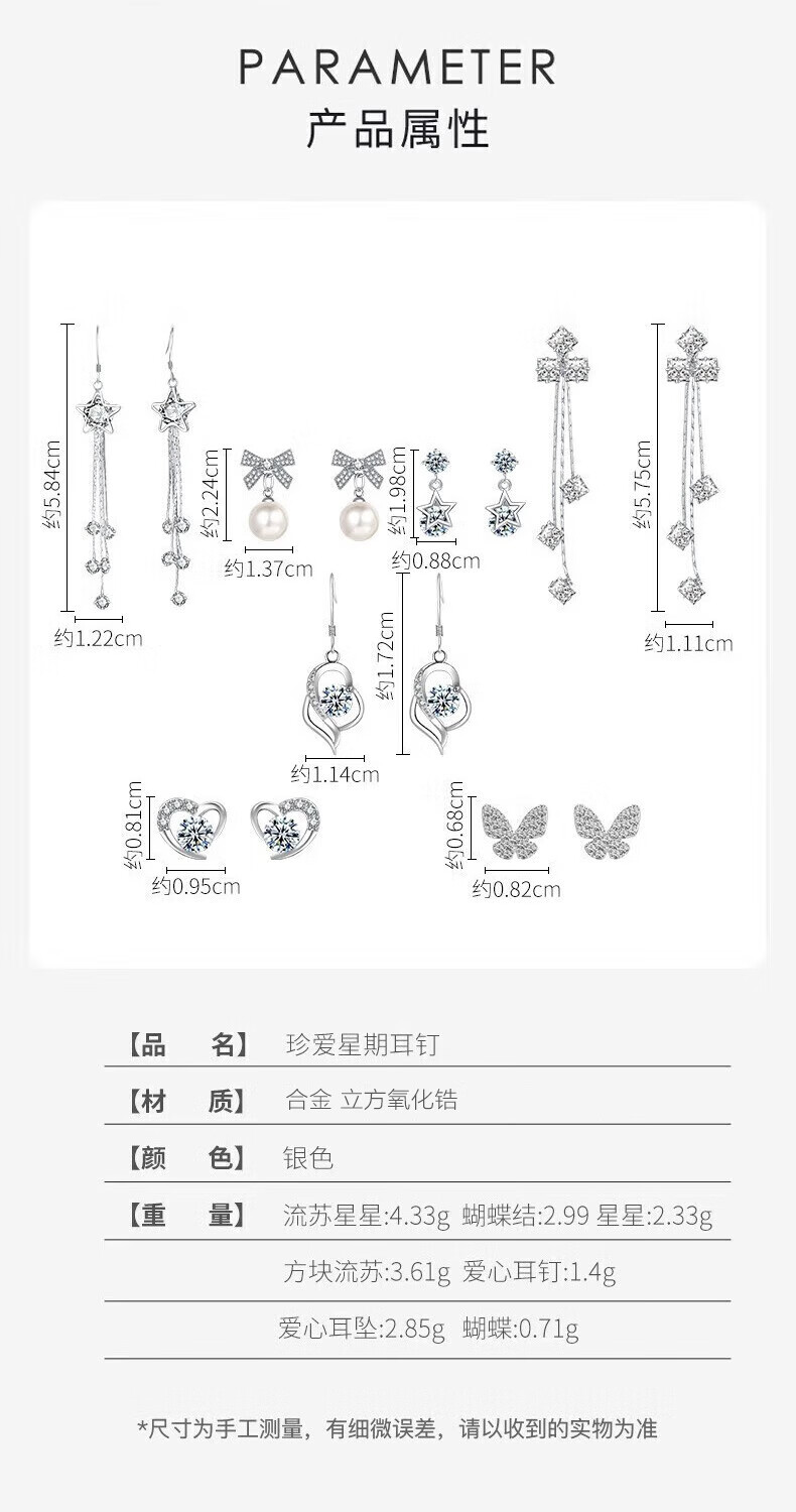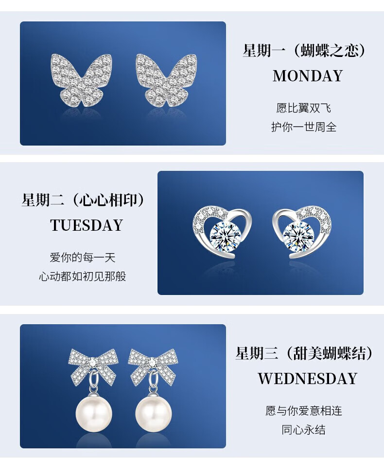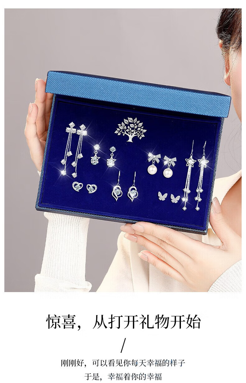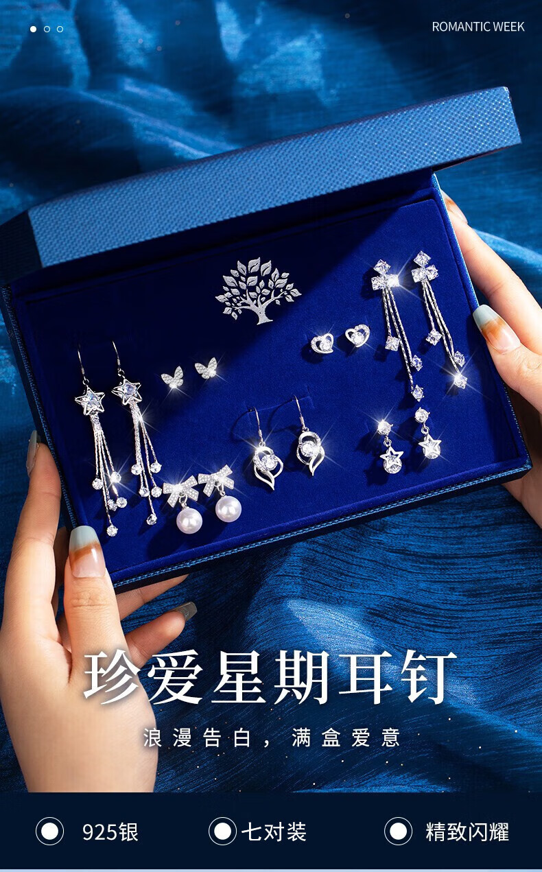 Givenchy Light Luxury Weekly Earrings Women's Earrings Jewelry Seven Pairs of Earrings Heartfelt Jewelry Birthday Gifts for Girlfriend Cherish Weekly Earrings Blue Gift Box